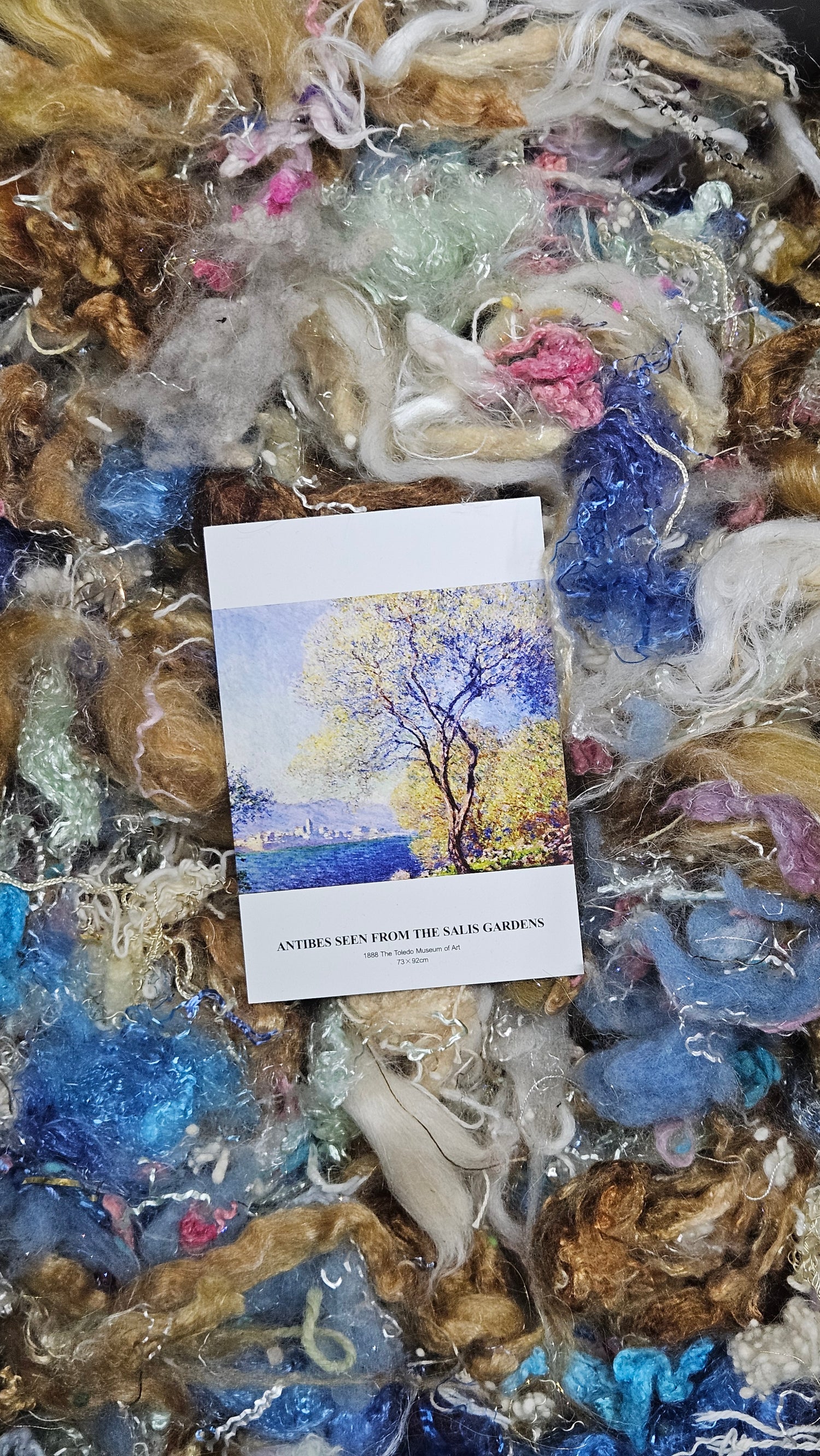Hand-dyed and carefully curated fine art inspired limited edition texture blends for carding art batts, spinning textured yarns, and felting.