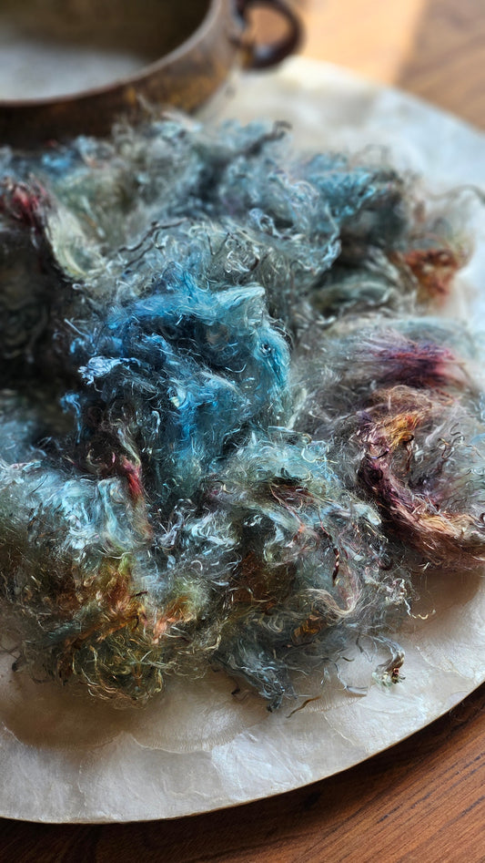 CERUSSITE - hand-dyed eucalyptus crimp faux-silk for art yarn embellishing, fiber blending, felting, and papermaking - 2 oz | 57 g