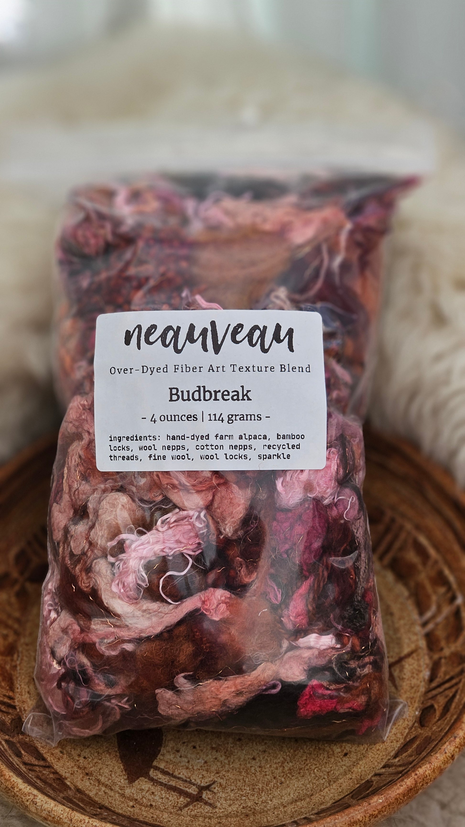 BUDBREAK - Hand-Dyed Alpaca Bamboo Texture Blend for art yarn embellishing, texture blending, felting, mixed media, and fiber art - 4 ounces | 114 grams