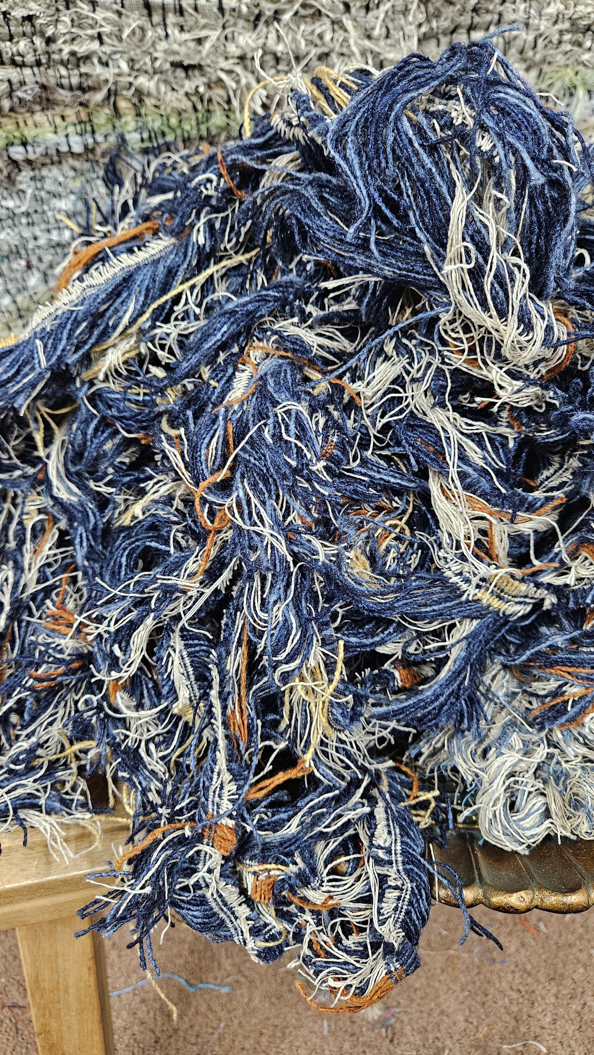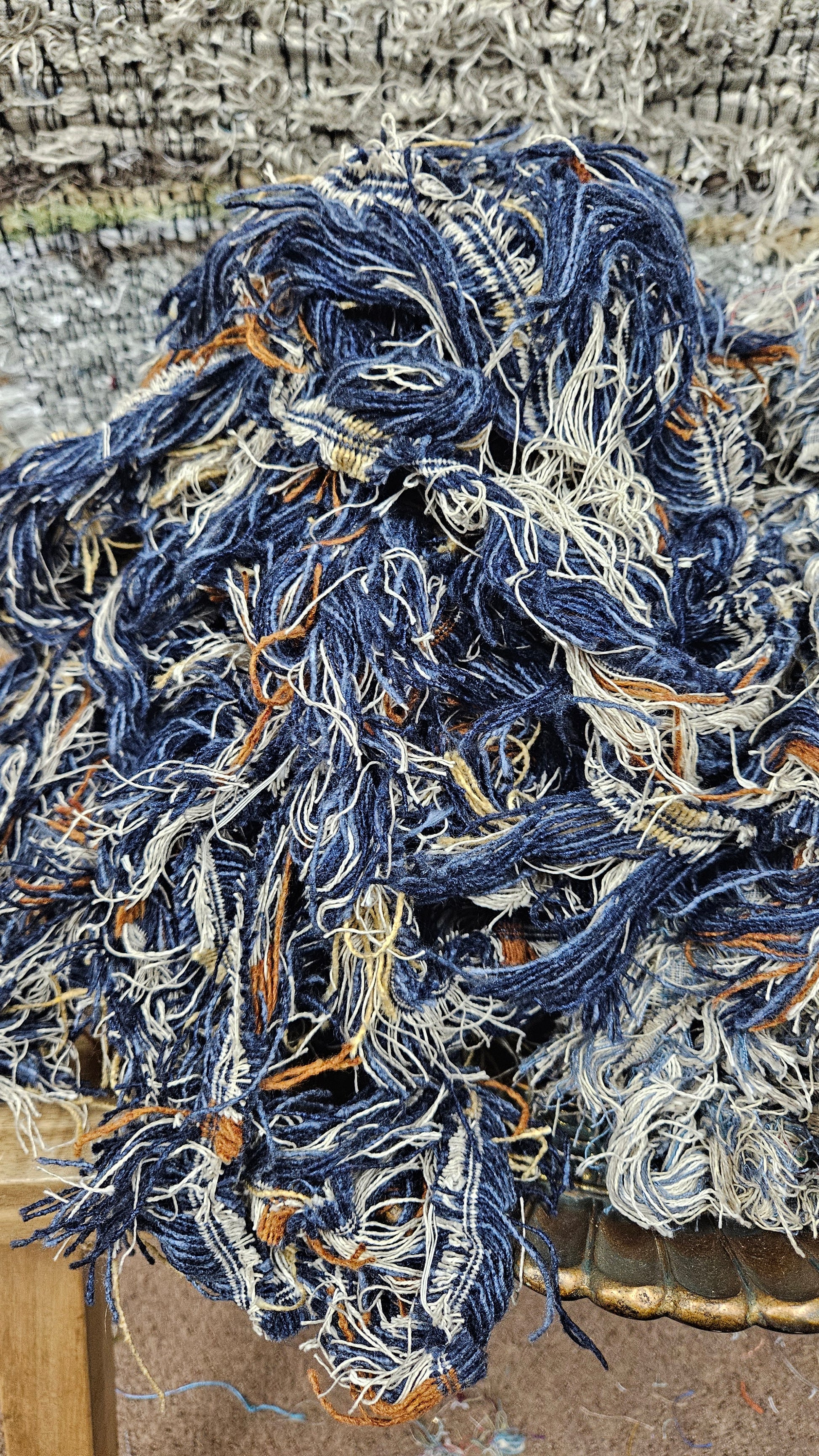 American Upholstery Selvage for shaggy fringe plying and weaving. Perfect for spinning into chunky shaggy sections of art yarn or adding unique texture to tapestry weaving as well as rug weaving.