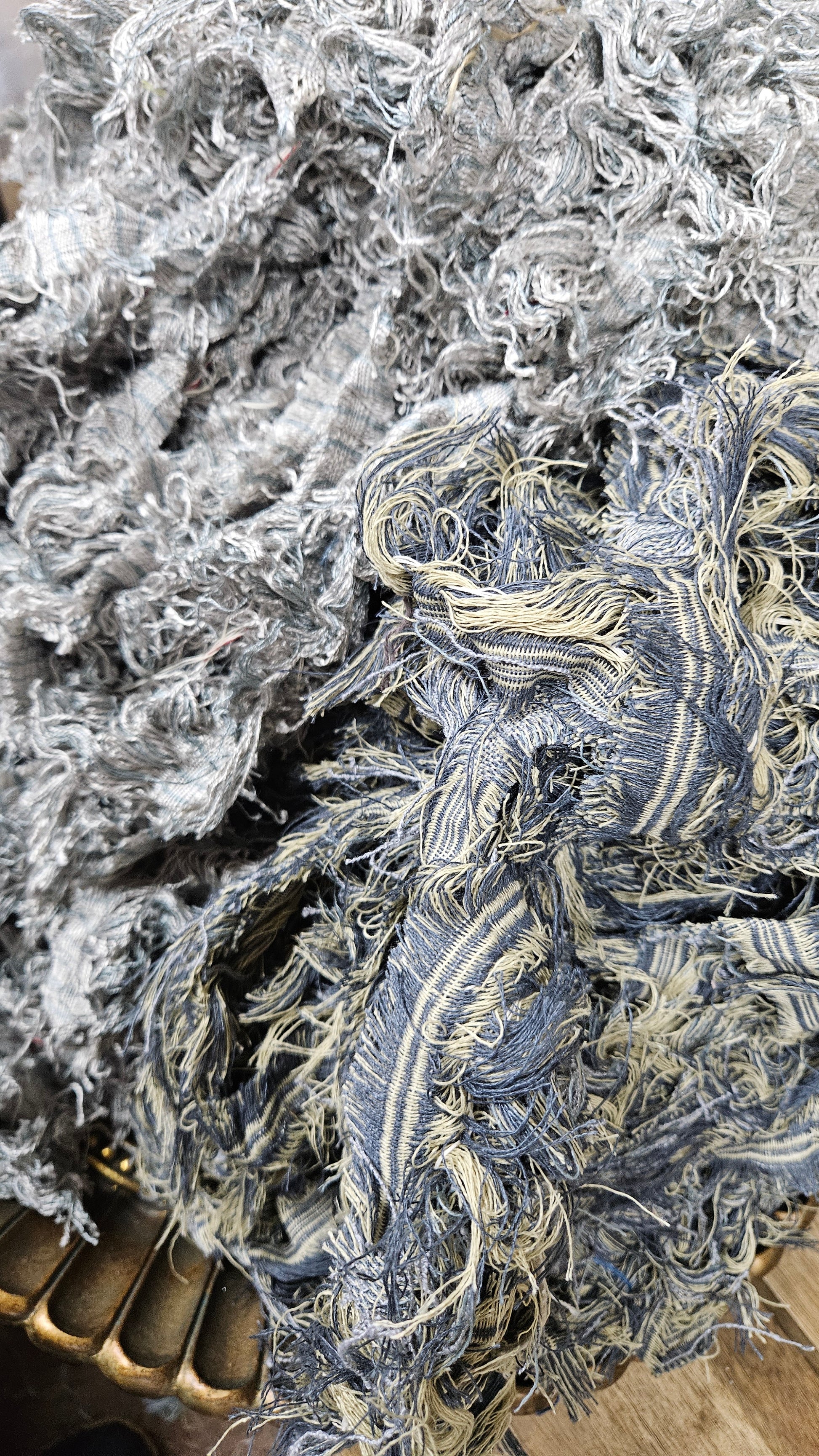 American Upholstery Selvage for shaggy fringe plying and weaving. Perfect for spinning into chunky shaggy sections of art yarn or adding unique texture to tapestry weaving as well as rug weaving.