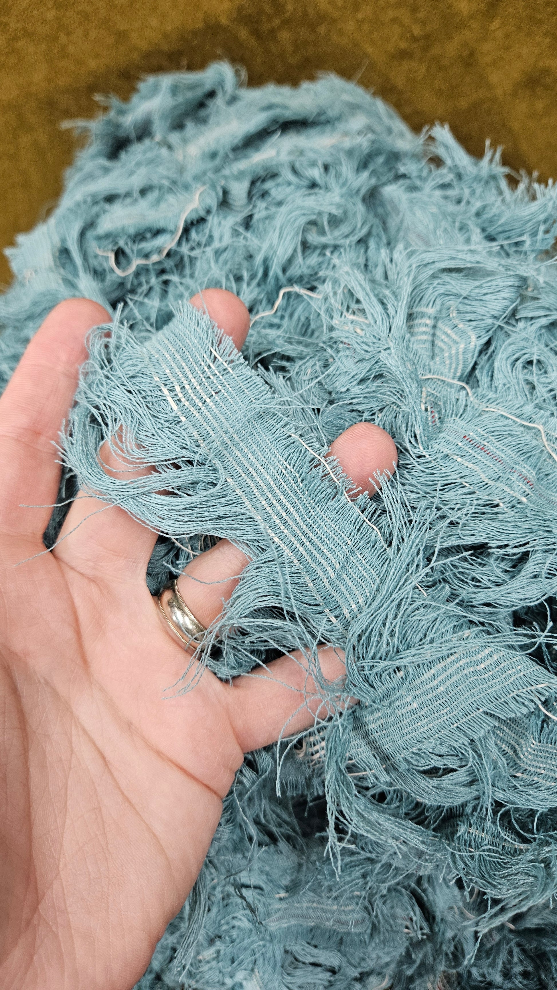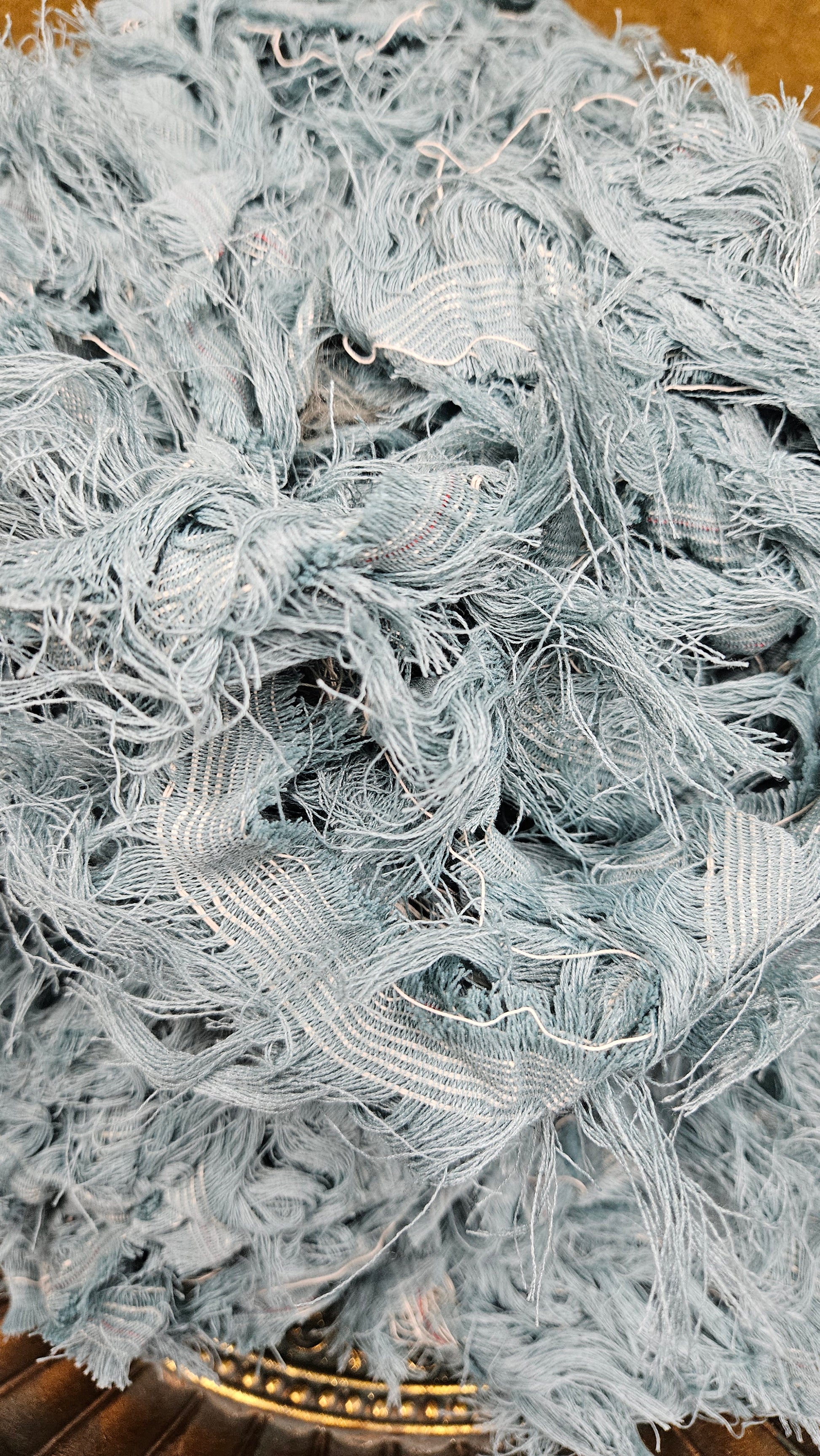 American Upholstery Selvage for shaggy fringe plying and weaving. Perfect for spinning into chunky shaggy sections of art yarn or adding unique texture to tapestry weaving as well as rug weaving.
