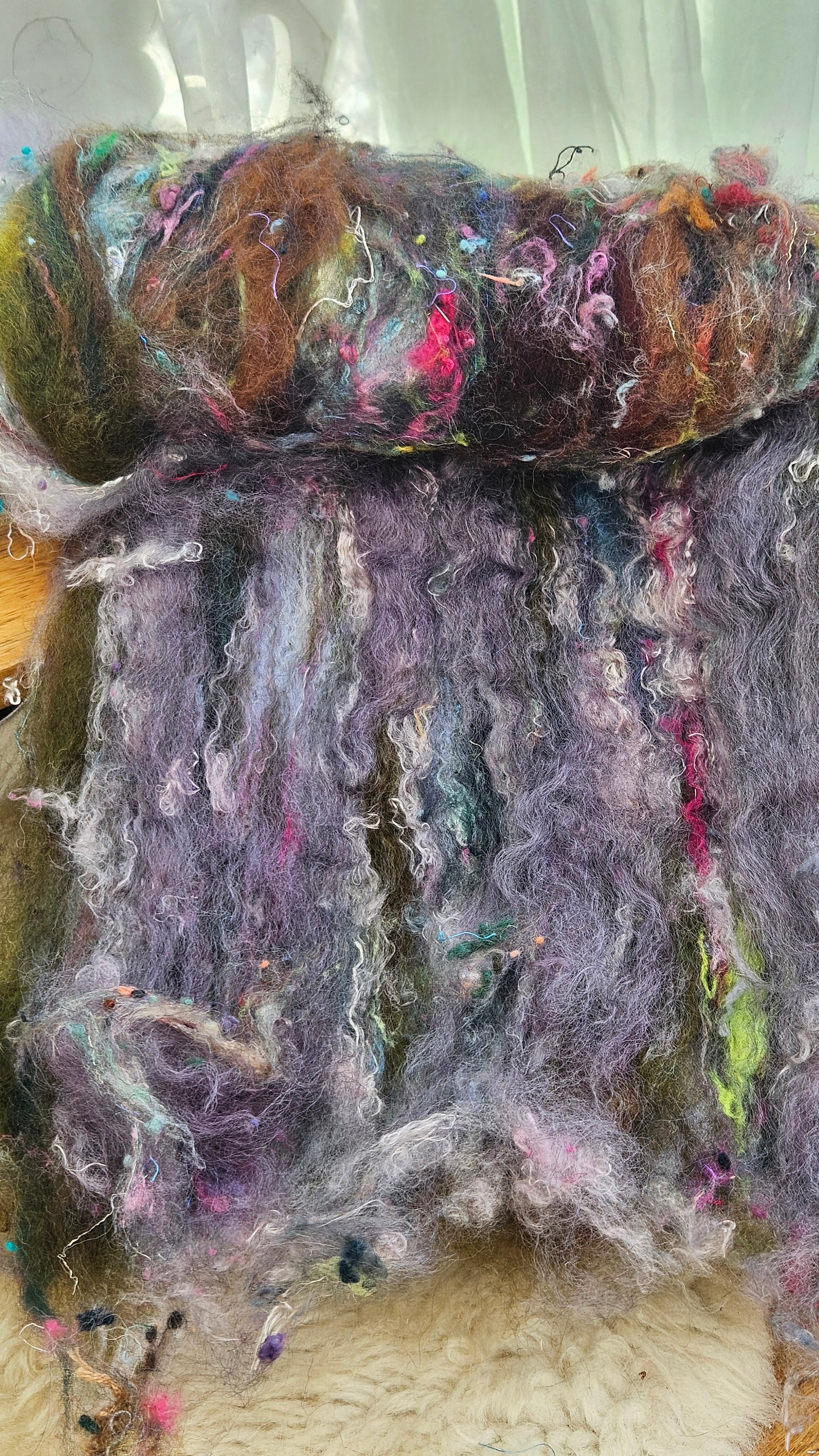 Some trace lanolin may be present in some batts due to the nature of the fine wool used in the base. Ideal for spinning art yarn especially and including corespinning.