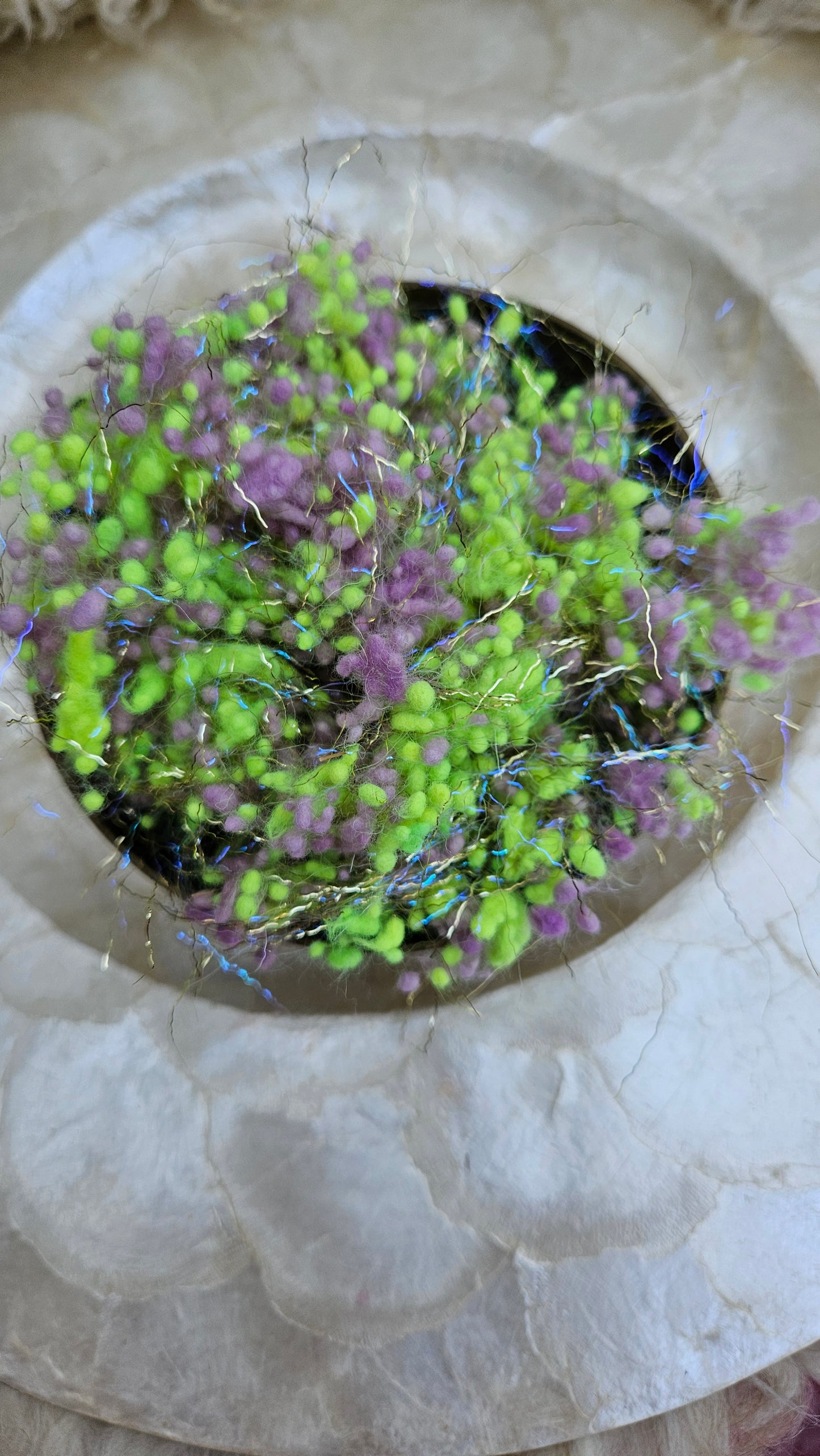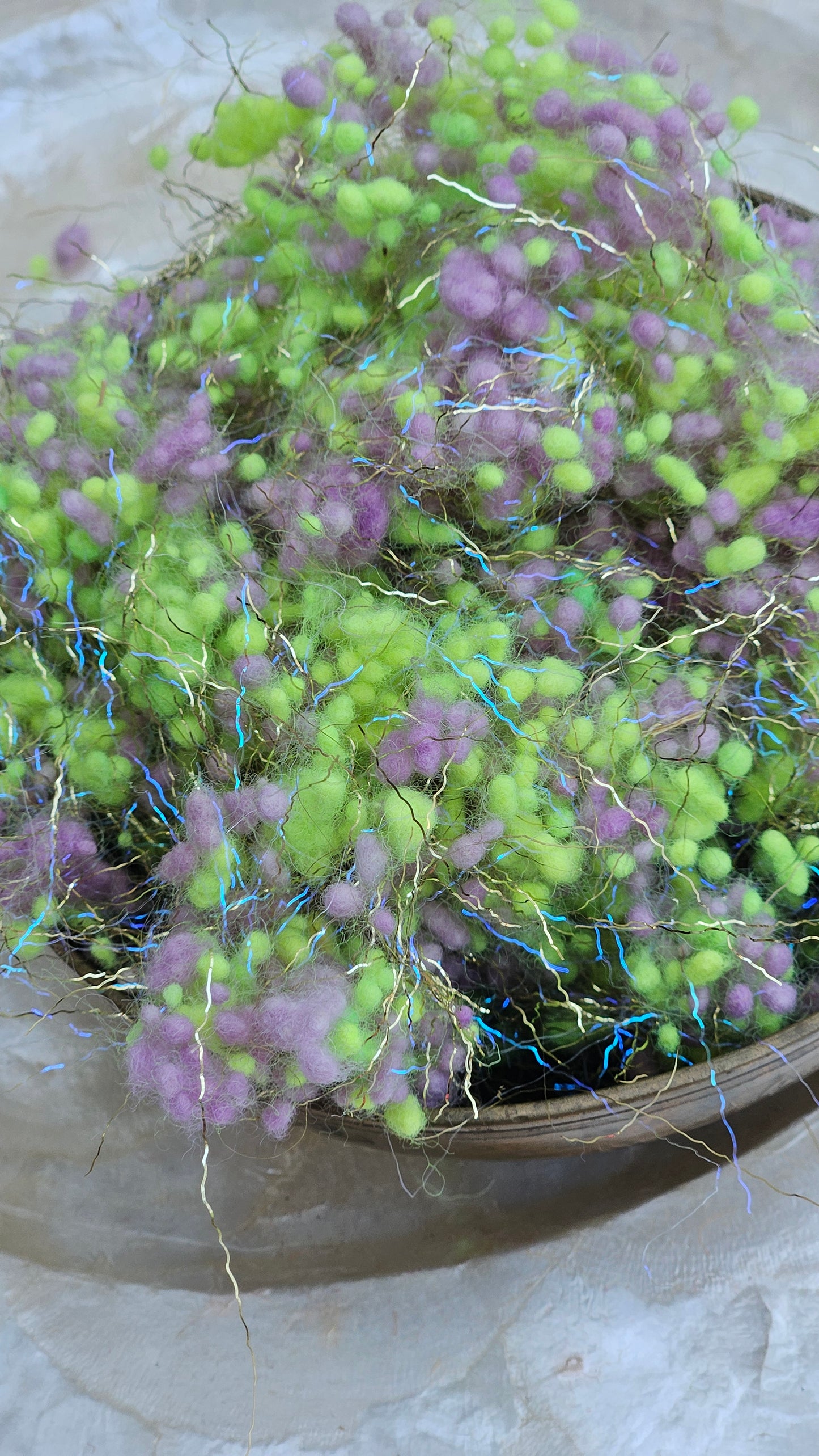 Hand-dyed wool nepps are the confetti of creativity that bring your fiber art to life. Each tiny ball of wool carries color, character, and whimsy - perfect for spinners, felters, weavers, and mixed-media makers. Add pops of texture, speckles of color, and painterly dimension to your spinning, felting, papermaking, and mixed media projects with fine wool nepps.