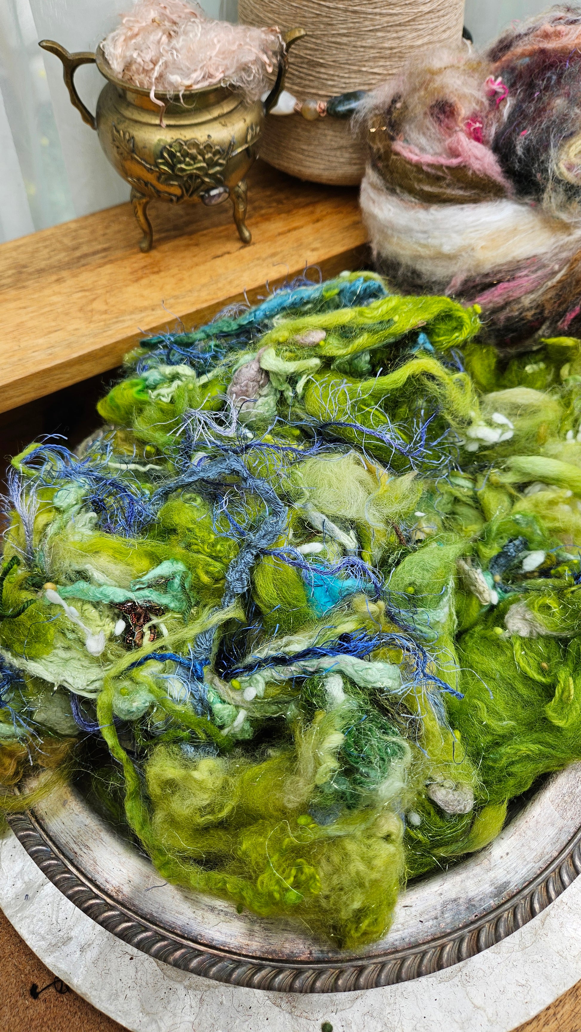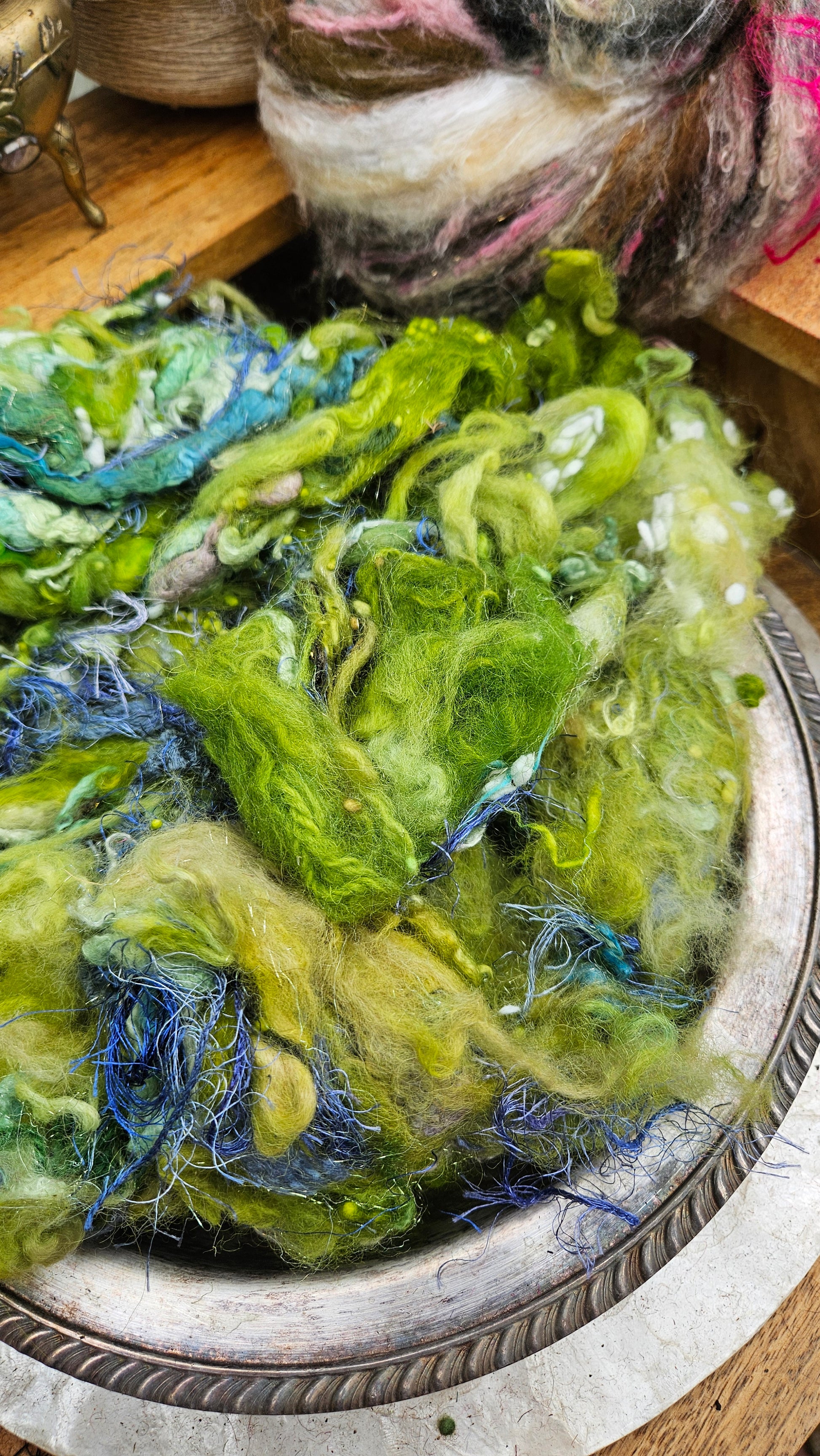 Every blend is hand-crafted in small batches. Whether you spin fine singles, textured art yarns, or add it into felting and mixed-media projects, this blend invites endless experimentation and delight.