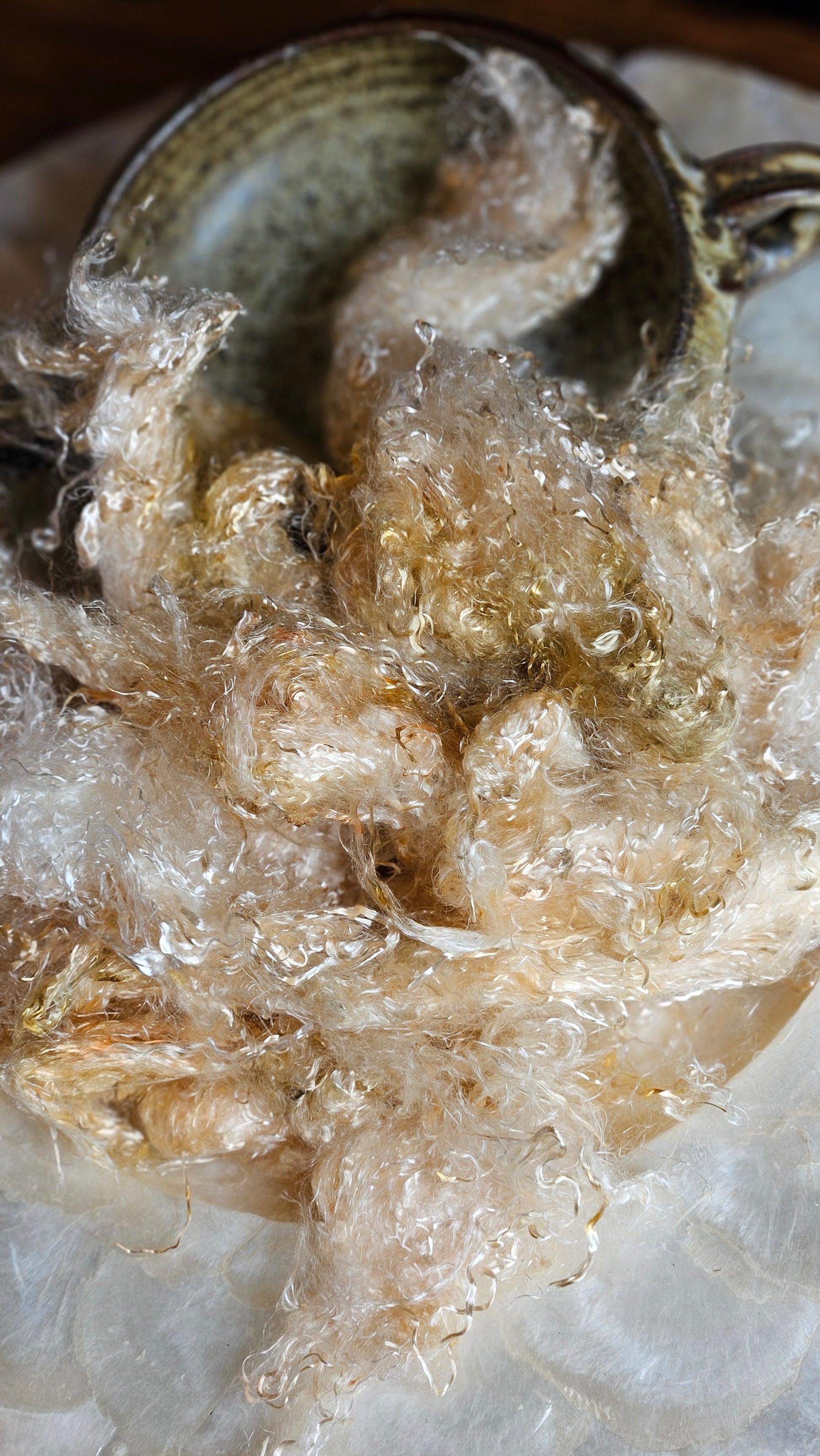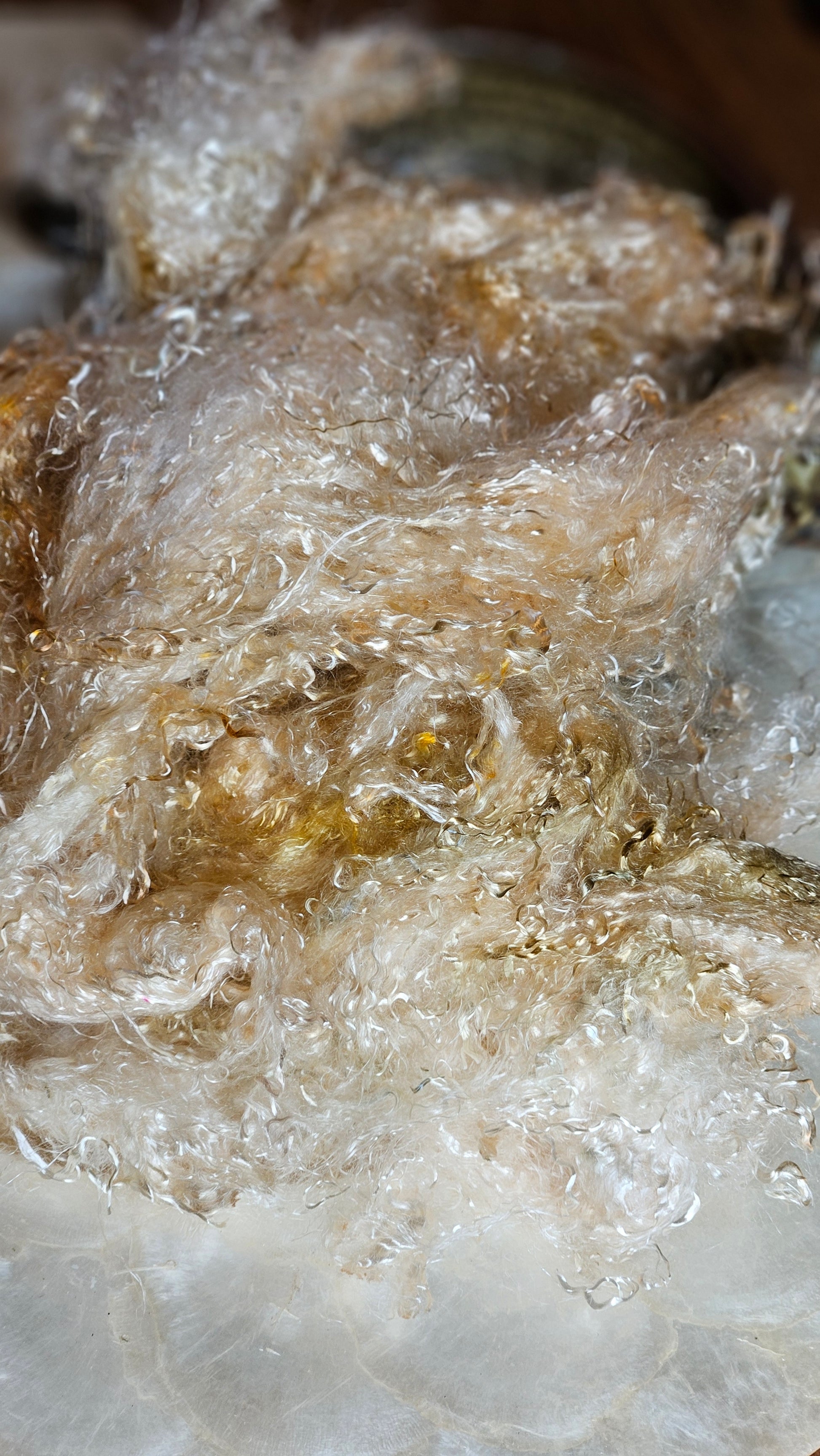 Neauveau hand-dyed eucalyptus crimp fauxsilk fiber adds shine and silky texture to everything from art yarn spinning to papermaking, felting, and mixed media fiber art. Dyed in small batches using signature painterly techniques. Expect subtle tonal variation and texture - no two bags are exactly alike, and that's part of the magic. Colorways in this collection are inspired by shimmering gemstones and subtle metallic tones, perfect for adding depth and elegance to your palette.