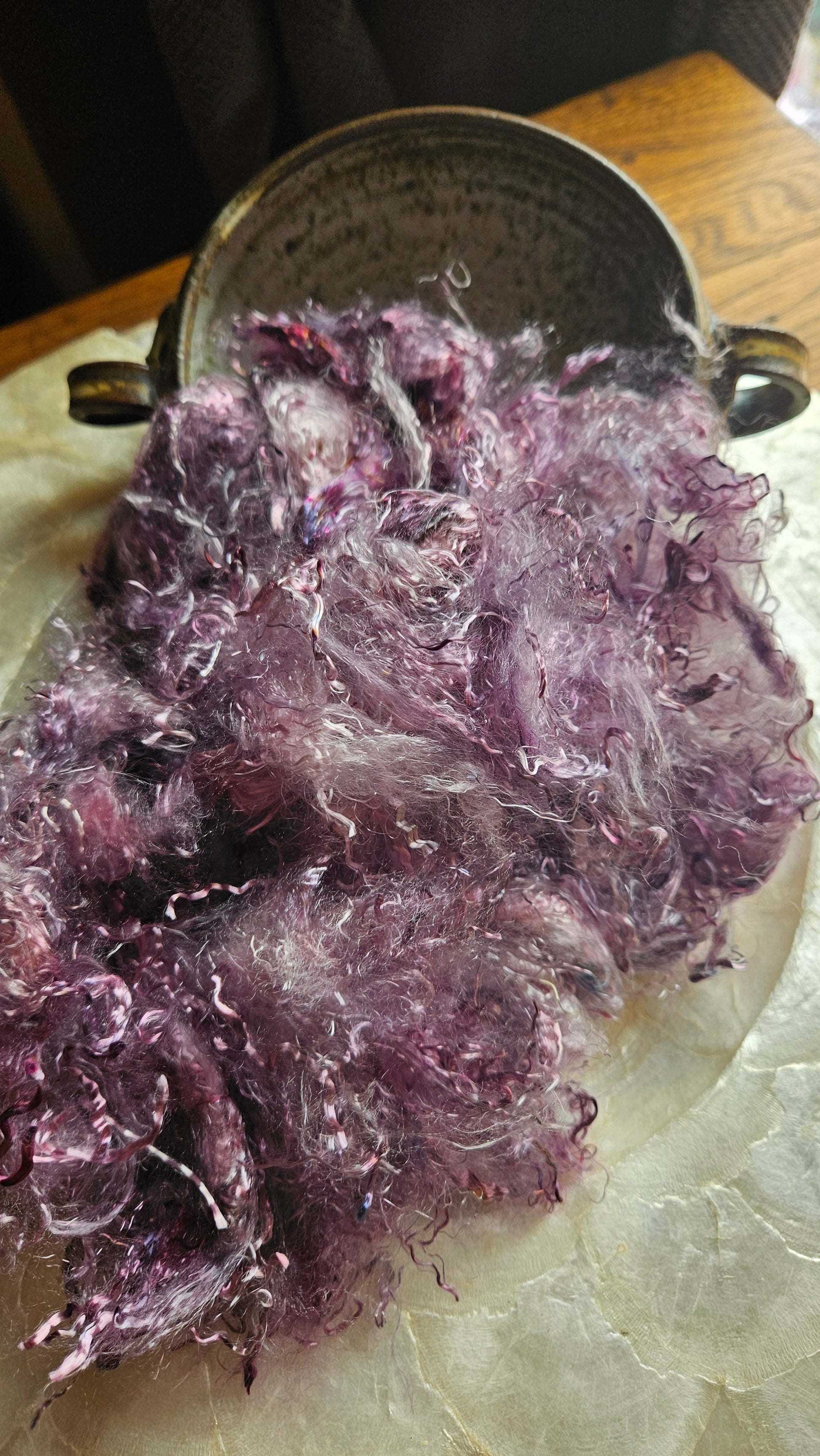 PURPURITE - hand-dyed eucalyptus crimp faux-silk for art yarn embellishing, fiber blending, felting, and papermaking - 2 oz | 57 g