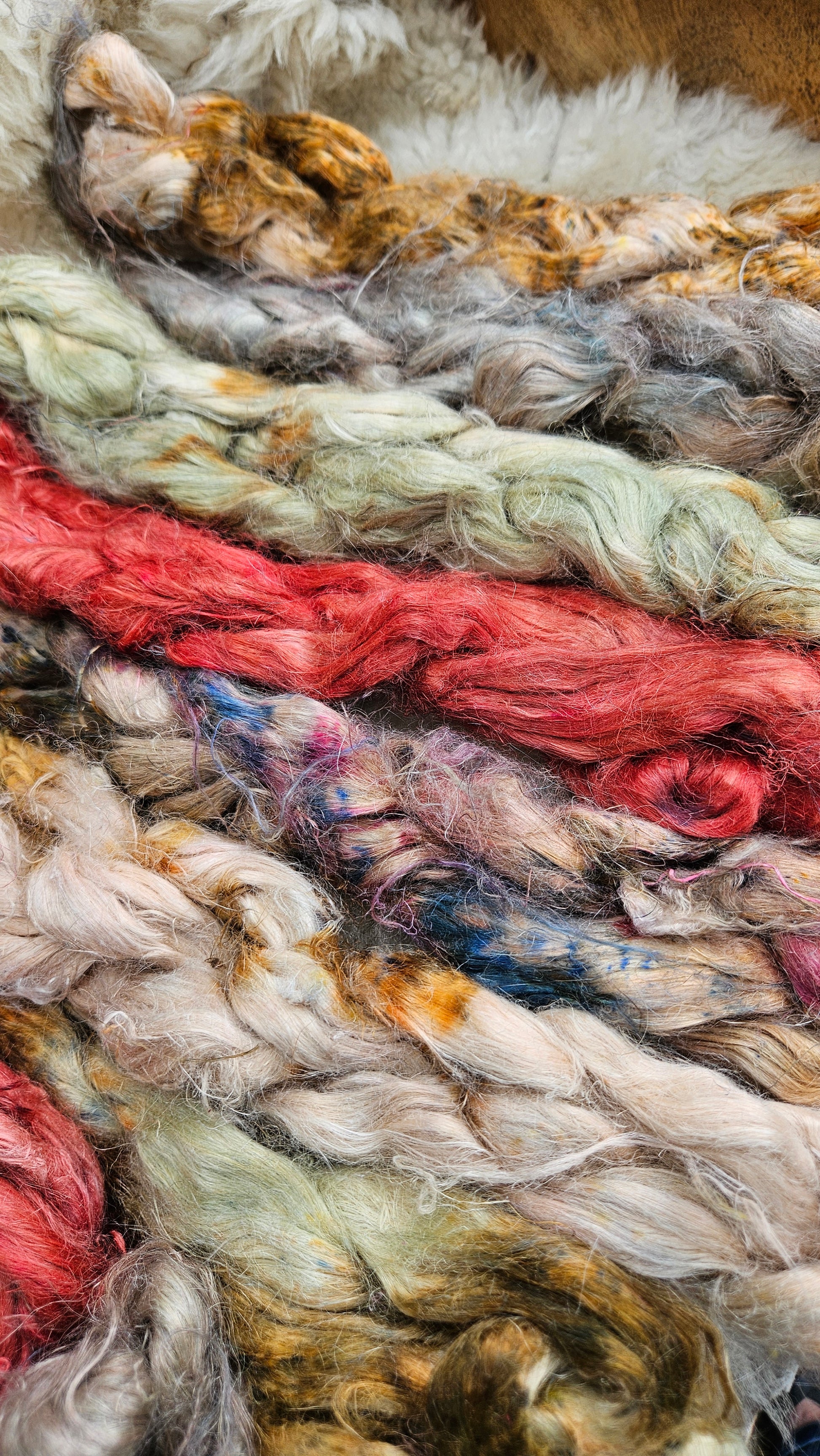 Hemp brings a rustic, timeless texture to your creative work. Soft yet strong, this fiber is perfect for blending into batts, carding with wool or silk, adding depth to felting, or layering into fiber art and mixed media projects. Its slightly coarse, linen-like quality gives projects a natural, earthy character - ideal for artists who love rich textures and organic finishes.