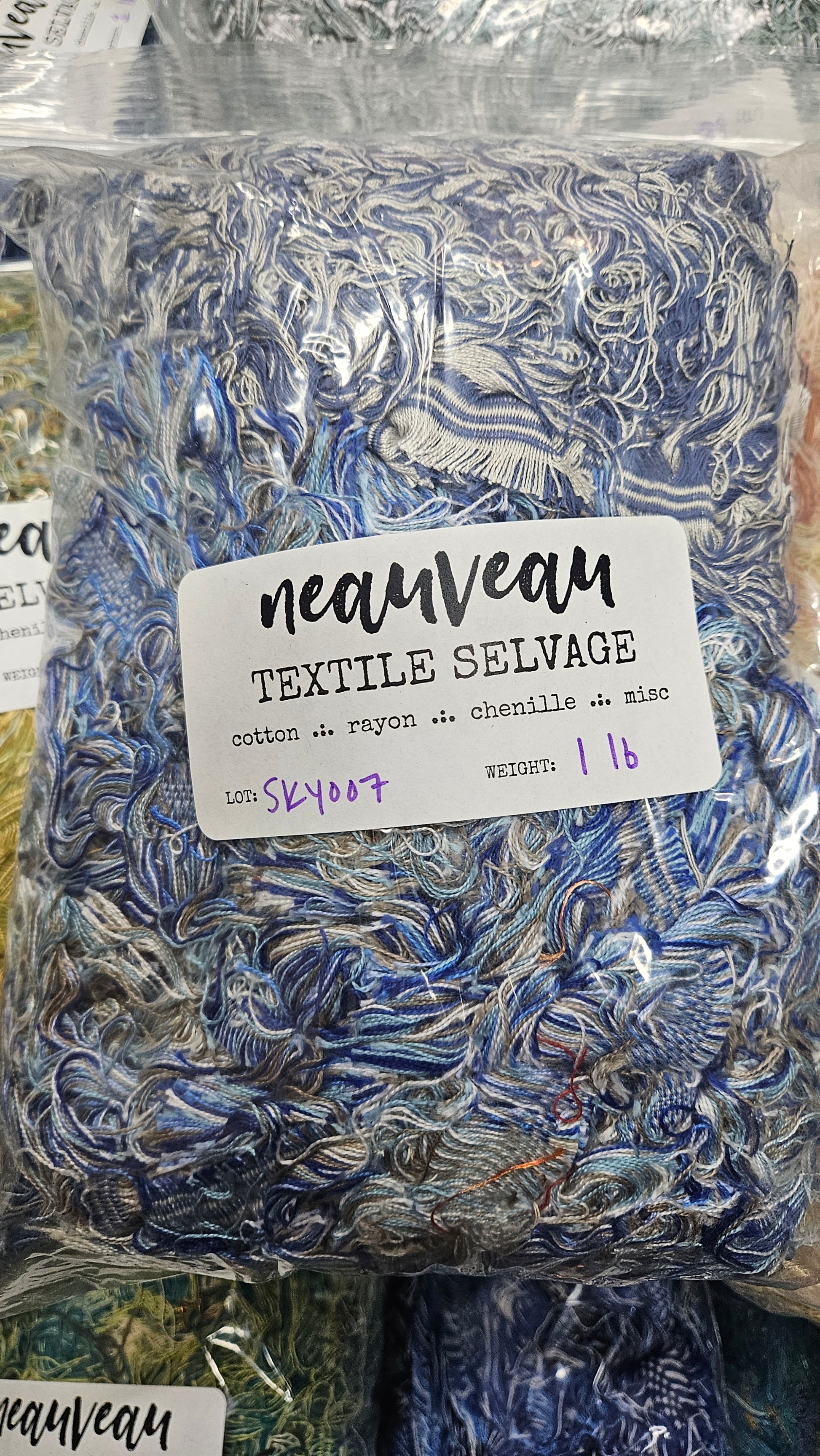 BLUE SKIES - textile selvedge for rug and art weaving and art yarn - SKY007 (1 lb)