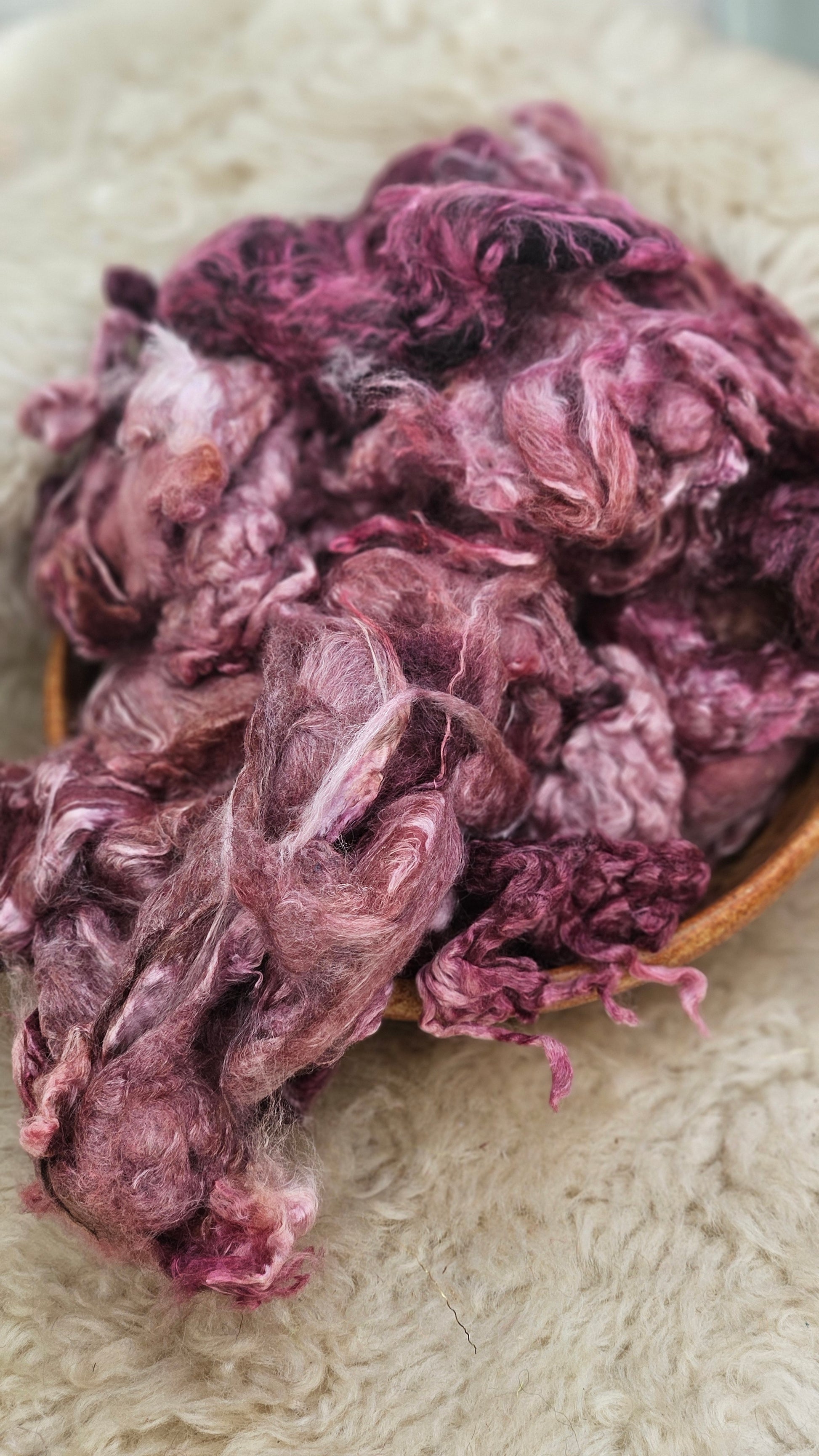 These dense mallowy chunks can be hand-picked very easily to create a fluffy cloud. Running it thru a wool picker would create divine fluffy cloud. This zero-waste fiber is a perfect foundation for art batts, felting, and fiber art.