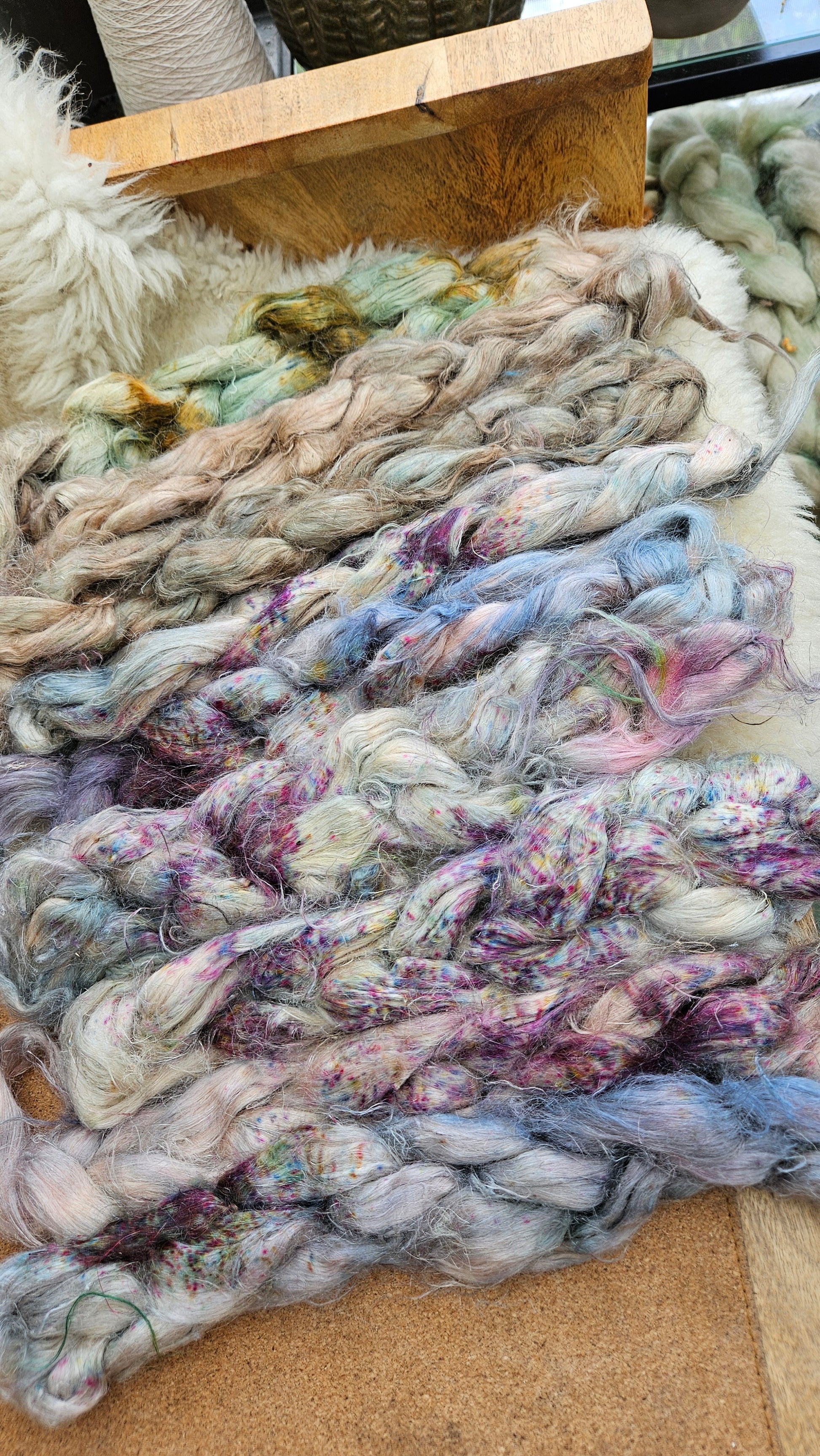 Hemp brings a rustic, timeless texture to your creative work. Soft yet strong, this fiber is perfect for blending into batts, carding with wool or silk, adding depth to felting, or layering into fiber art and mixed media projects. Its slightly coarse, linen-like quality gives projects a natural, earthy character - ideal for artists who love rich textures and organic finishes.