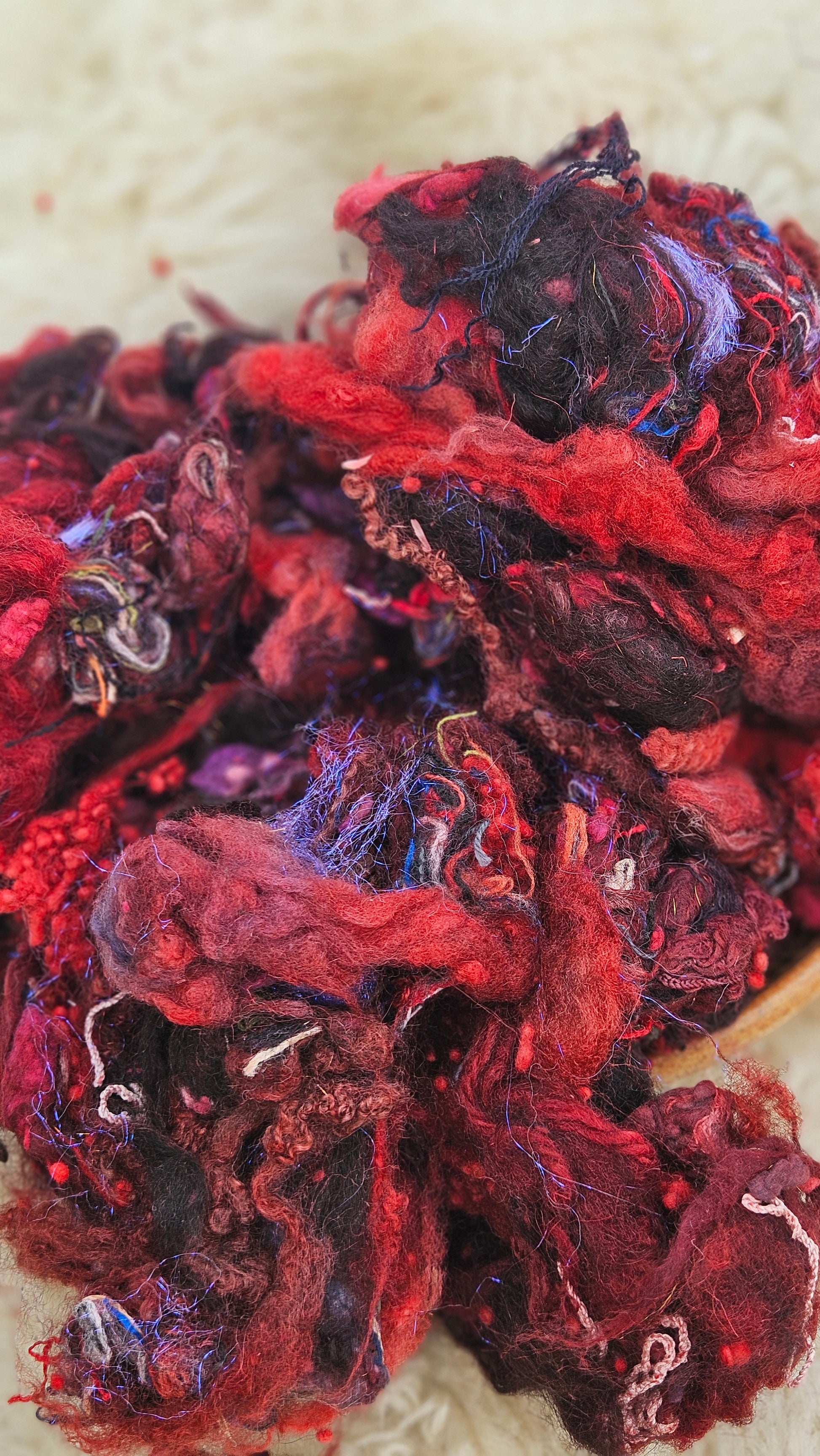 Every blend is hand-crafted in small batches. Whether you spin fine singles, textured art yarns, or add it into felting and mixed-media projects, this blend invites endless experimentation and delight.