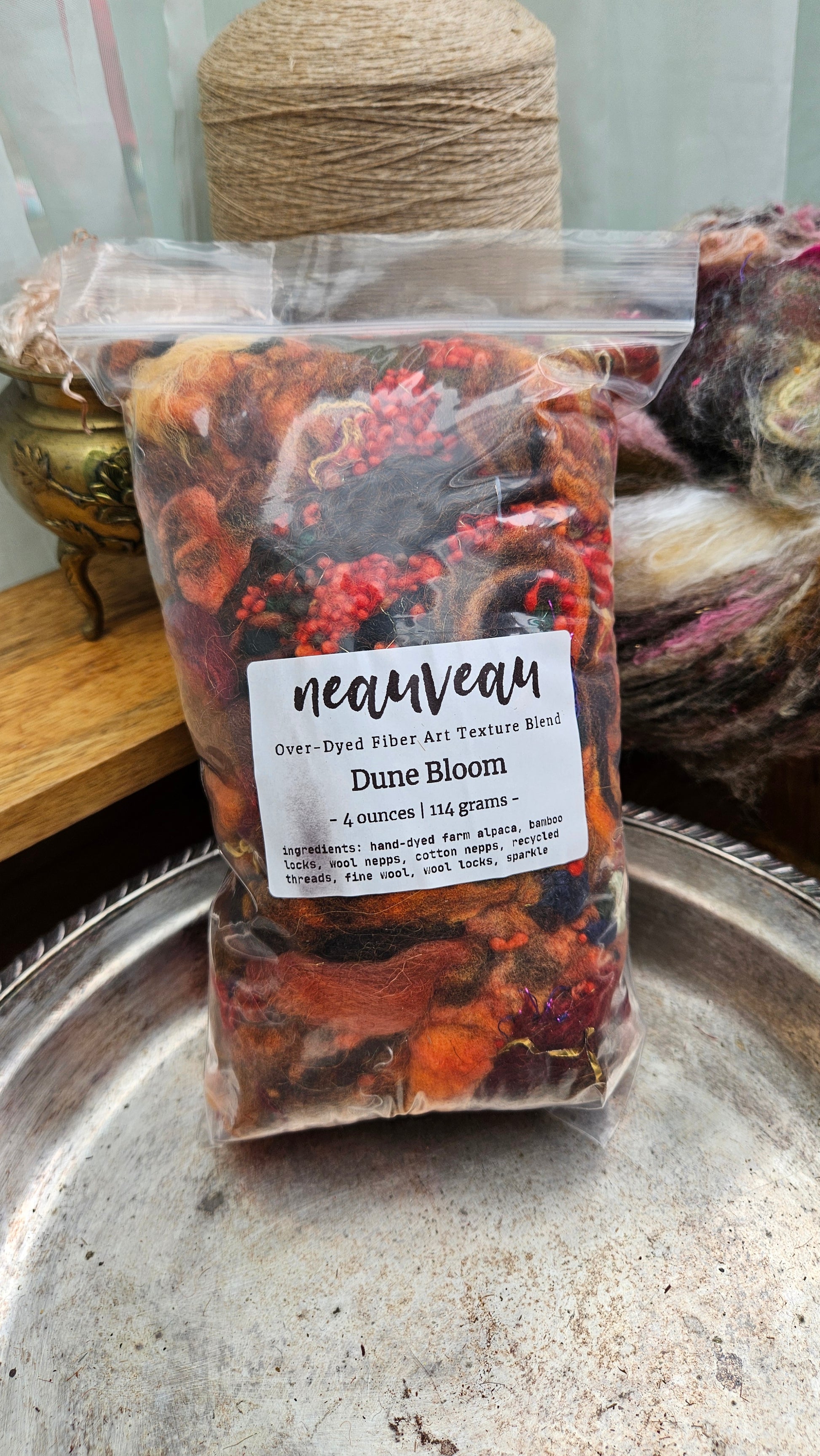 DUNE BLOOM - Hand-Dyed Texture Blend for art yarn embellishing, texture blending, felting, mixed media, and fiber art - 4 ounces | 114 grams