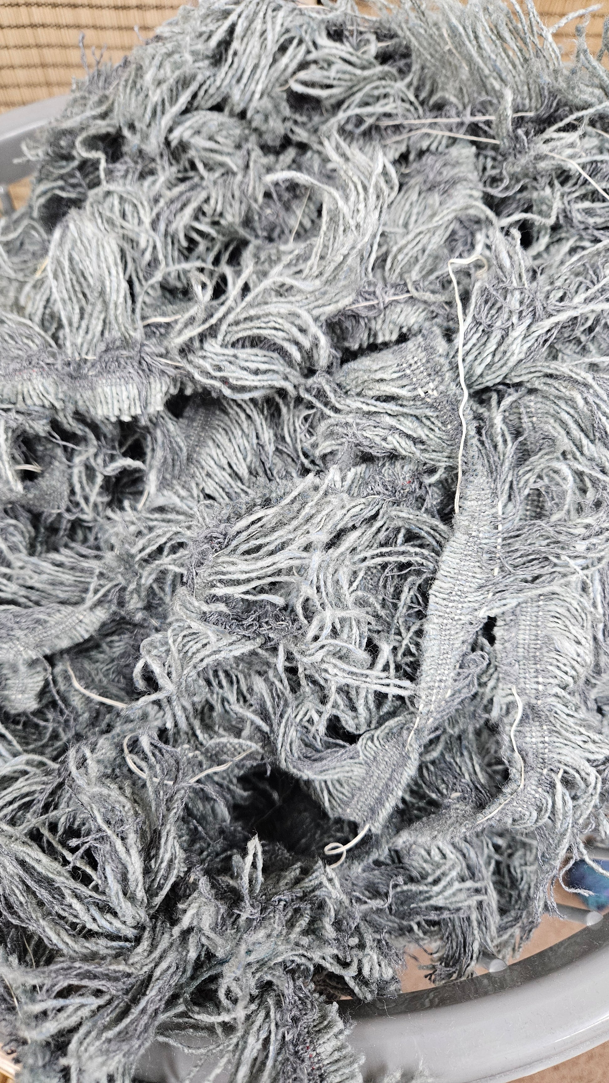 American Upholstery Selvage for shaggy fringe plying and weaving. Perfect for spinning into chunky shaggy sections of art yarn or adding unique texture to tapestry weaving as well as rug weaving.