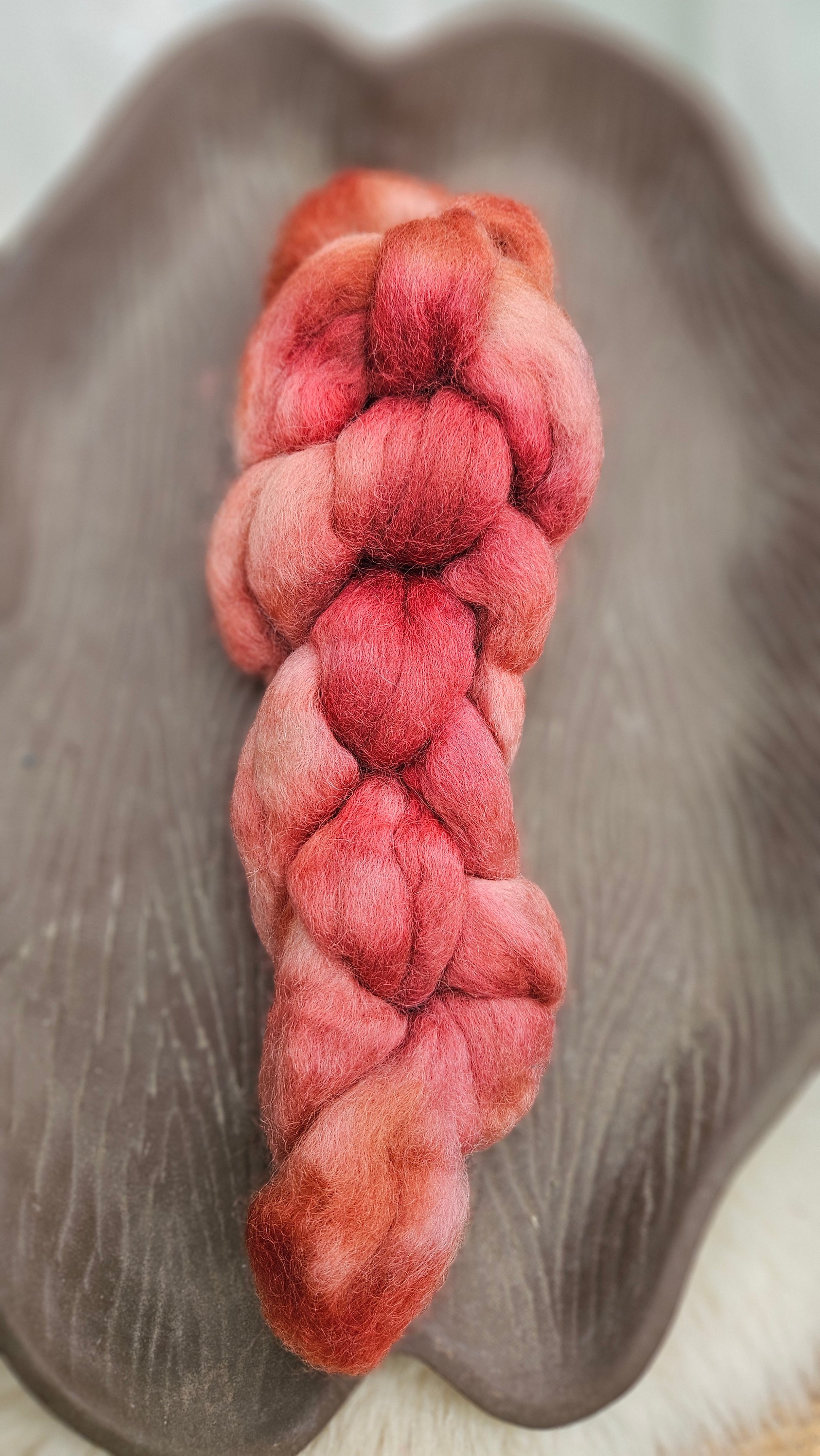 This wool was dyed as a loose braid using the dye immersion method - so when the braid is opened there will be surprise colors and tones and dimensions underneath the outside dye color. This color variation is intentional and the complete color story is meant to be a surprise.