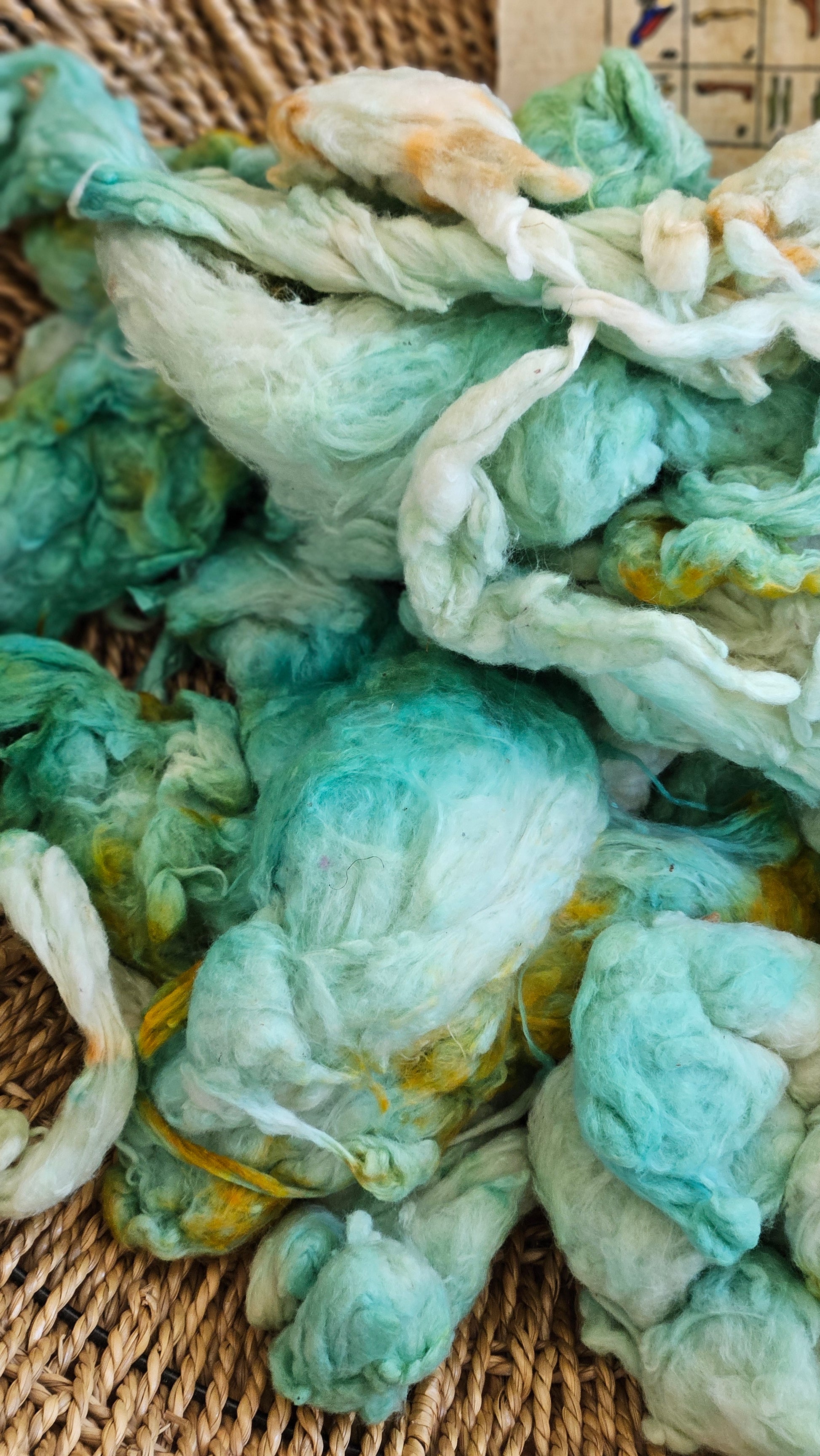 HORUS Hand-Dyed Organic Extra Fine Cotton Noil for fiber art, texture blending, and papermaking - 1 ounce | 28 grams
