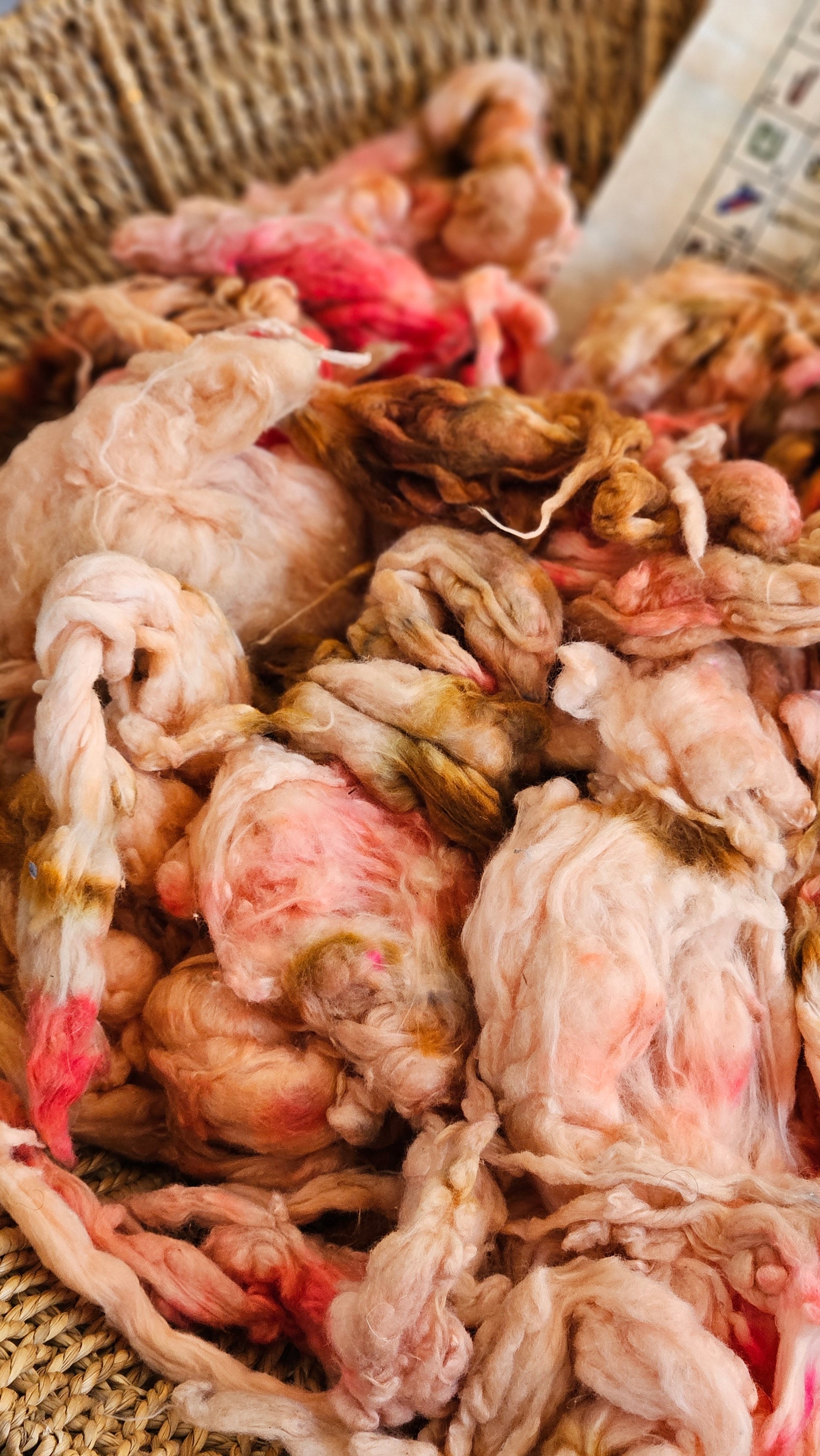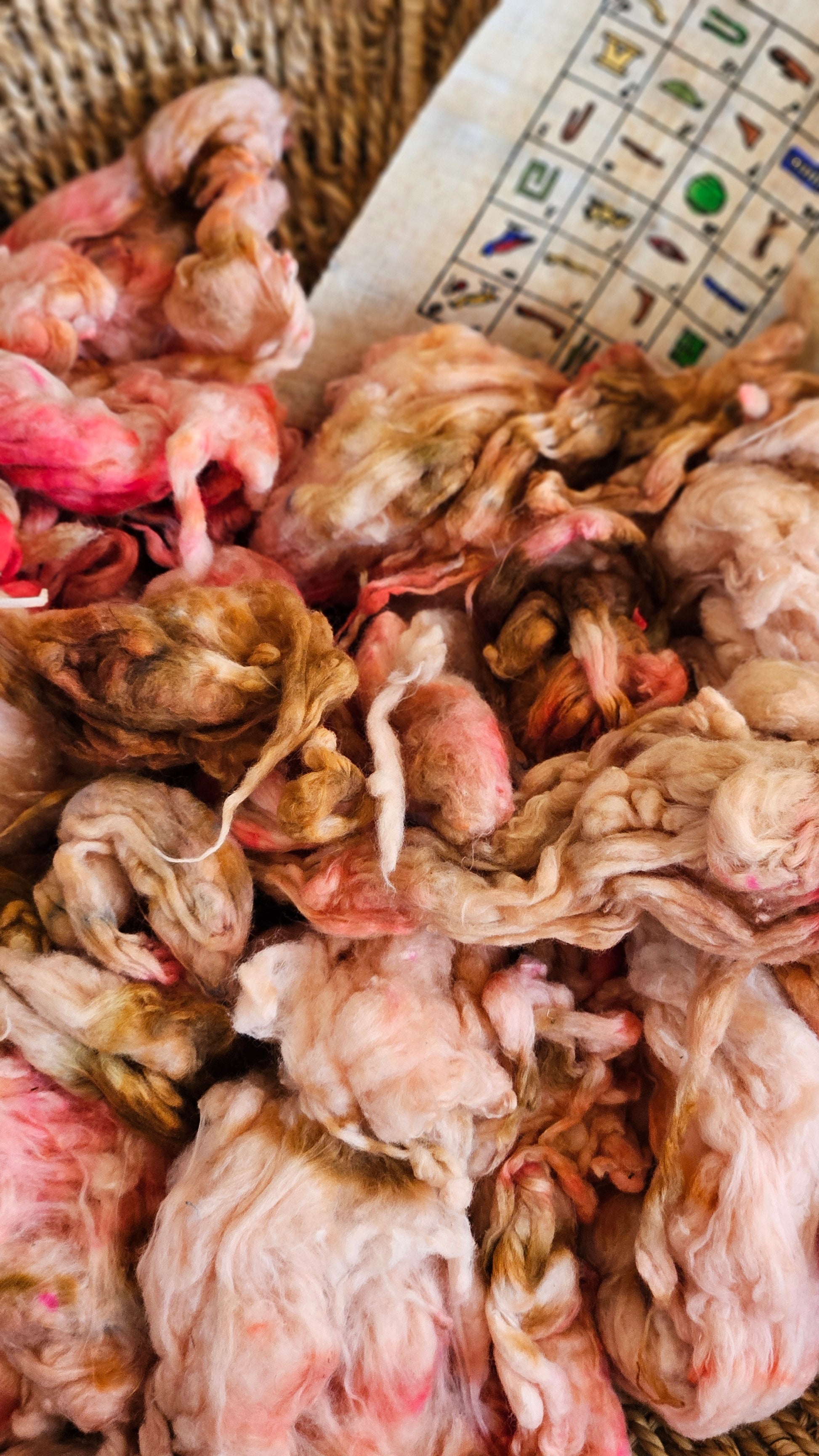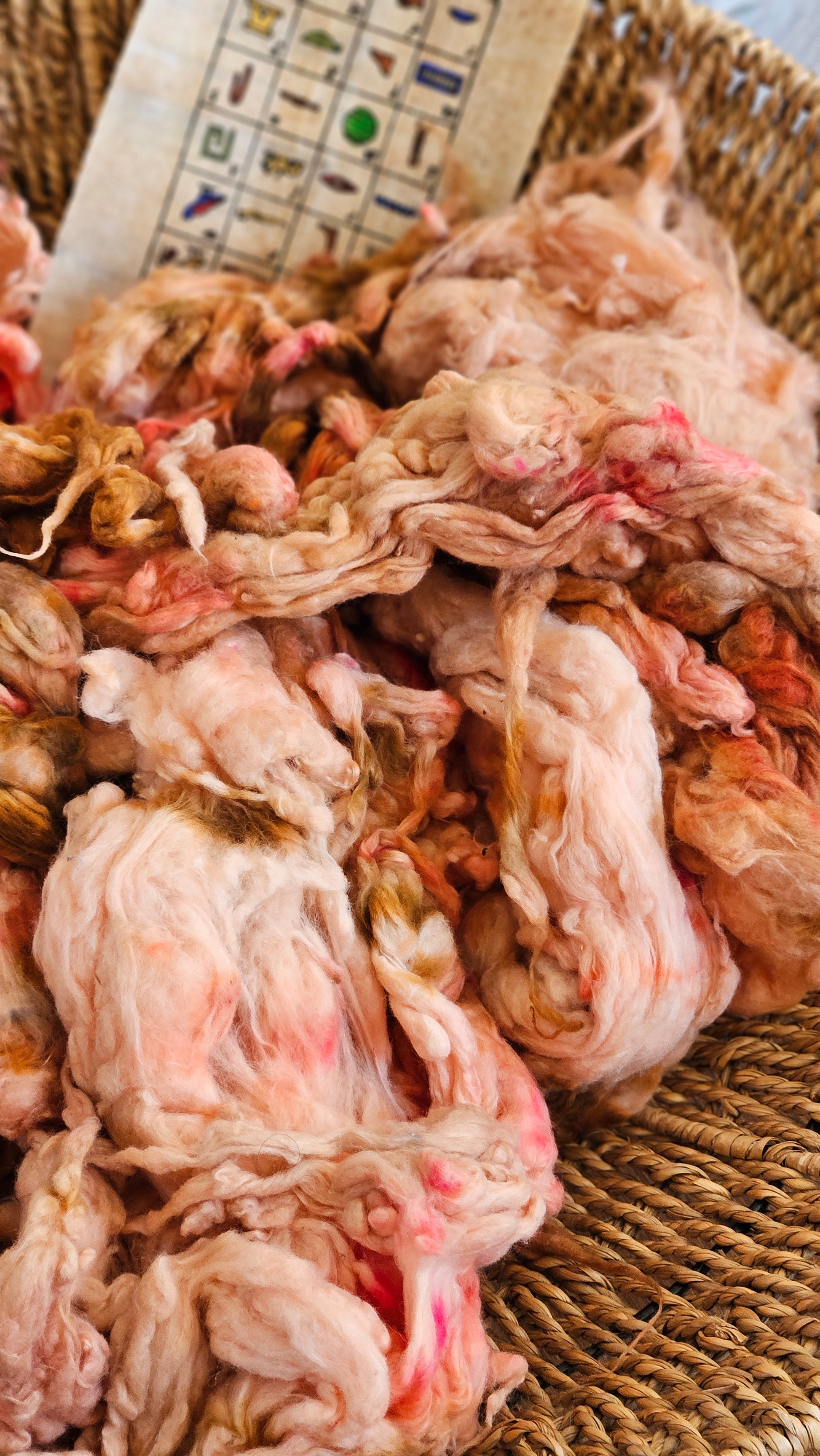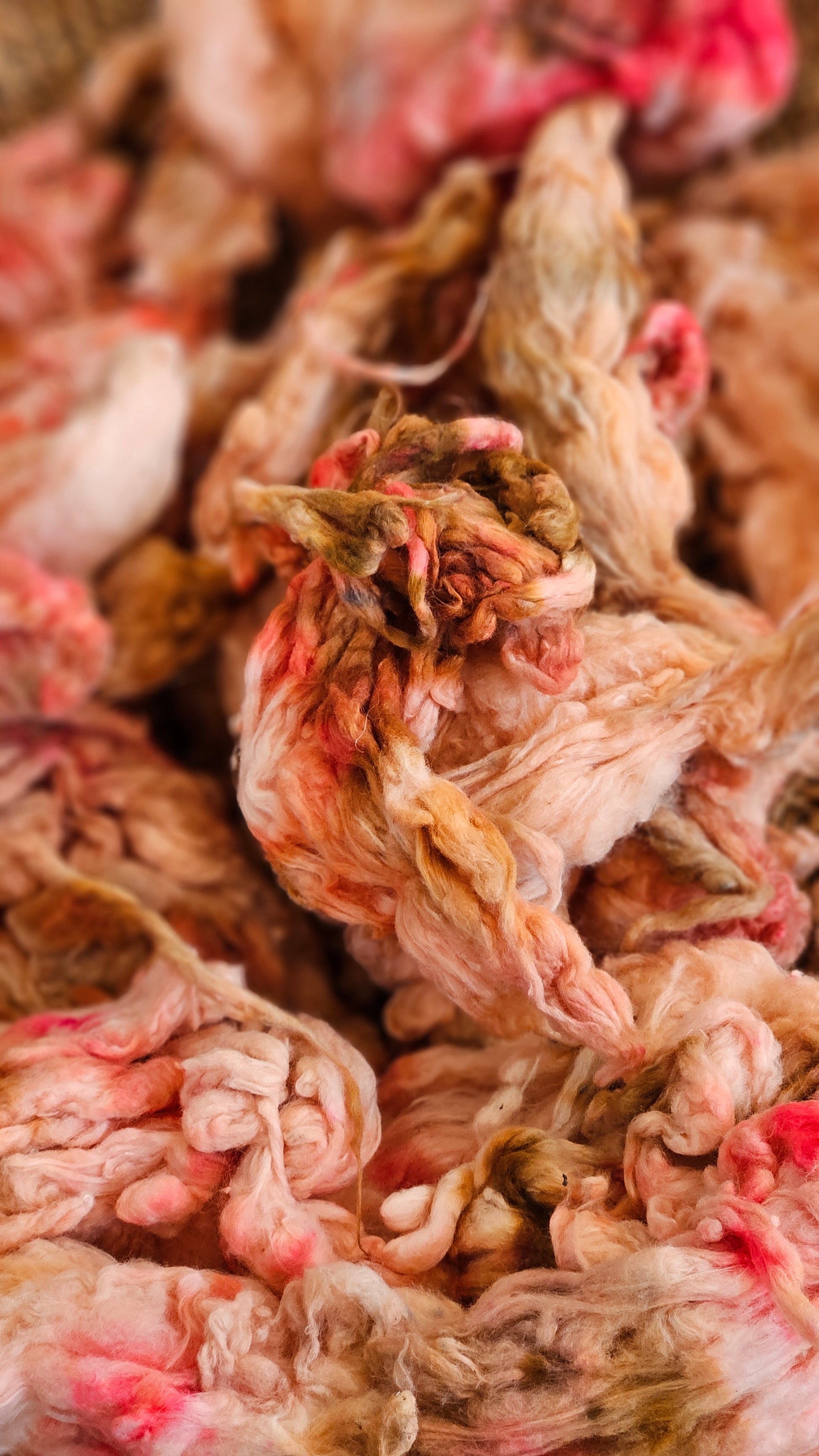 IMHOTEP Hand-Dyed Organic Extra Fine Cotton Noil for fiber art, texture blending, and papermaking - 1 ounce | 28 grams