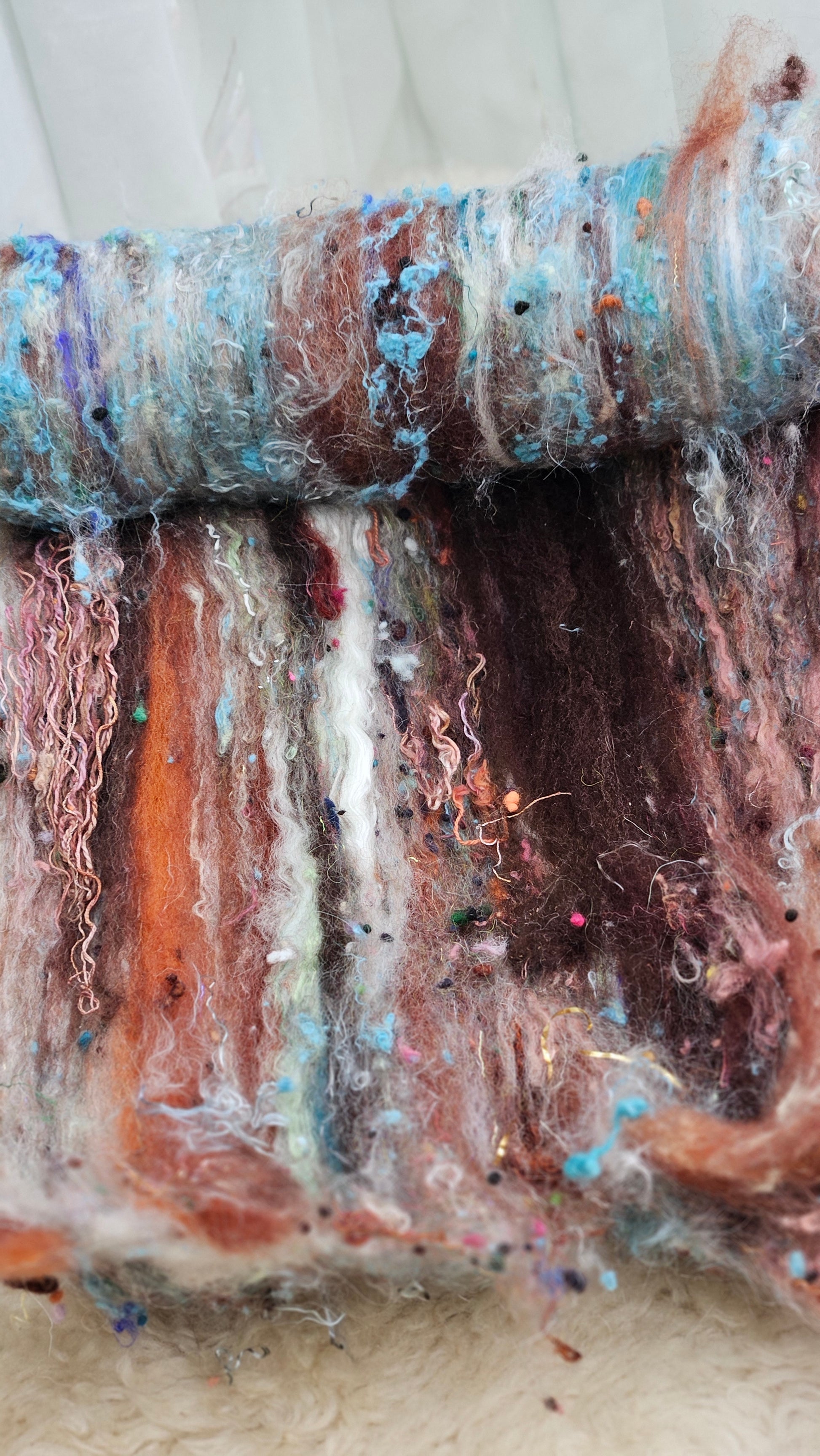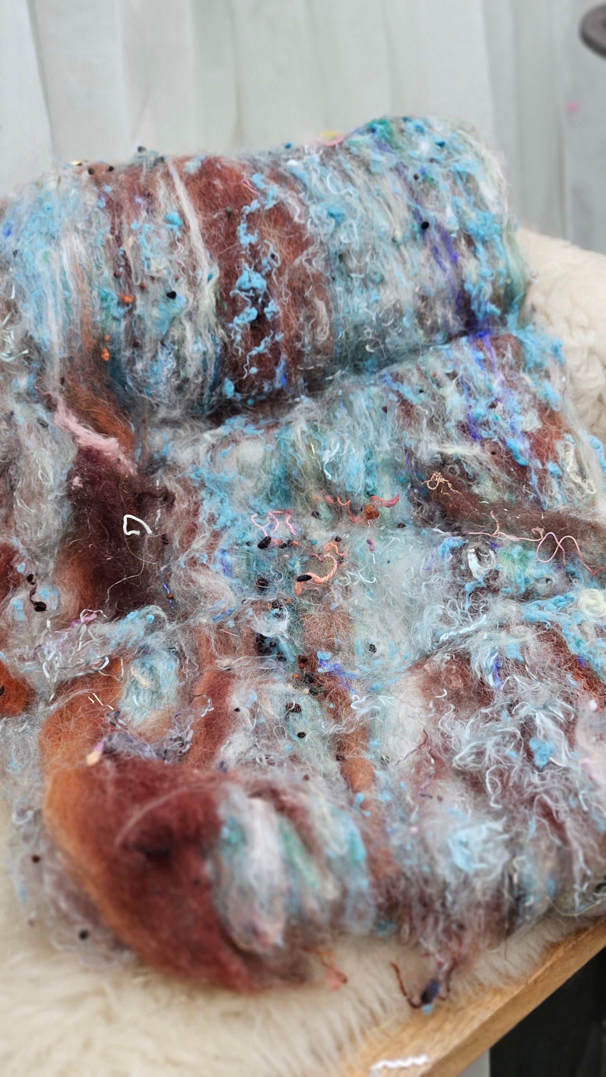Some trace lanolin may be present in some batts due to the nature of the fine wool used in the base. Ideal for spinning art yarn especially and including corespinning.