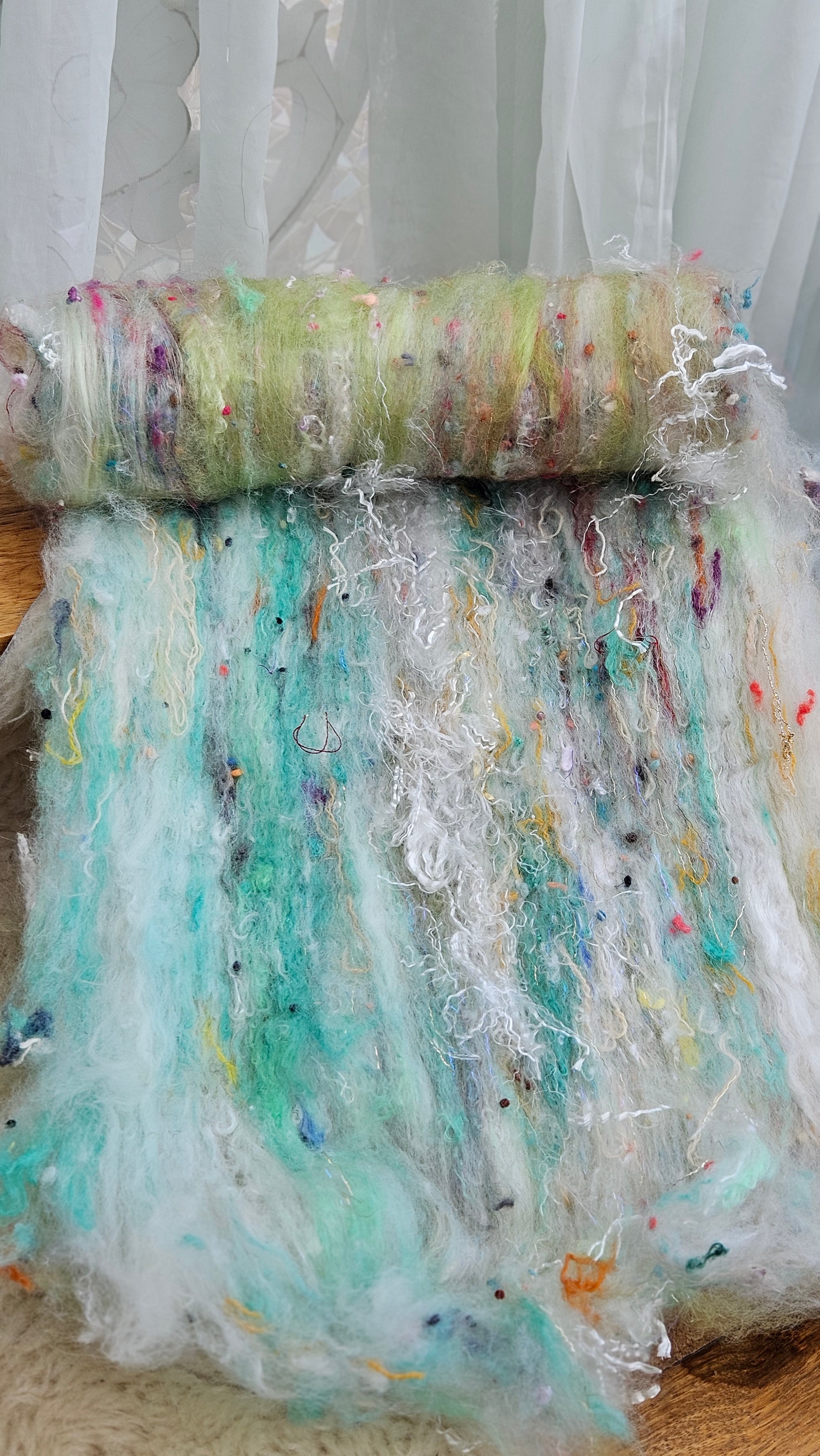 Some trace lanolin may be present in some batts due to the nature of the fine wool used in the base. Ideal for spinning art yarn especially and including corespinning.