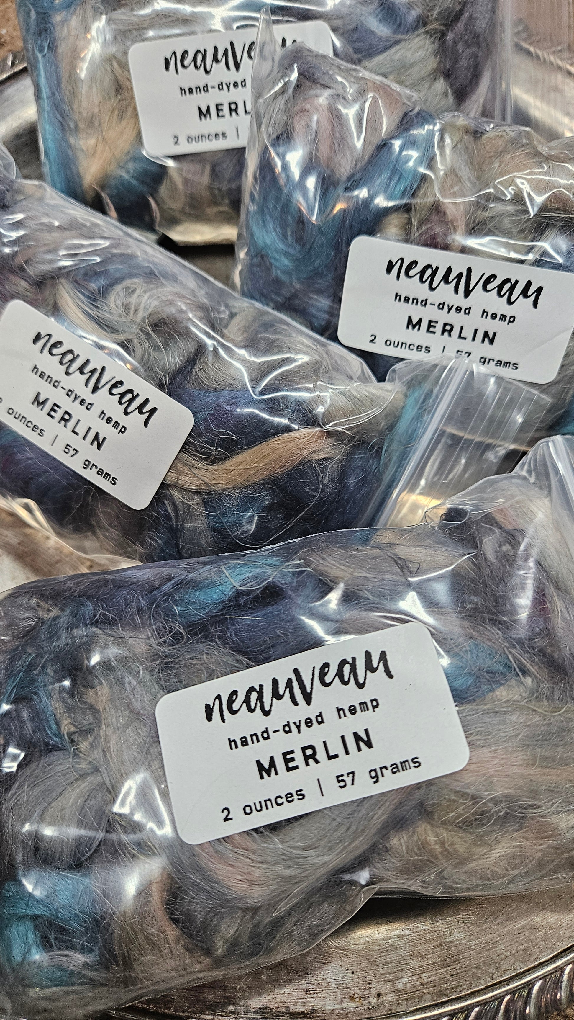 MERLIN Hand-Dyed Fine Hemp for fiber art, texture blending, and papermaking - 2 ounces | 57 grams