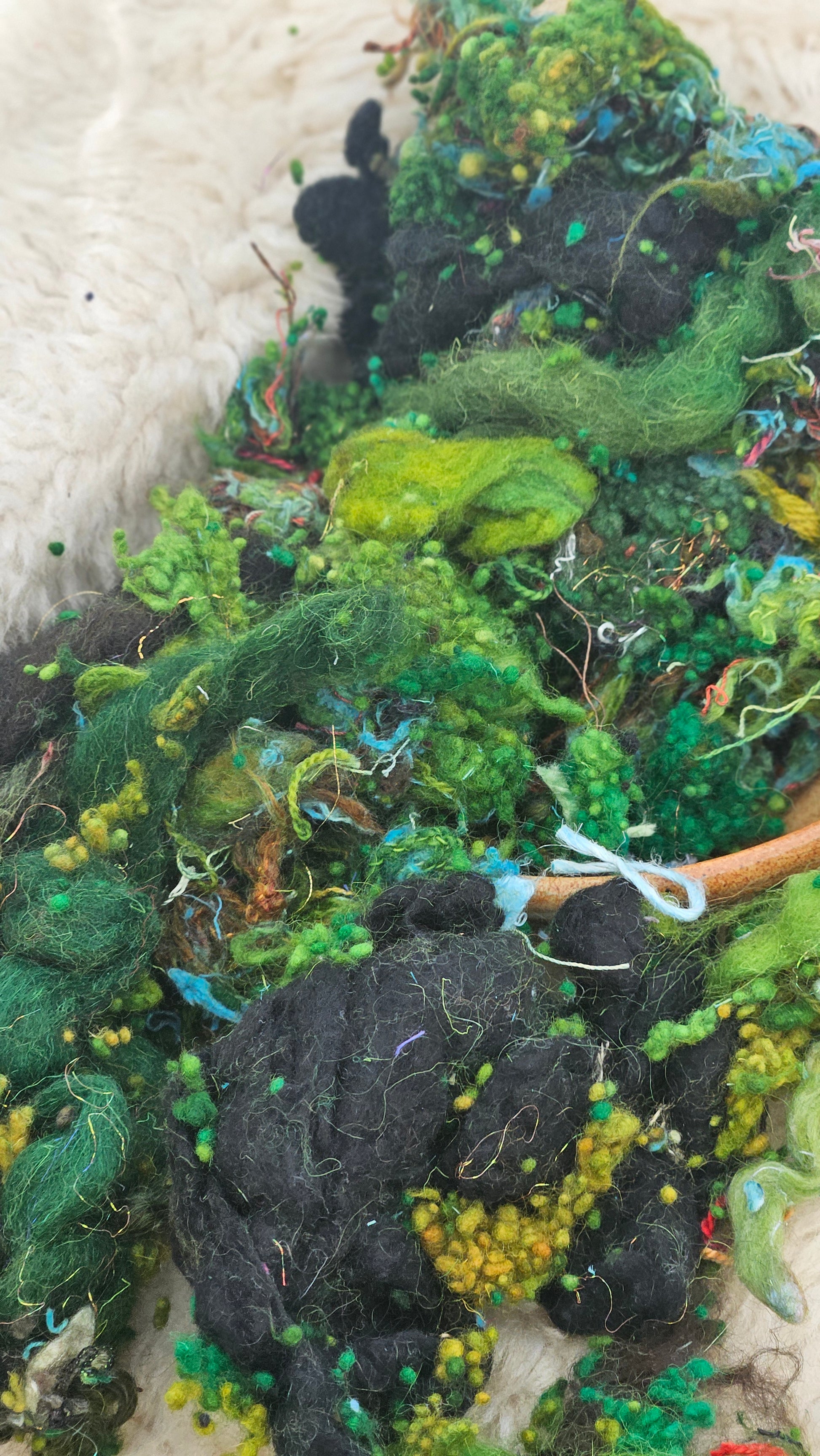 PRAIRIE GARDEN - Hand-Dyed Recycled Wool Texture Blend for art yarn embellishing, texture blending, felting, mixed media, and fiber art - 4 ounces | 114 grams