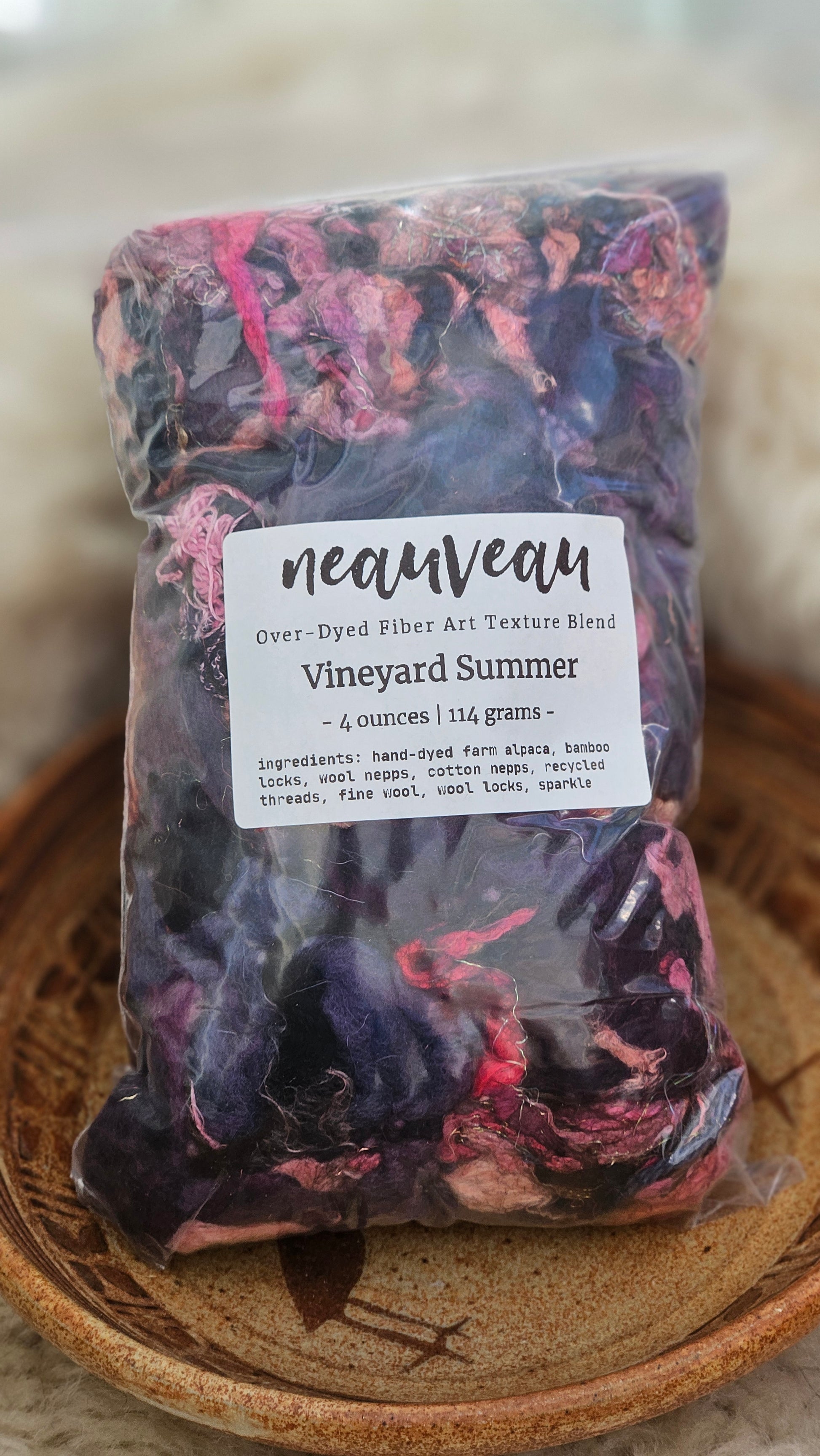 VINEYARD SUMMER - Hand-Dyed Alpaca Bamboo Texture Blend for art yarn embellishing, texture blending, felting, mixed media, and fiber art - 4 ounces | 114 grams