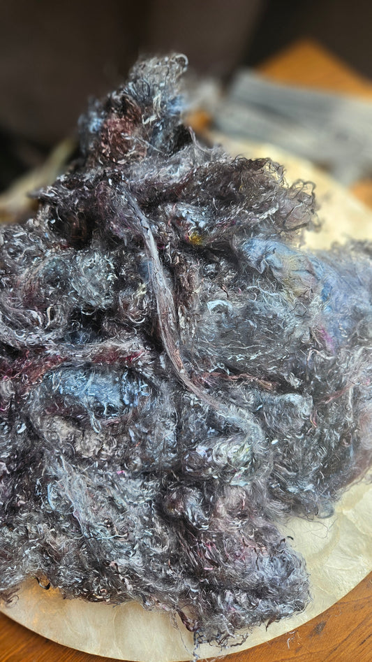BLACK OPAL - recycled wool limited edition hand-dyed fiber art texture for blending, felting, and papermaking - 2 oz | 57 g