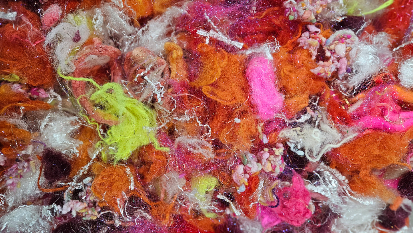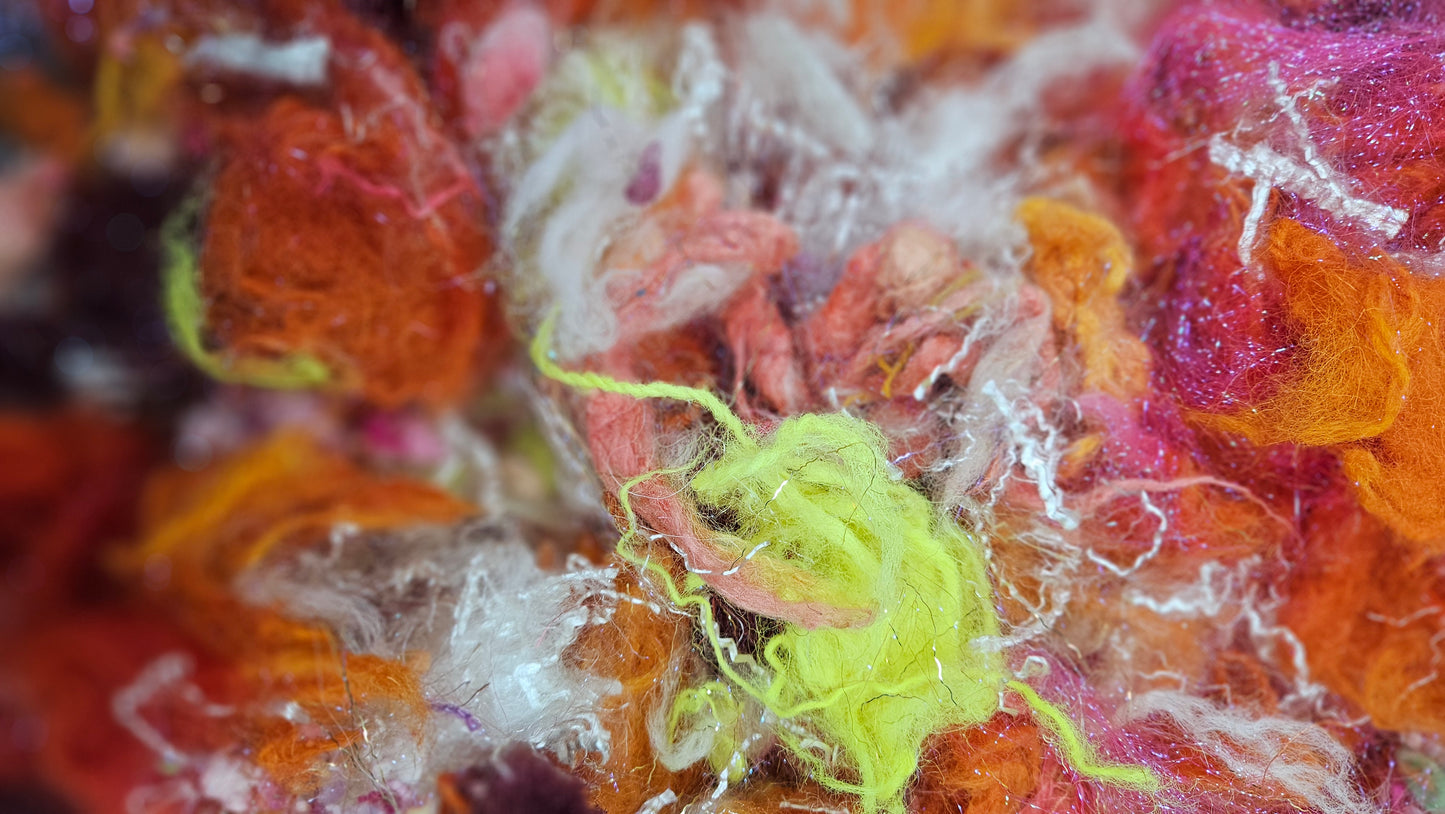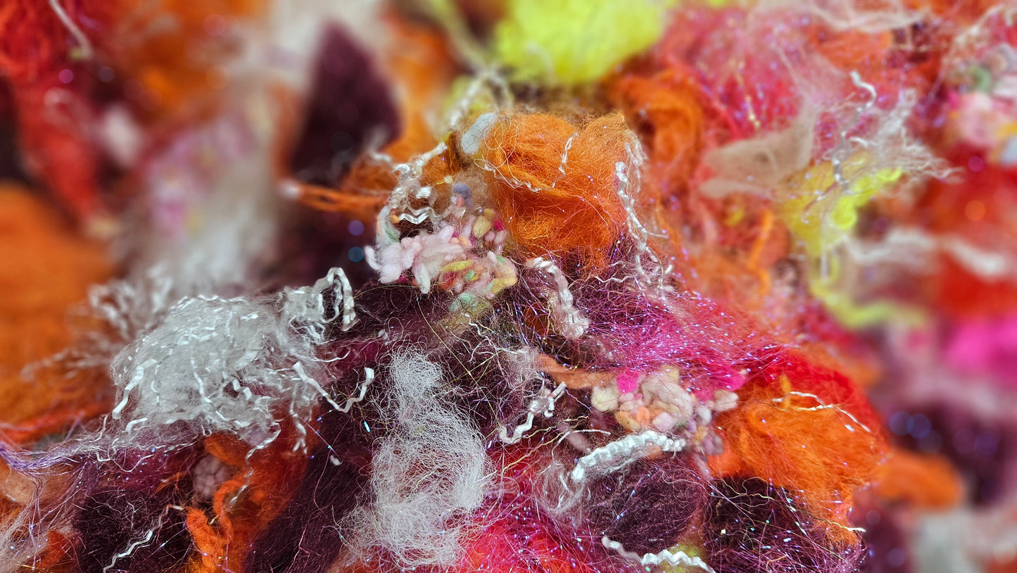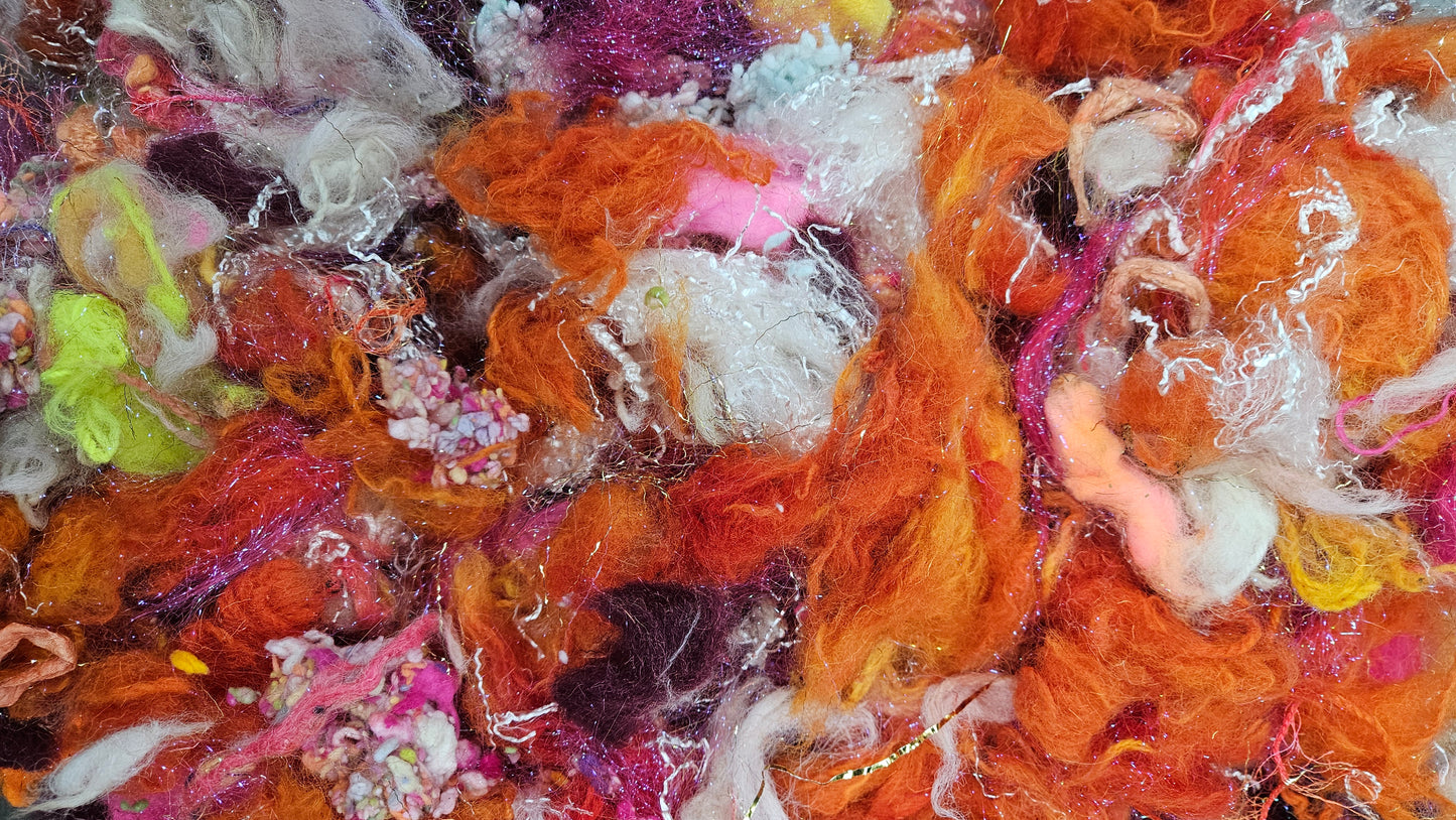 An extra chunky recycled & heritage wool based blend of fibers for blending art batts and rolags to spin into yarn for knitting, weaving, and crochet. One pinch goes a long way! Each bag is subtly different due to the size of the texture and nuance in the dyed bits.