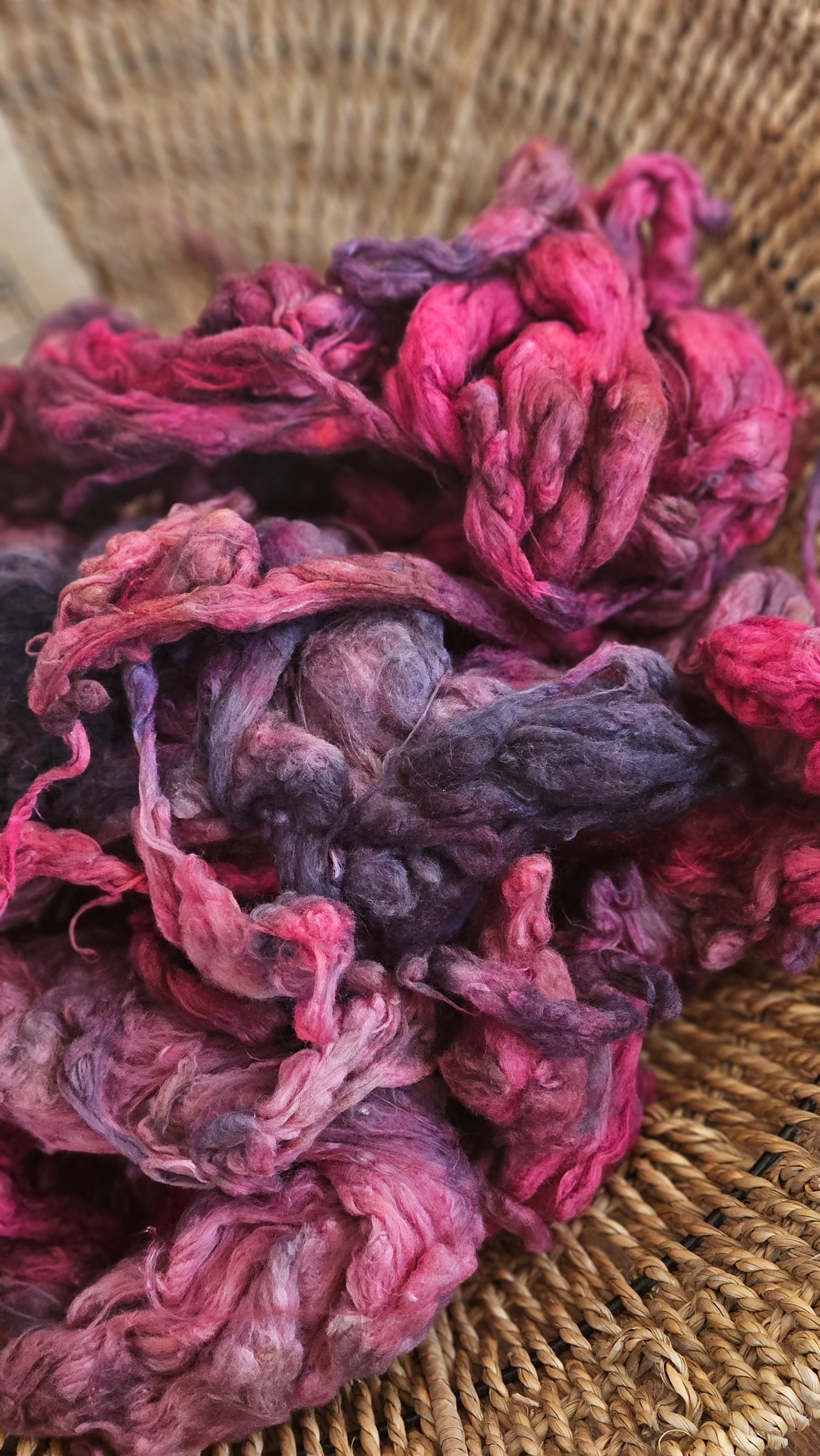 BASTET Hand-Dyed Organic Extra Fine Cotton Noil for fiber art, texture blending, and papermaking - 1 ounce | 28 grams