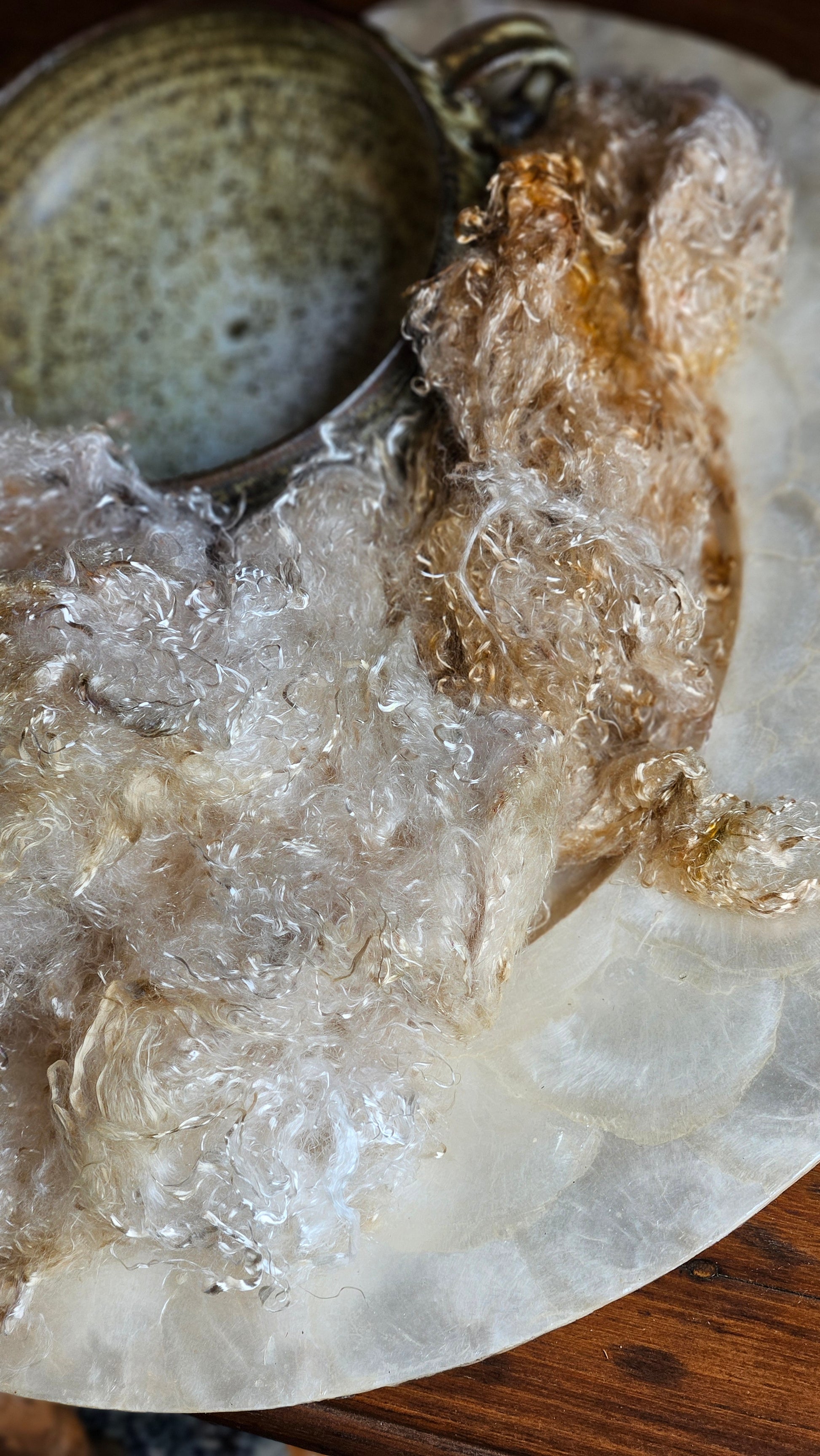 Neauveau hand-dyed eucalyptus crimp fauxsilk fiber adds shine and silky texture to everything from art yarn spinning to papermaking, felting, and mixed media fiber art. Dyed in small batches using signature painterly techniques. Expect subtle tonal variation and texture - no two bags are exactly alike, and that's part of the magic. Colorways in this collection are inspired by shimmering gemstones and subtle metallic tones, perfect for adding depth and elegance to your palette.