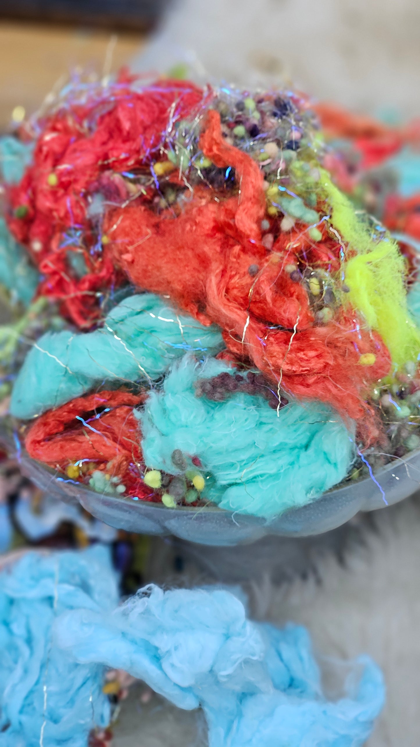 - Custom wool nepps blend with gold angelina sparkle crimp