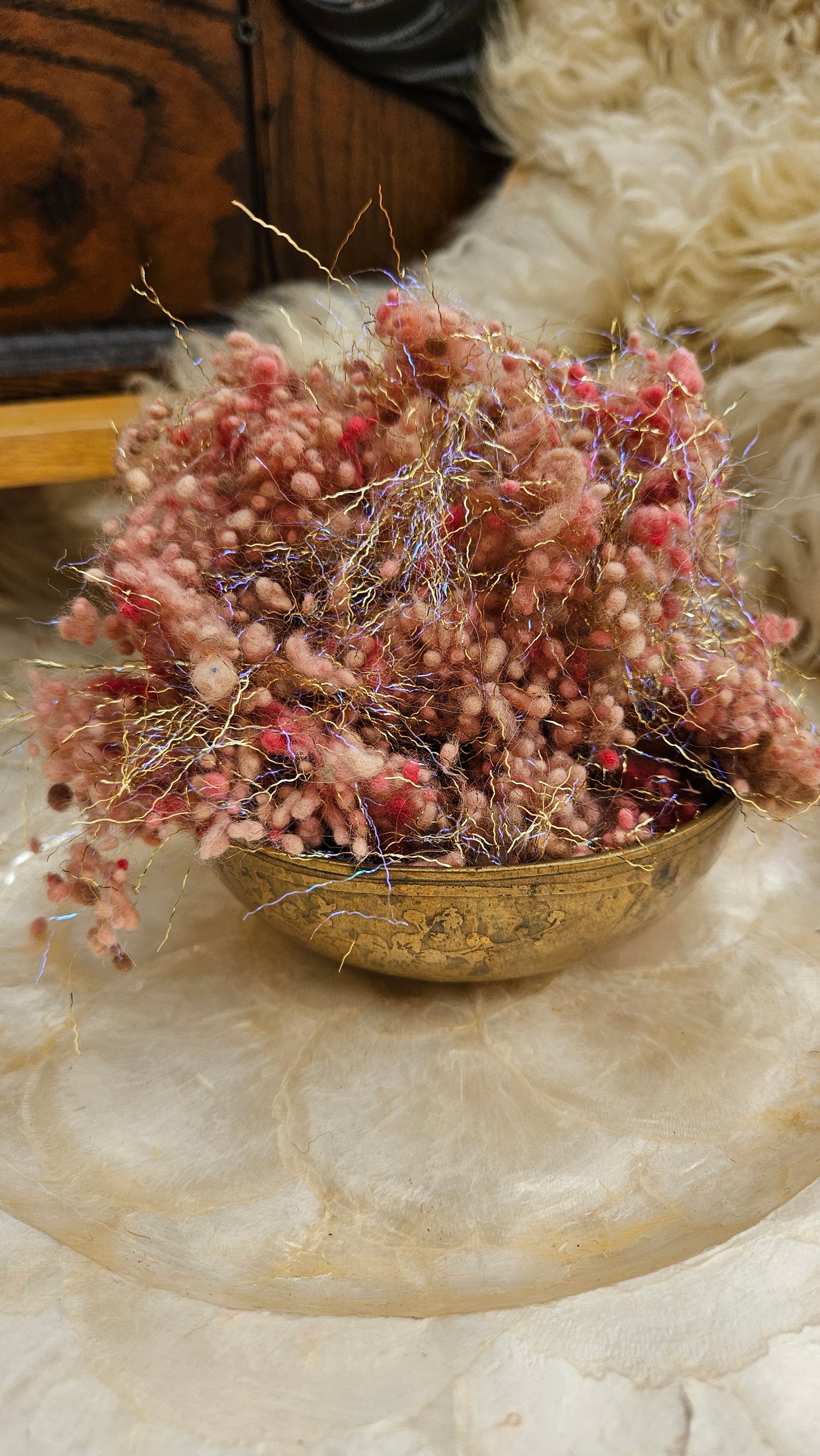 Hand-dyed wool nepps are the confetti of creativity that bring your fiber art to life. Each tiny ball of wool carries color, character, and whimsy - perfect for spinners, felters, weavers, and mixed-media makers. Add pops of texture, speckles of color, and painterly dimension to your spinning, felting, papermaking, and mixed media projects with fine wool nepps.