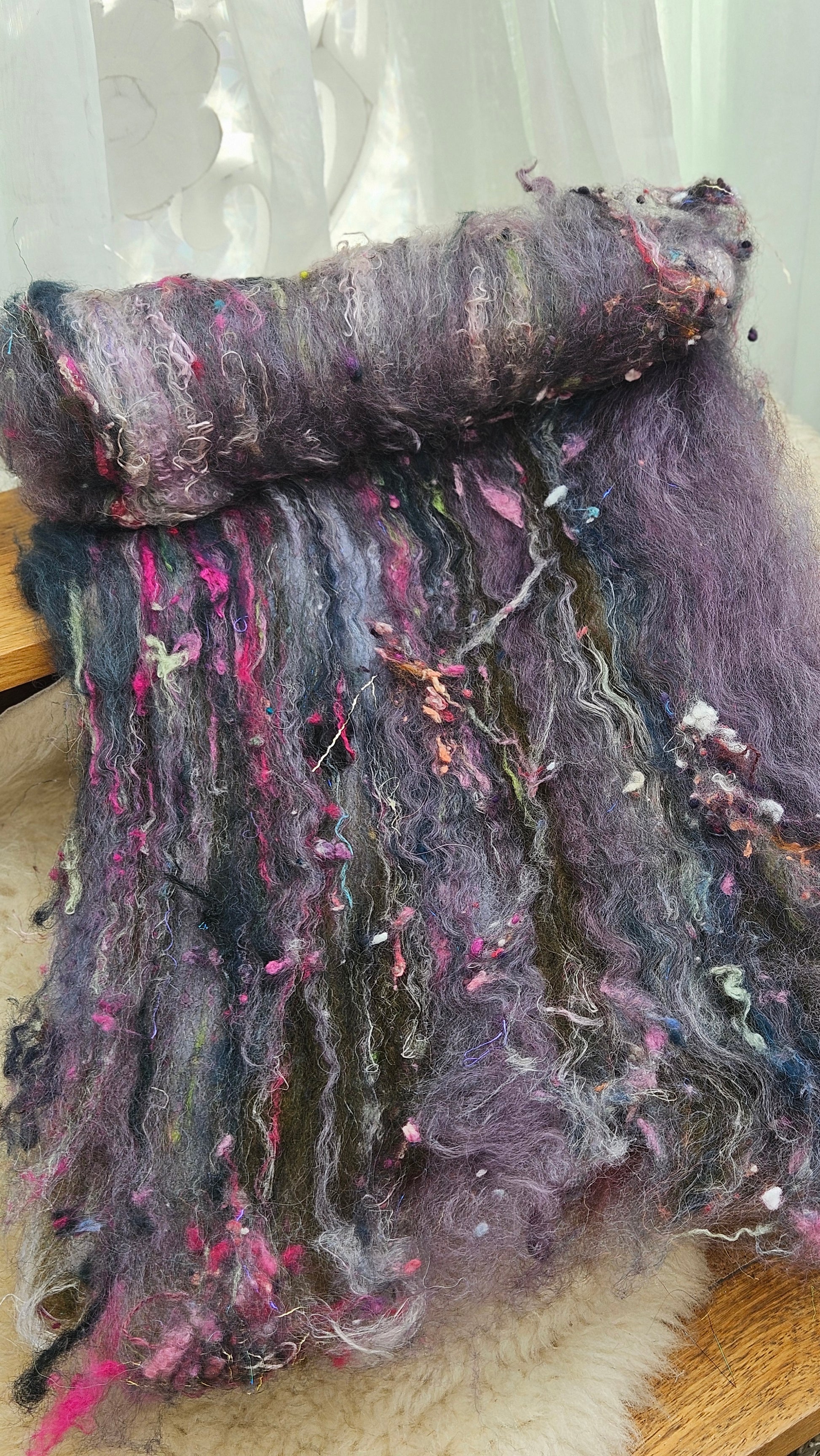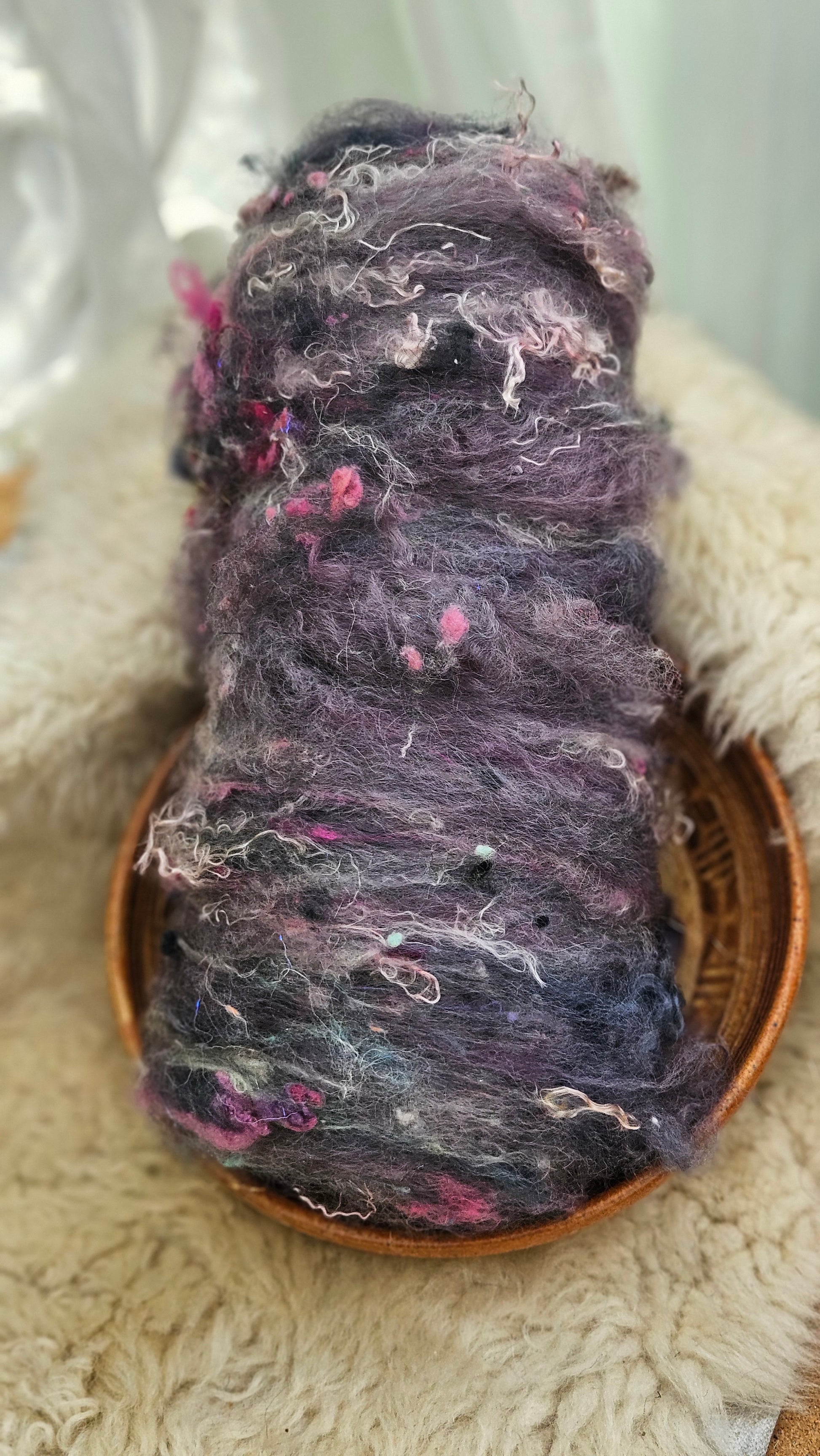 Some trace lanolin may be present in some batts due to the nature of the fine wool used in the base. Ideal for spinning art yarn especially and including corespinning.