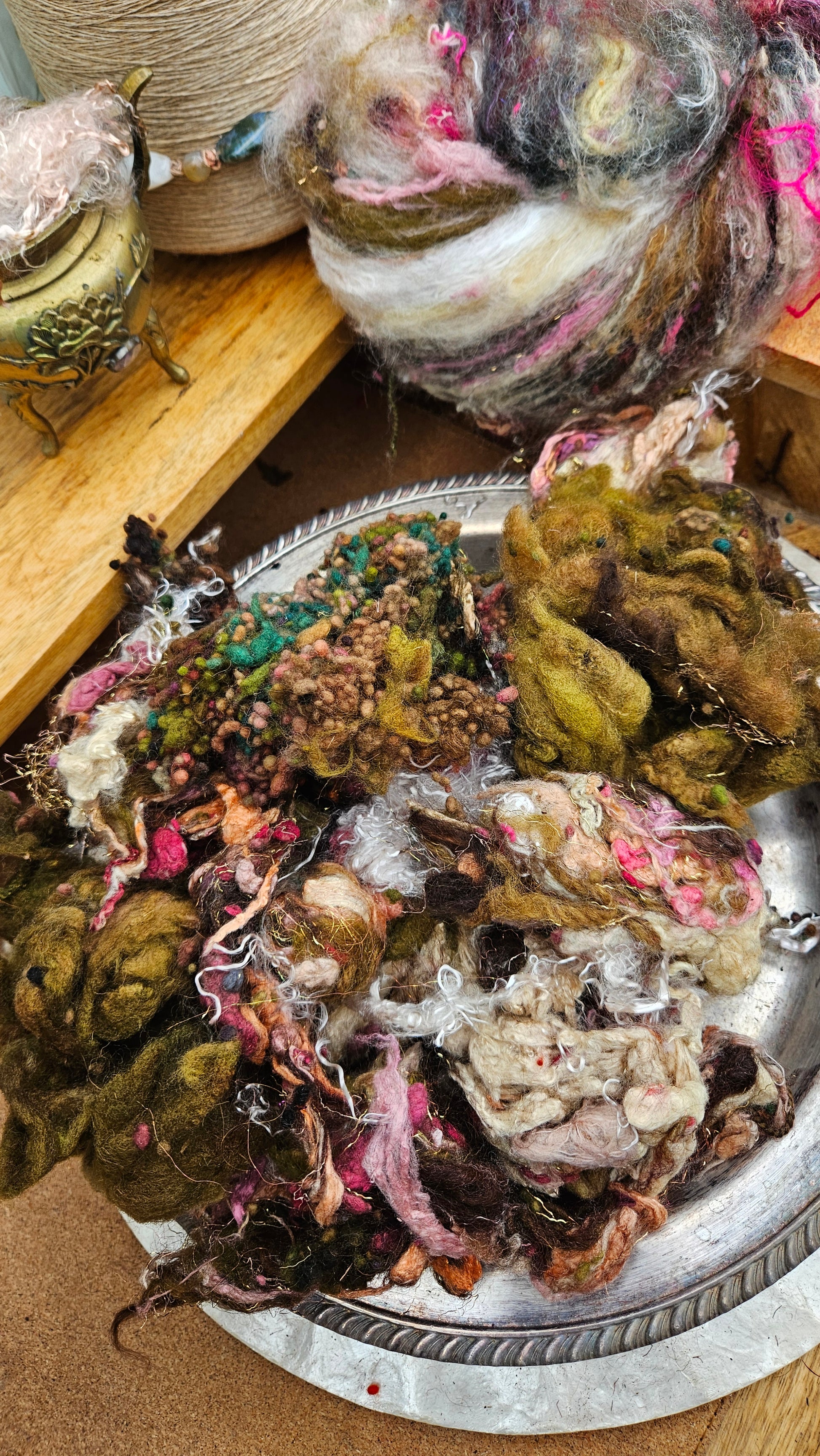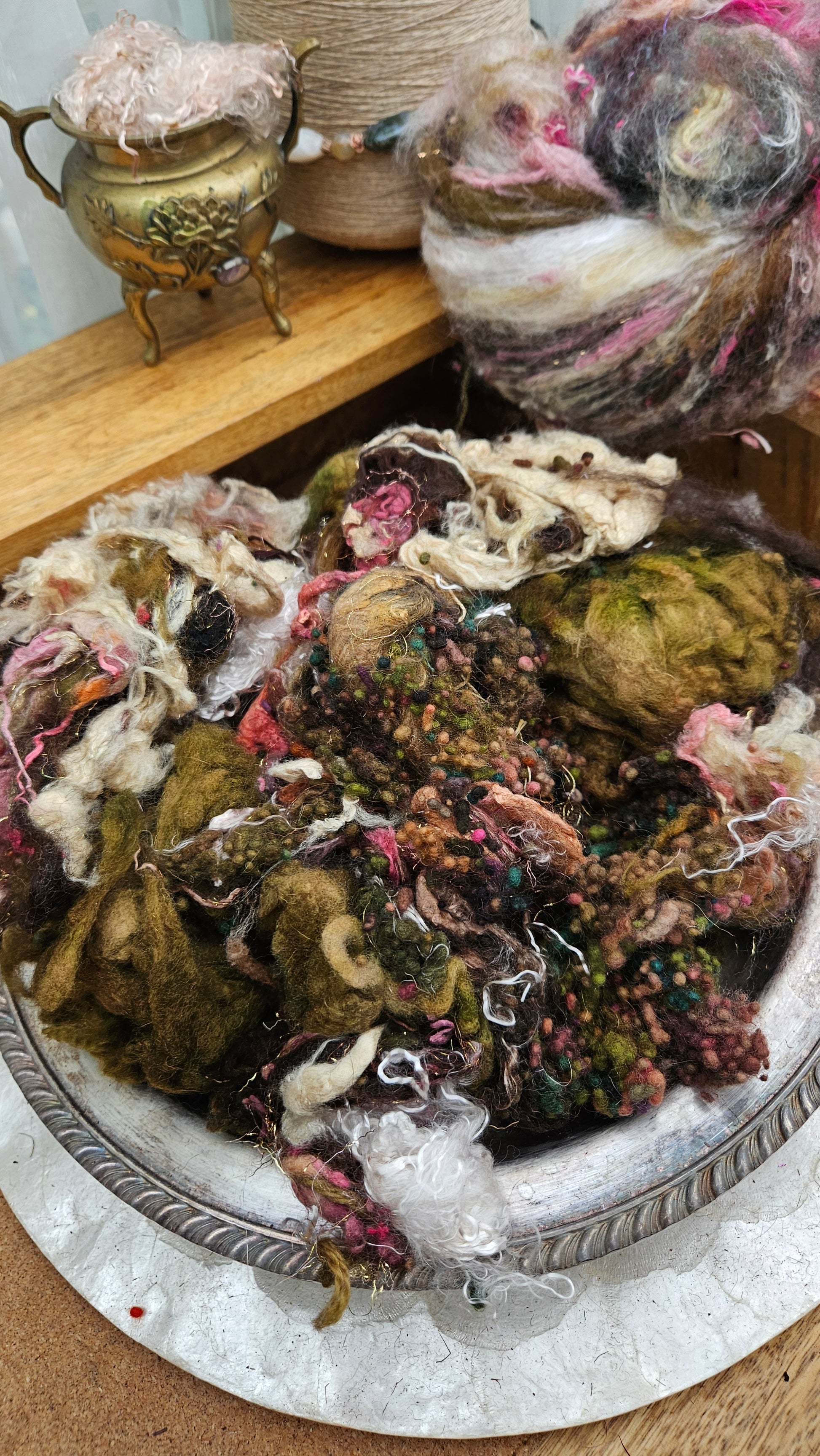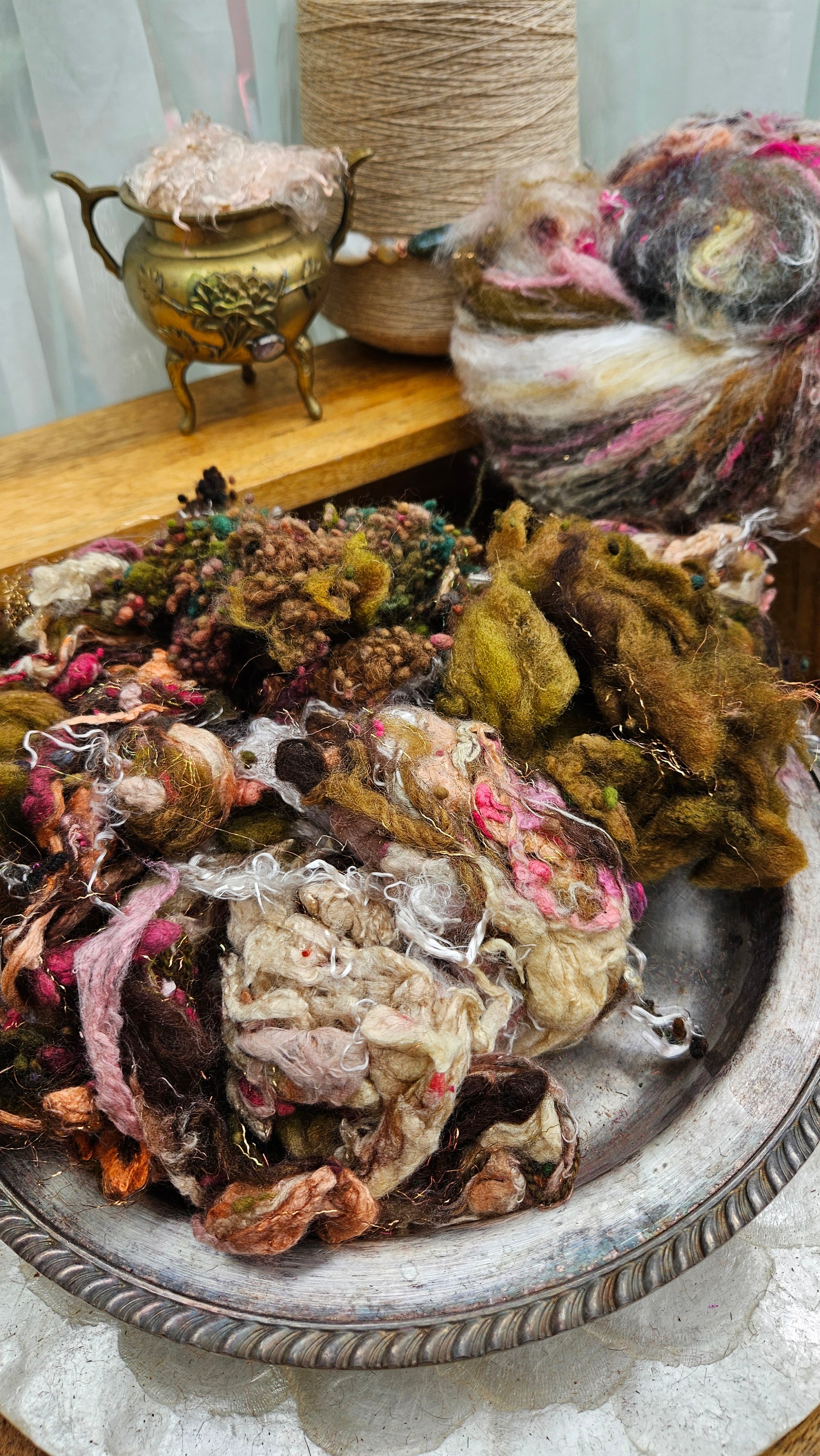 Every blend is hand-crafted in small batches. Whether you spin fine singles, textured art yarns, or add it into felting and mixed-media projects, this blend invites endless experimentation and delight.