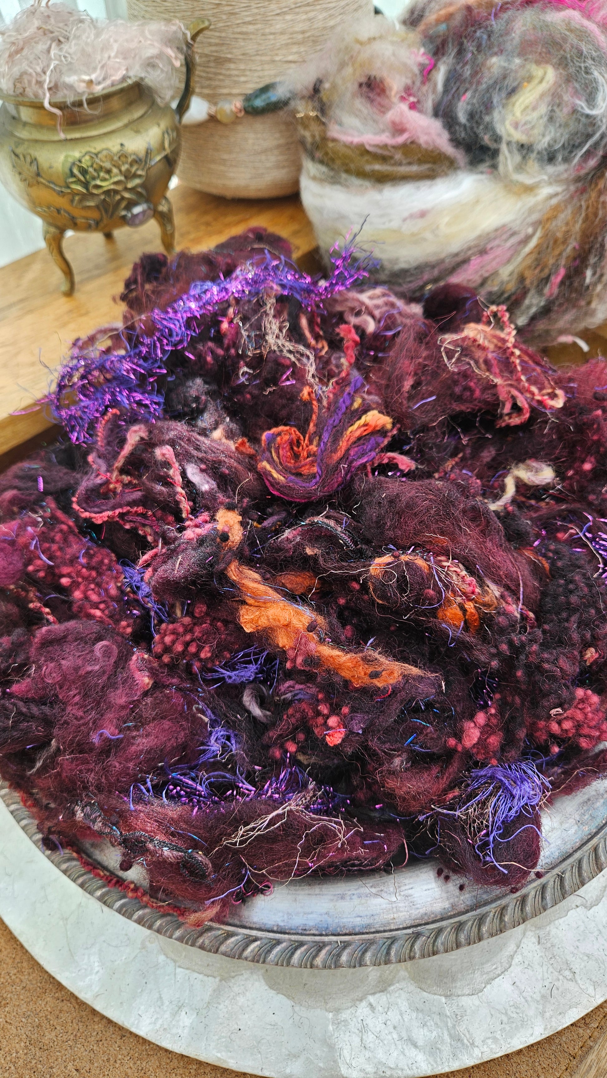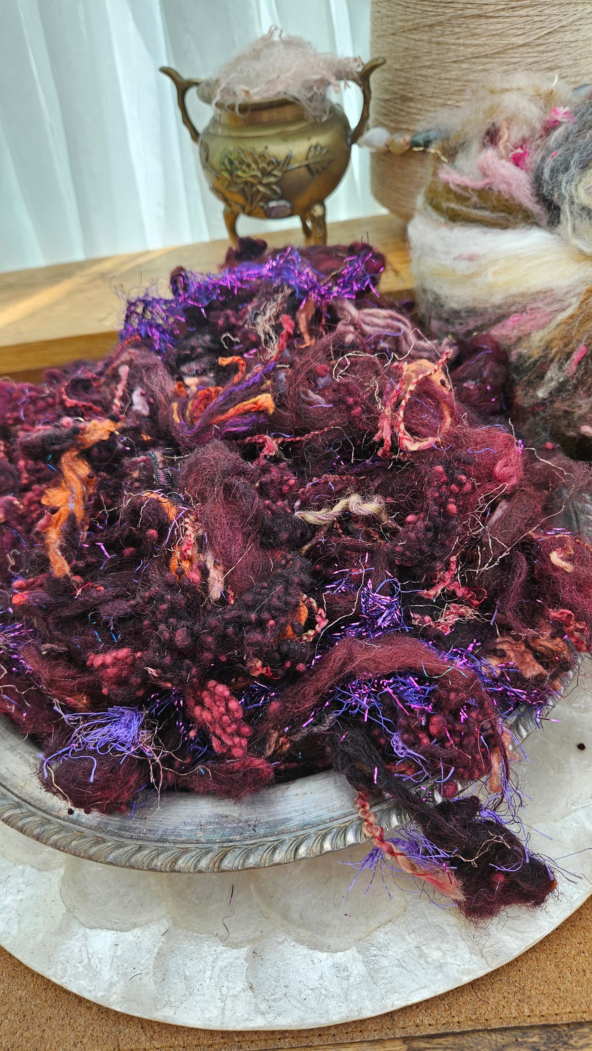 Every blend is hand-crafted in small batches. Whether you spin fine singles, textured art yarns, or add it into felting and mixed-media projects, this blend invites endless experimentation and delight.