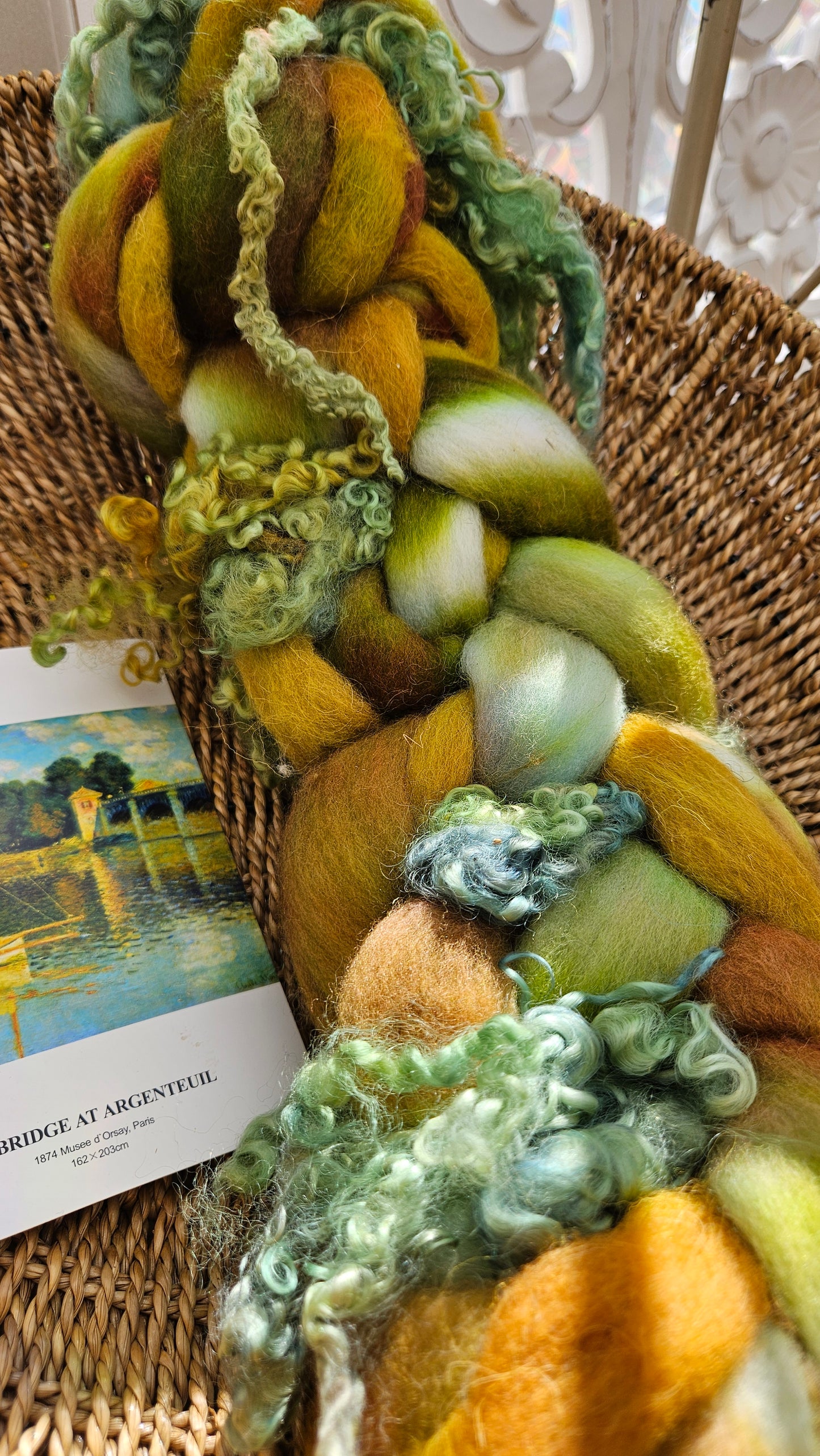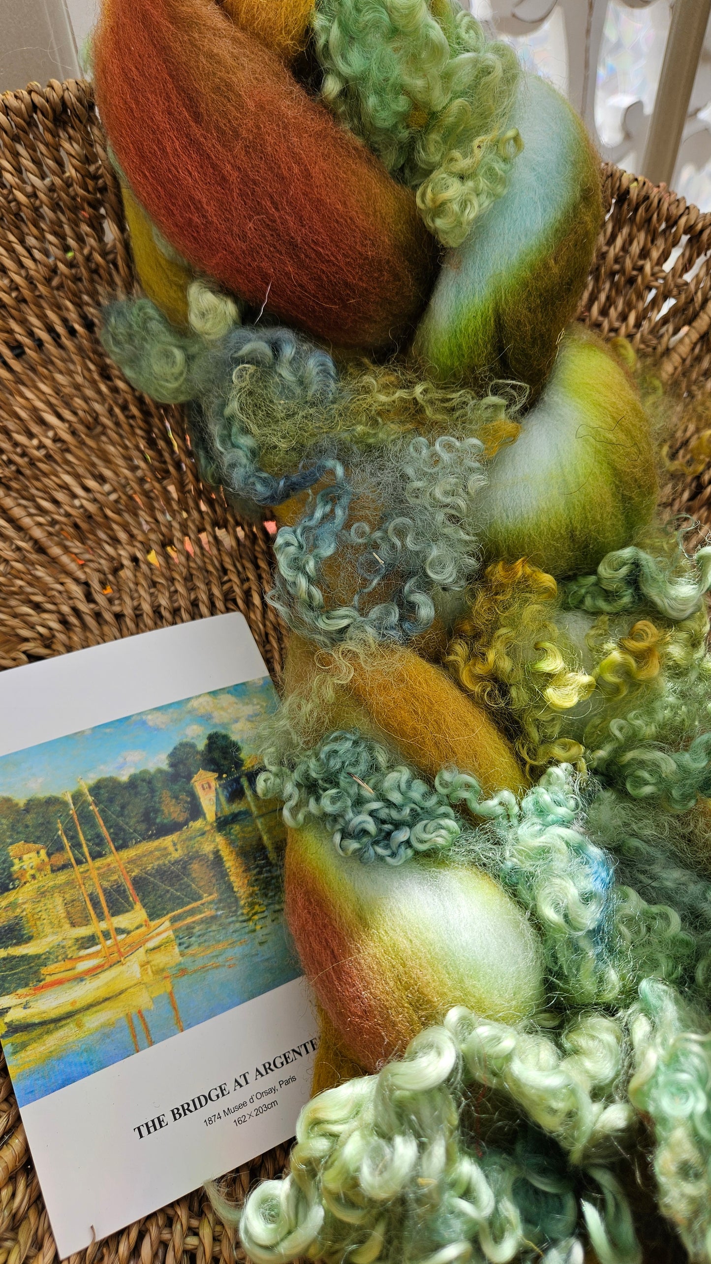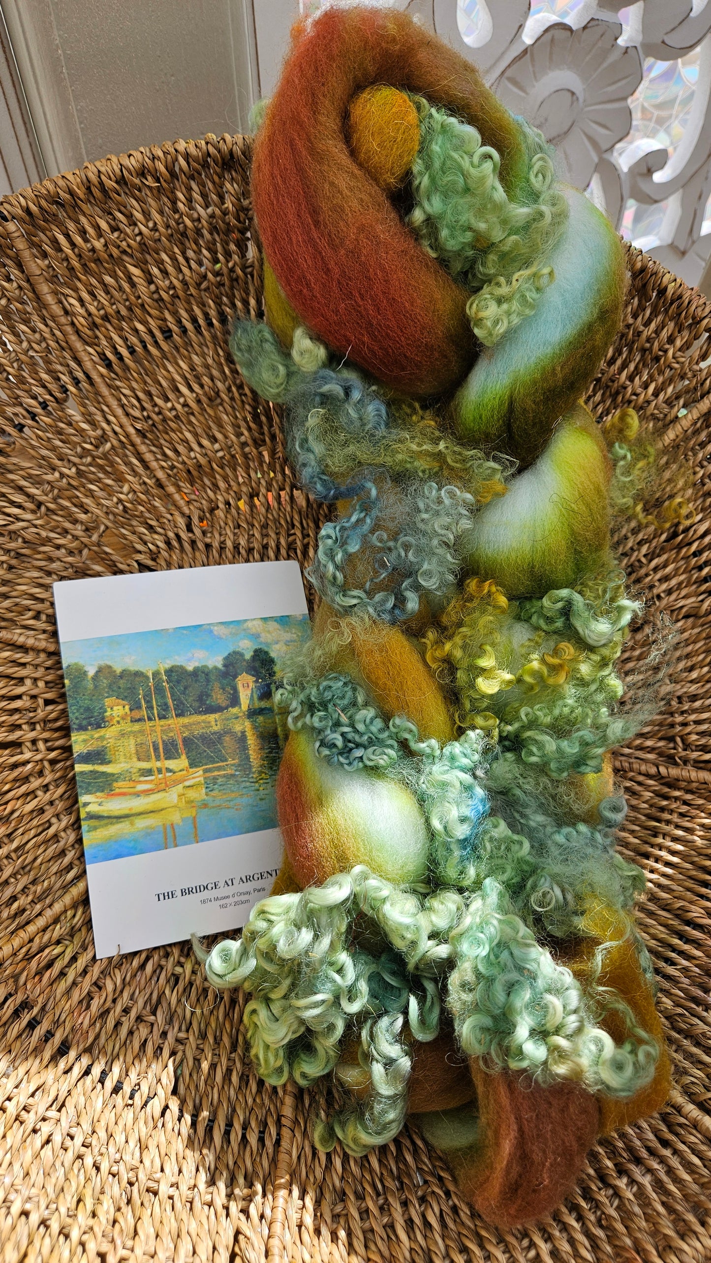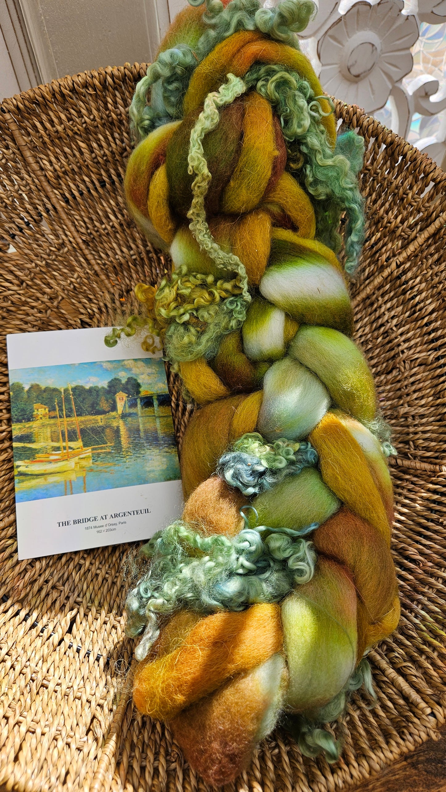 ART ROVING - hand-dyed Polwarth Churro BFL - Monet Bridge at Argenteuil Collection 110 - 4.5 oz