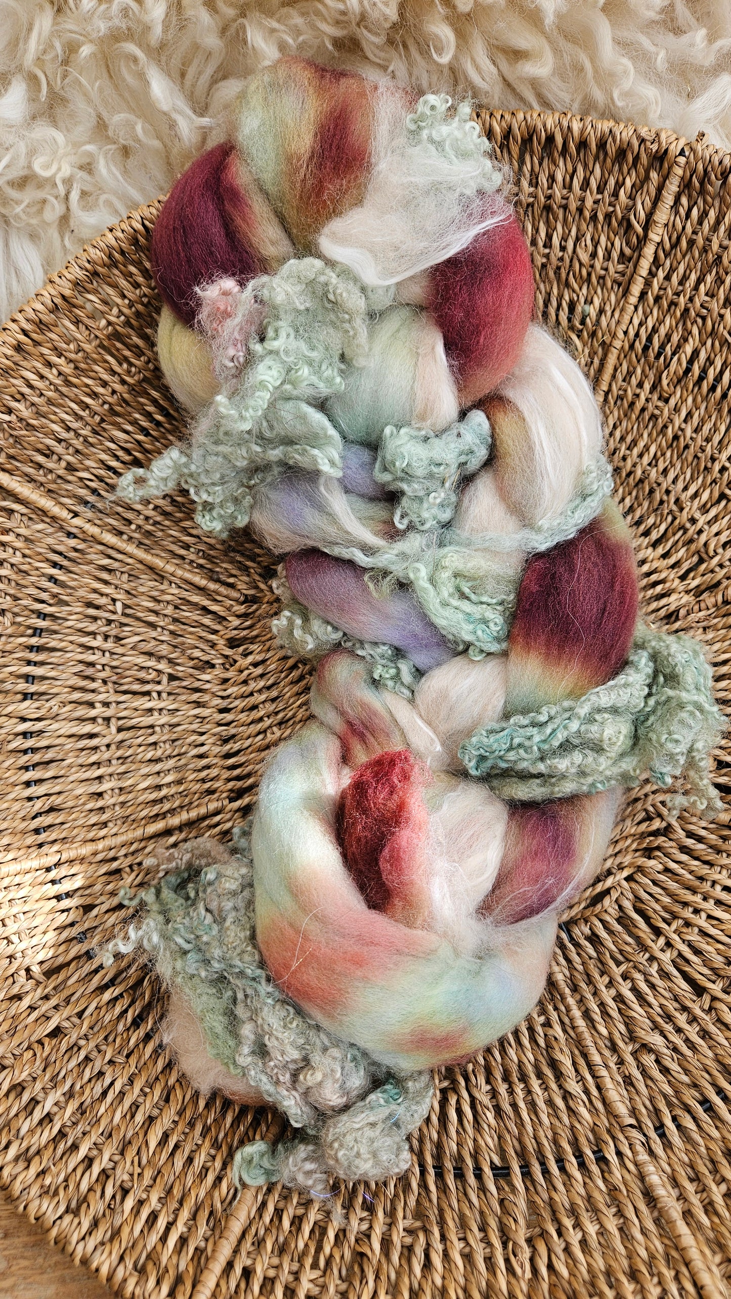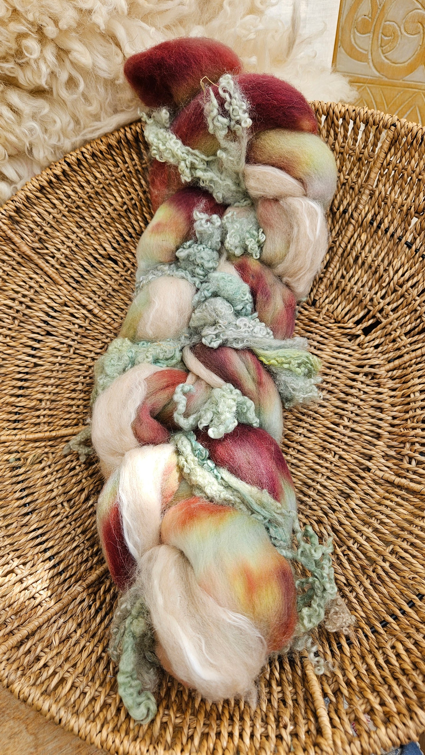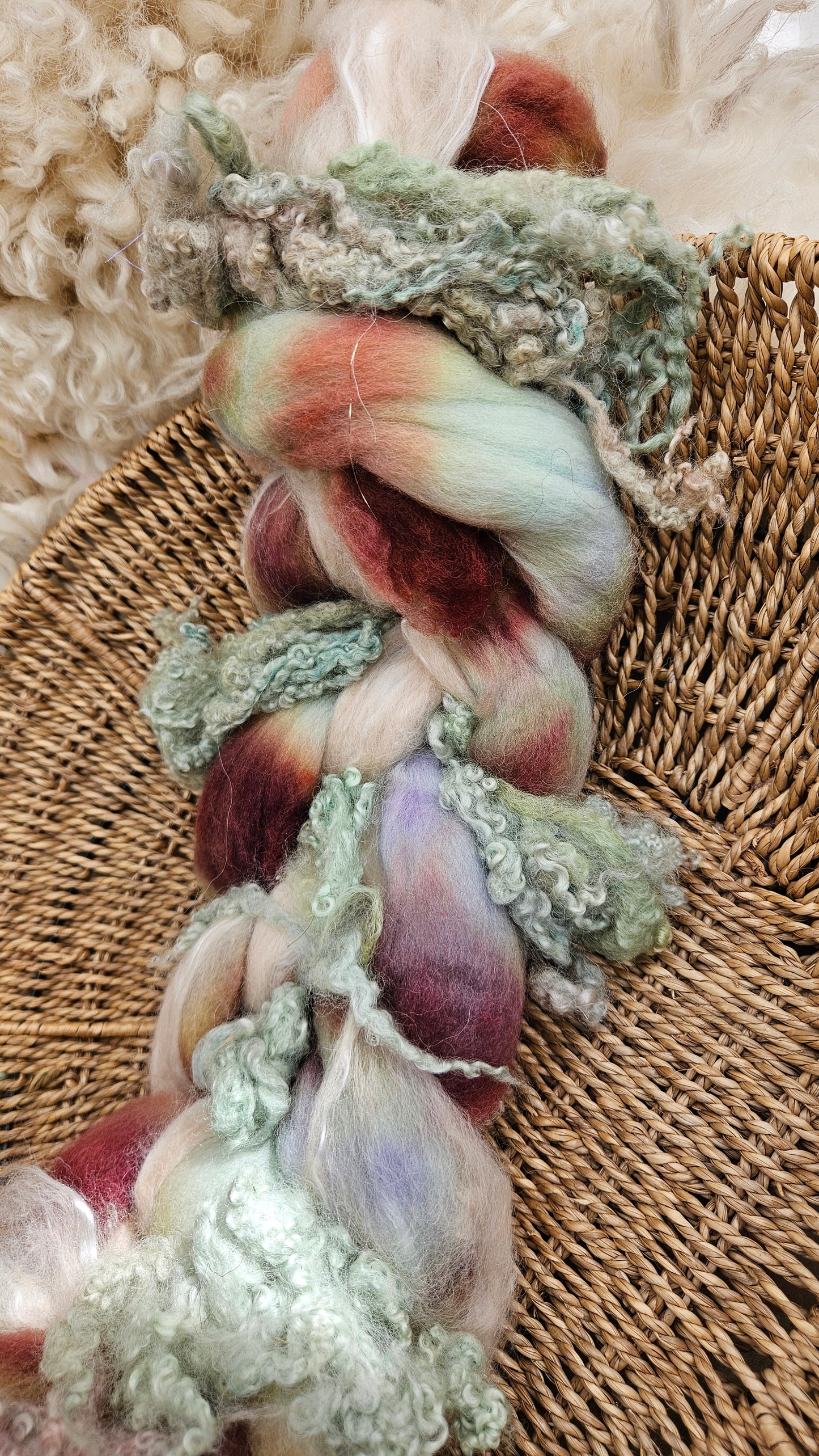 Inspired by the impressionist paintings of Monet using his timeless fine art colorway pallete. Each wool roving braid includes multiple breeds and textures of high quality fiber for blending and carding into art batts or spinning into yarn directly from the braid.