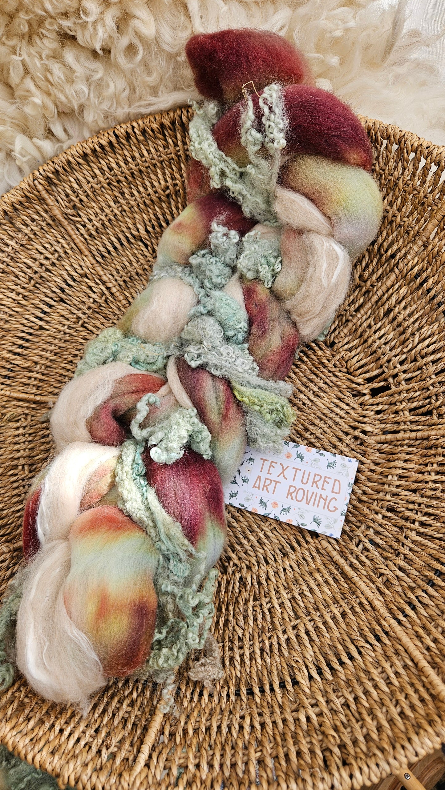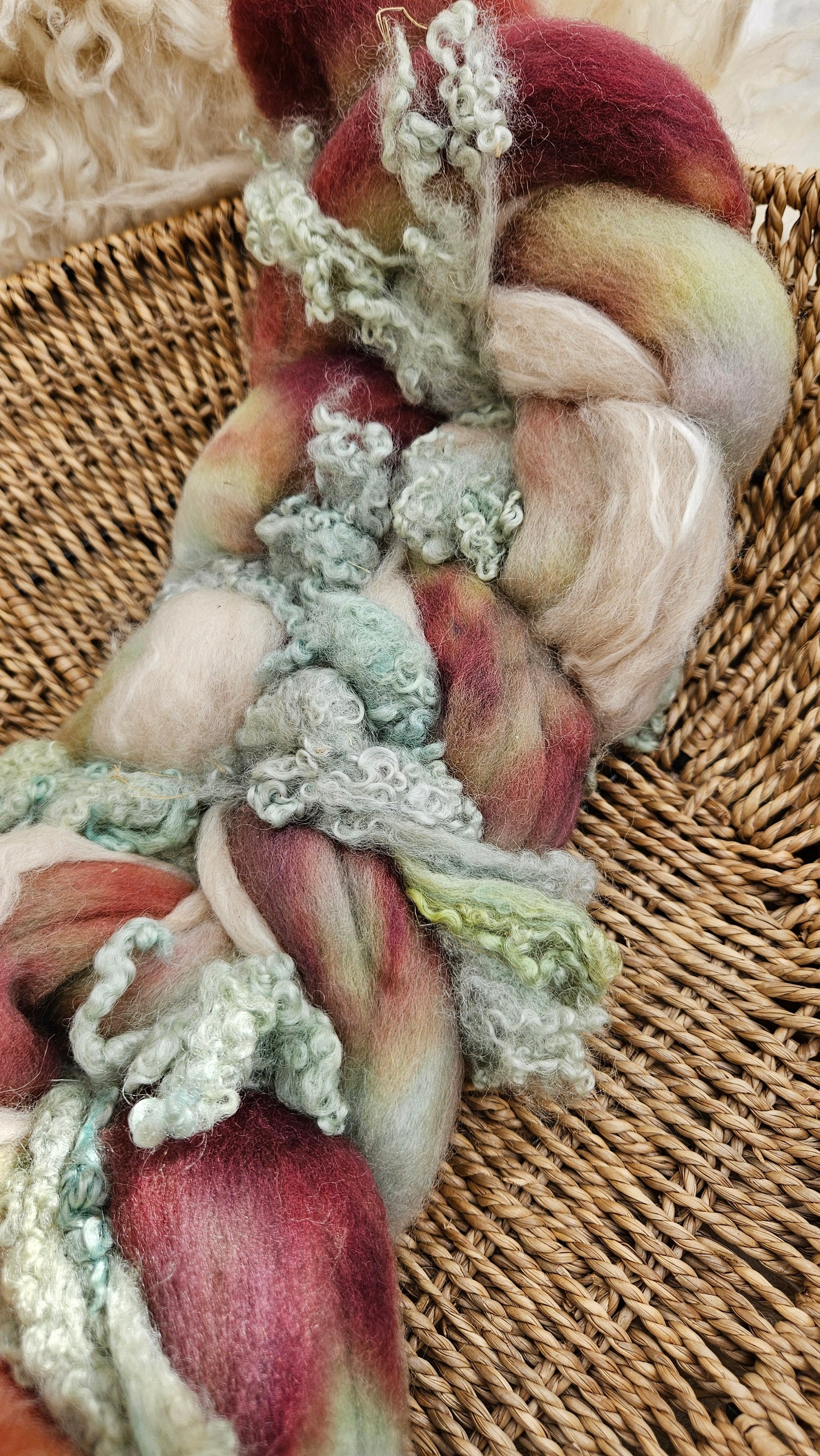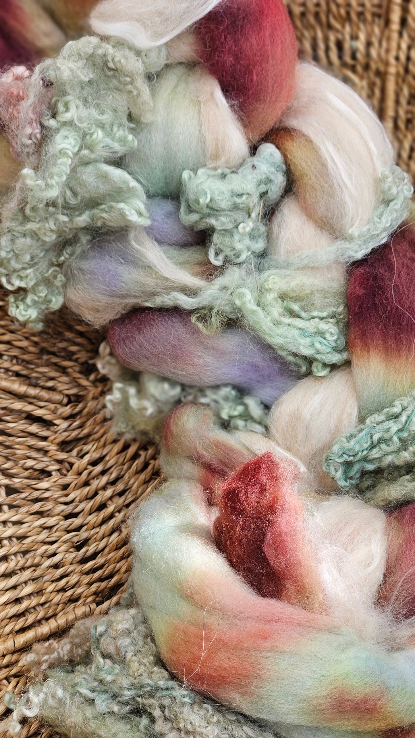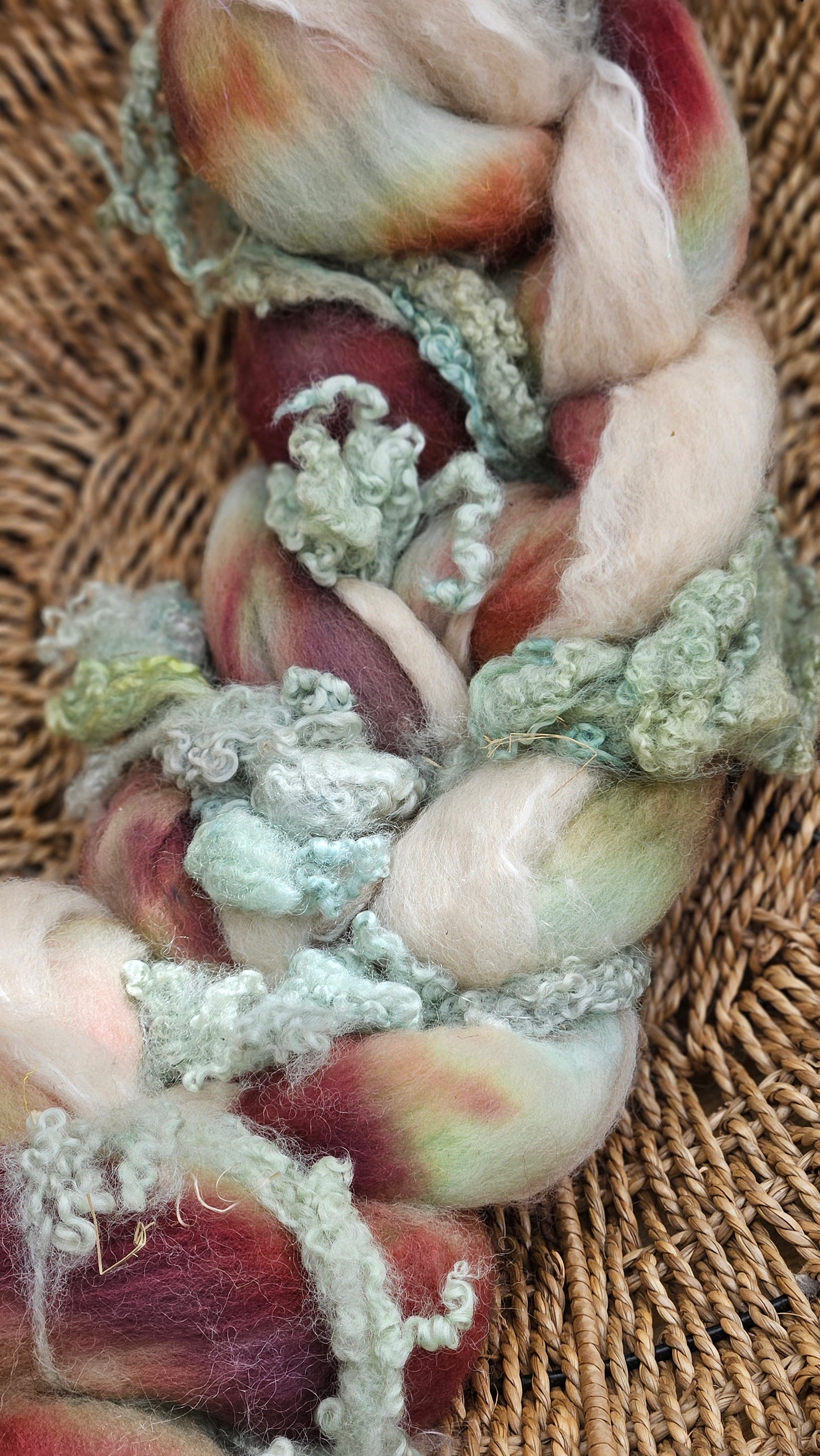 Inspired by the impressionist paintings of Monet using his timeless fine art colorway pallete. Each wool roving braid includes multiple breeds and textures of high quality fiber for blending and carding into art batts or spinning into yarn directly from the braid.
