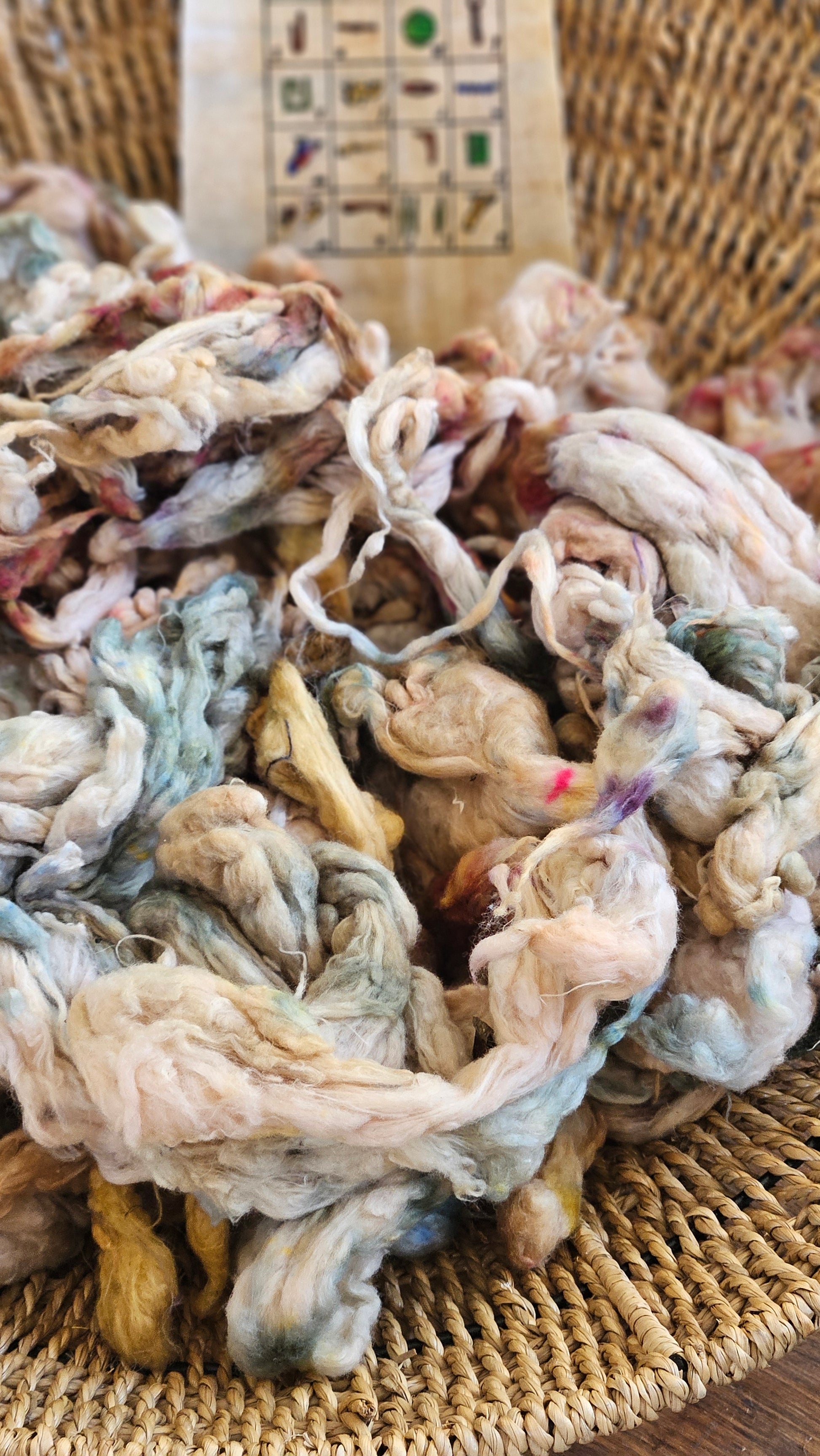 NEFERTARI Hand-Dyed Organic Extra Fine Cotton Noil for fiber art, texture blending, and papermaking - 1 ounce | 28 grams