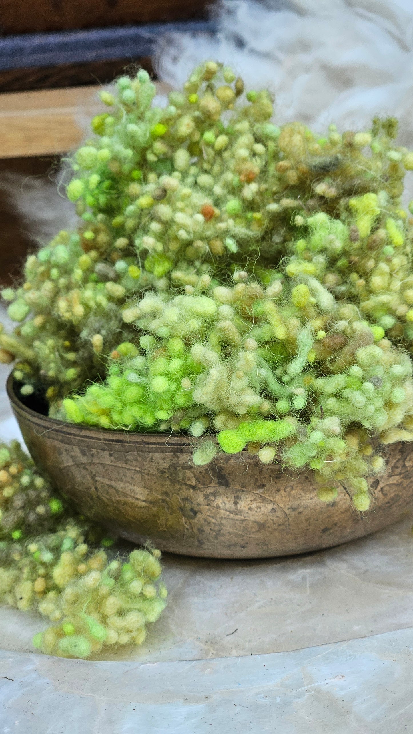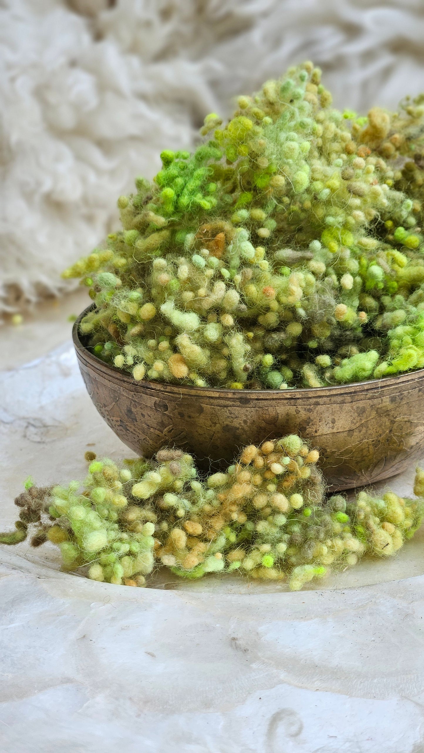 Hand-dyed wool nepps are the confetti of creativity that bring your fiber art to life. Each tiny ball of wool carries color, character, and whimsy - perfect for spinners, felters, weavers, and mixed-media makers. Add pops of texture, speckles of color, and painterly dimension to your spinning, felting, papermaking, and mixed media projects with fine wool nepps.