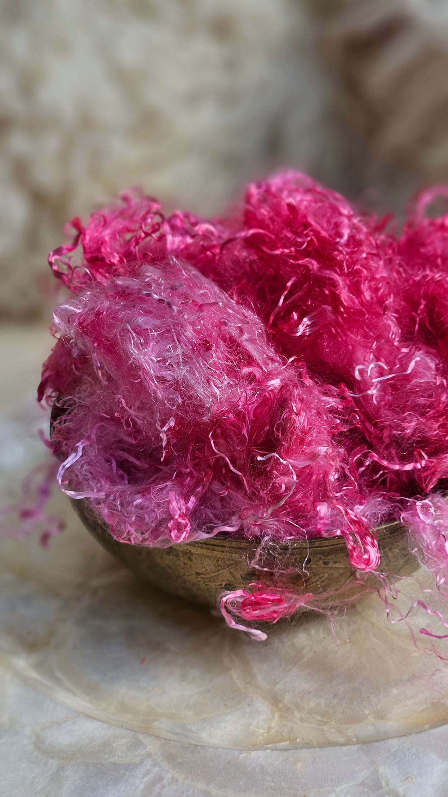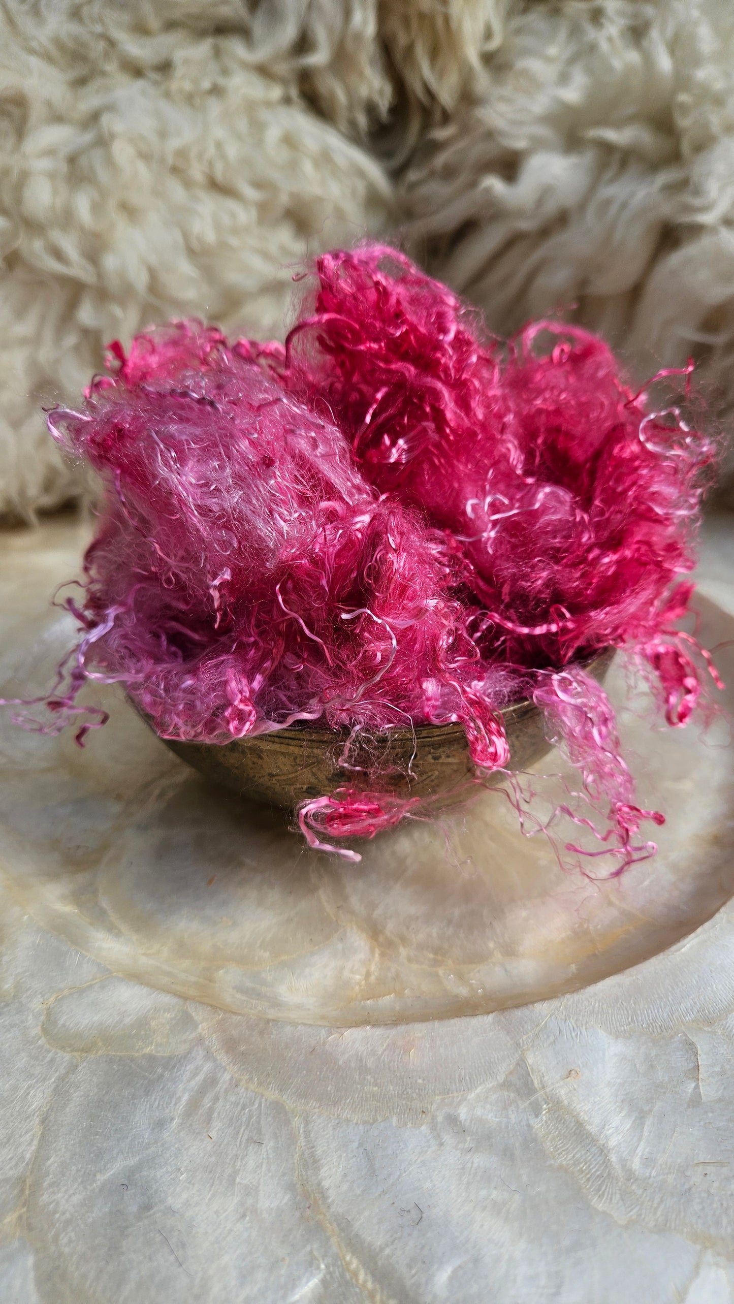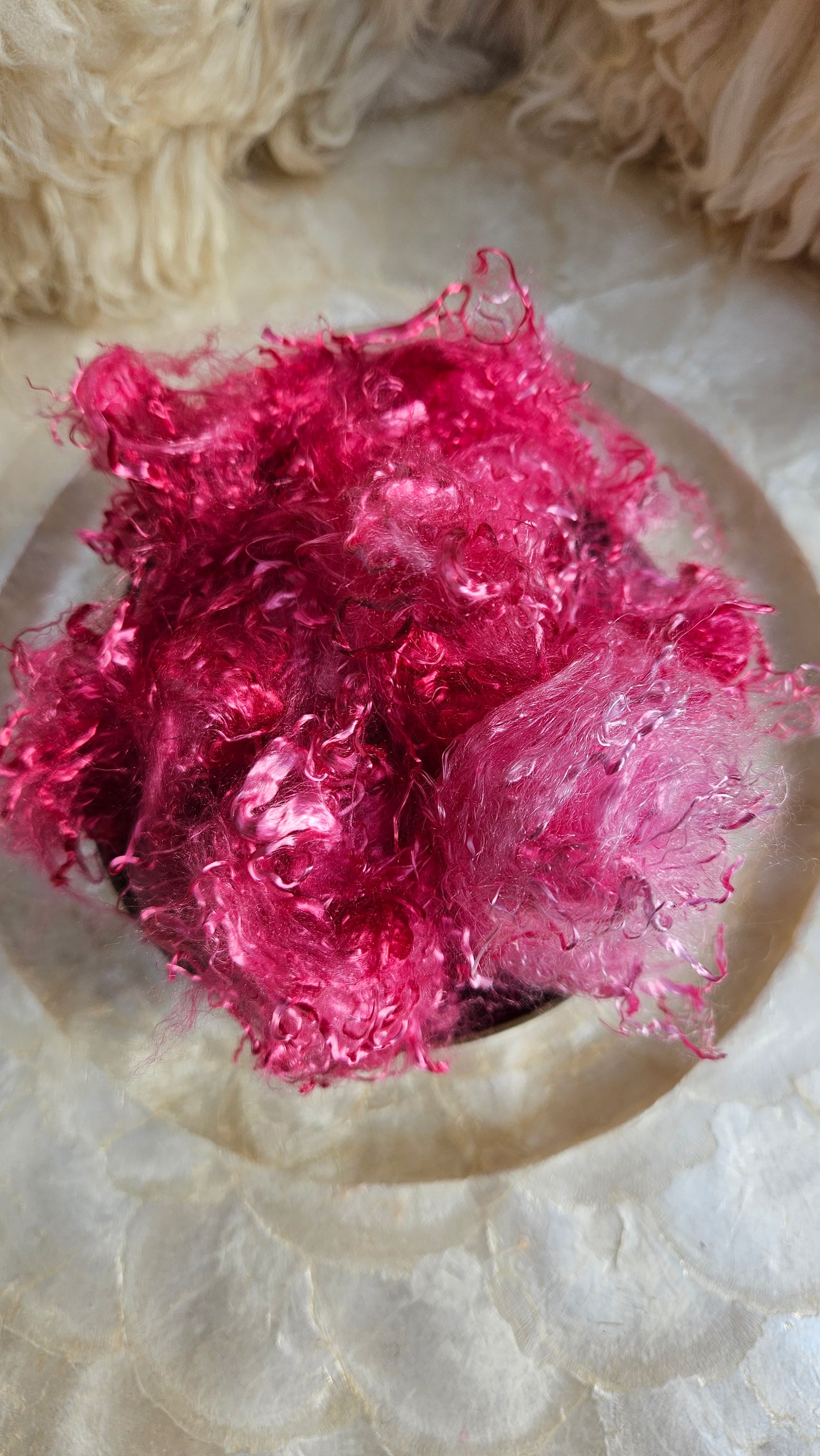 RHODOLITE - hand-dyed eucalyptus crimp faux-silk for art yarn embellishing, fiber blending, felting, and papermaking - 2 oz | 57 g