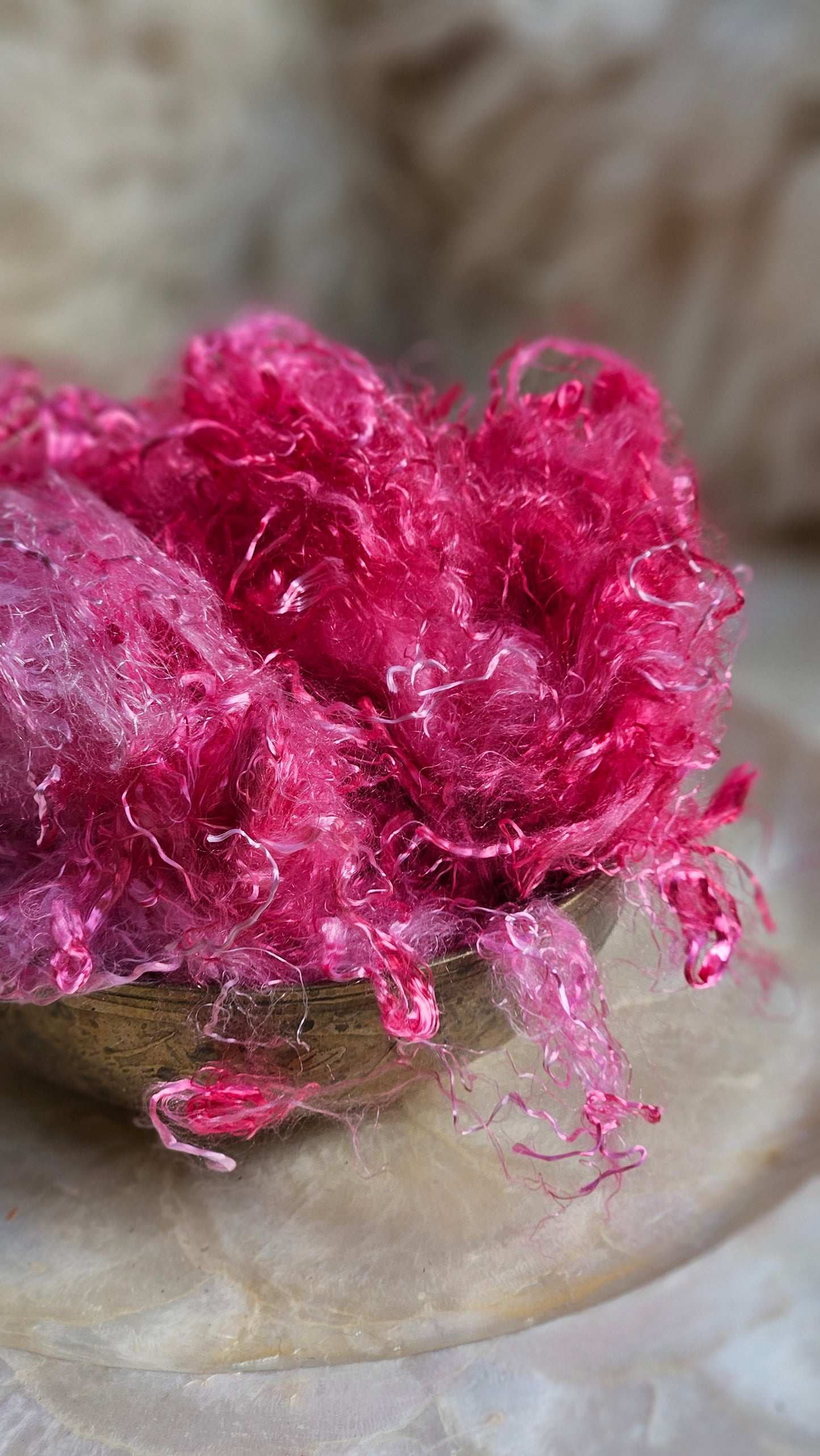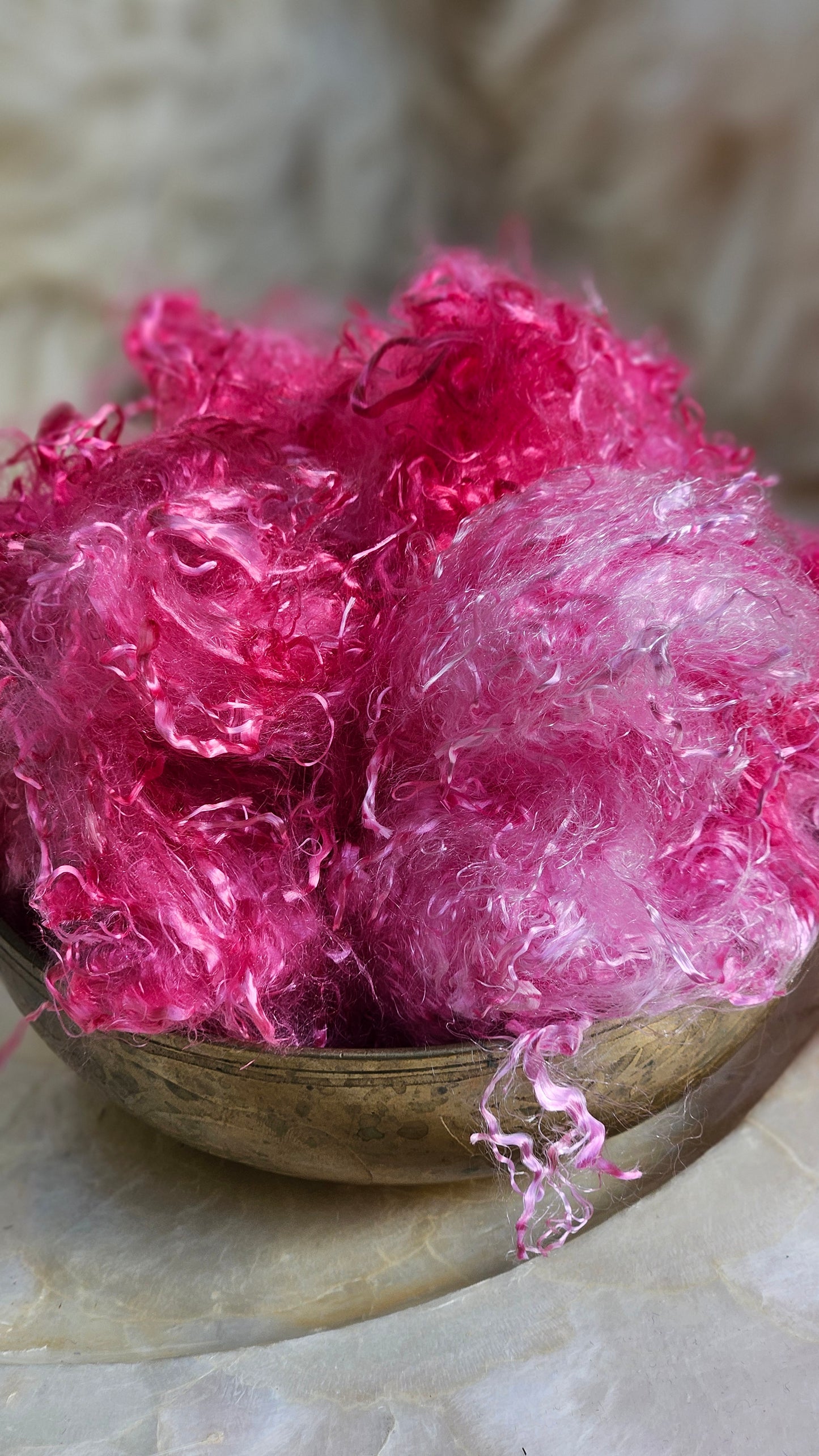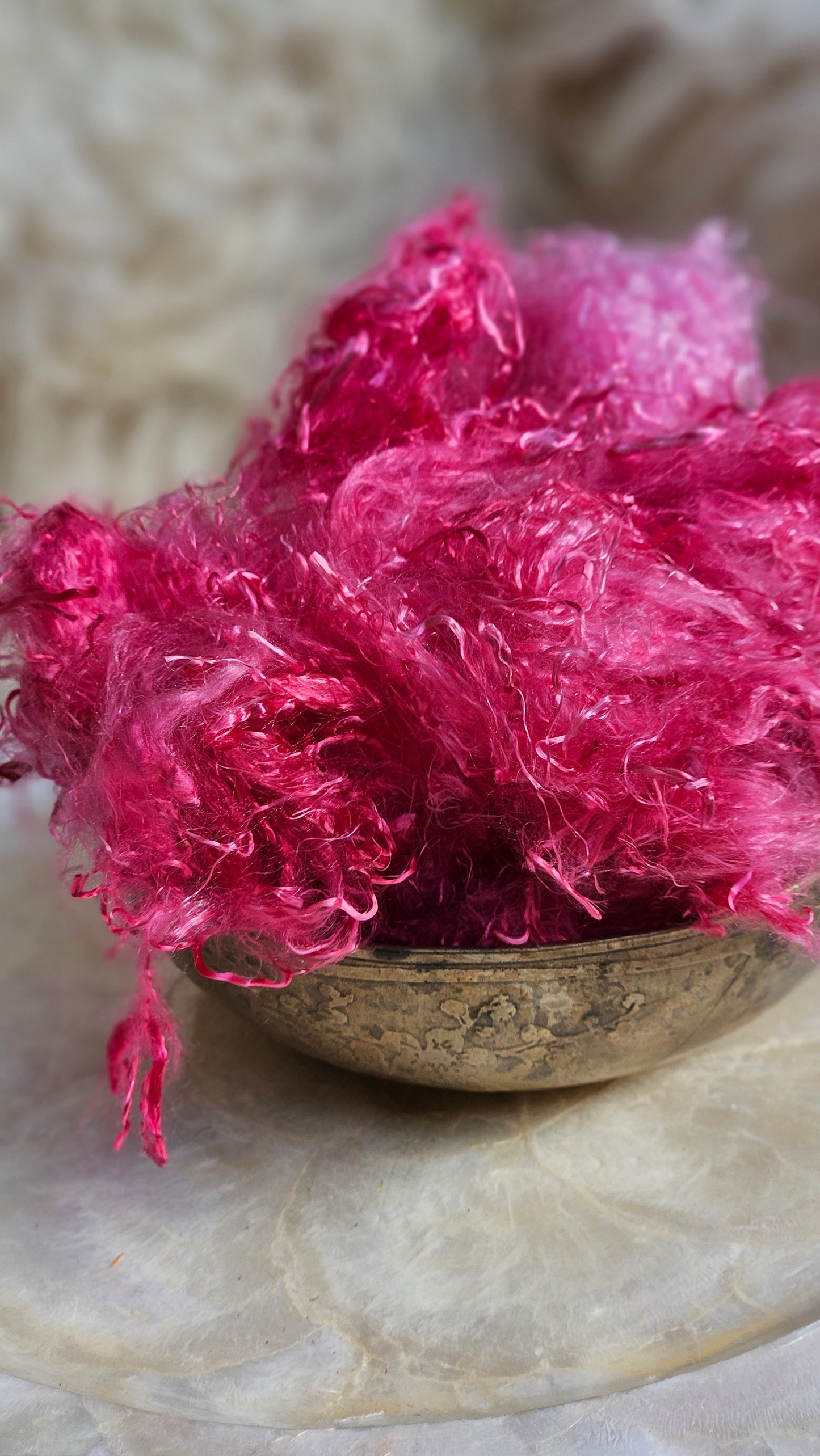 RHODOLITE - hand-dyed eucalyptus crimp faux-silk for art yarn embellishing, fiber blending, felting, and papermaking - 2 oz | 57 g