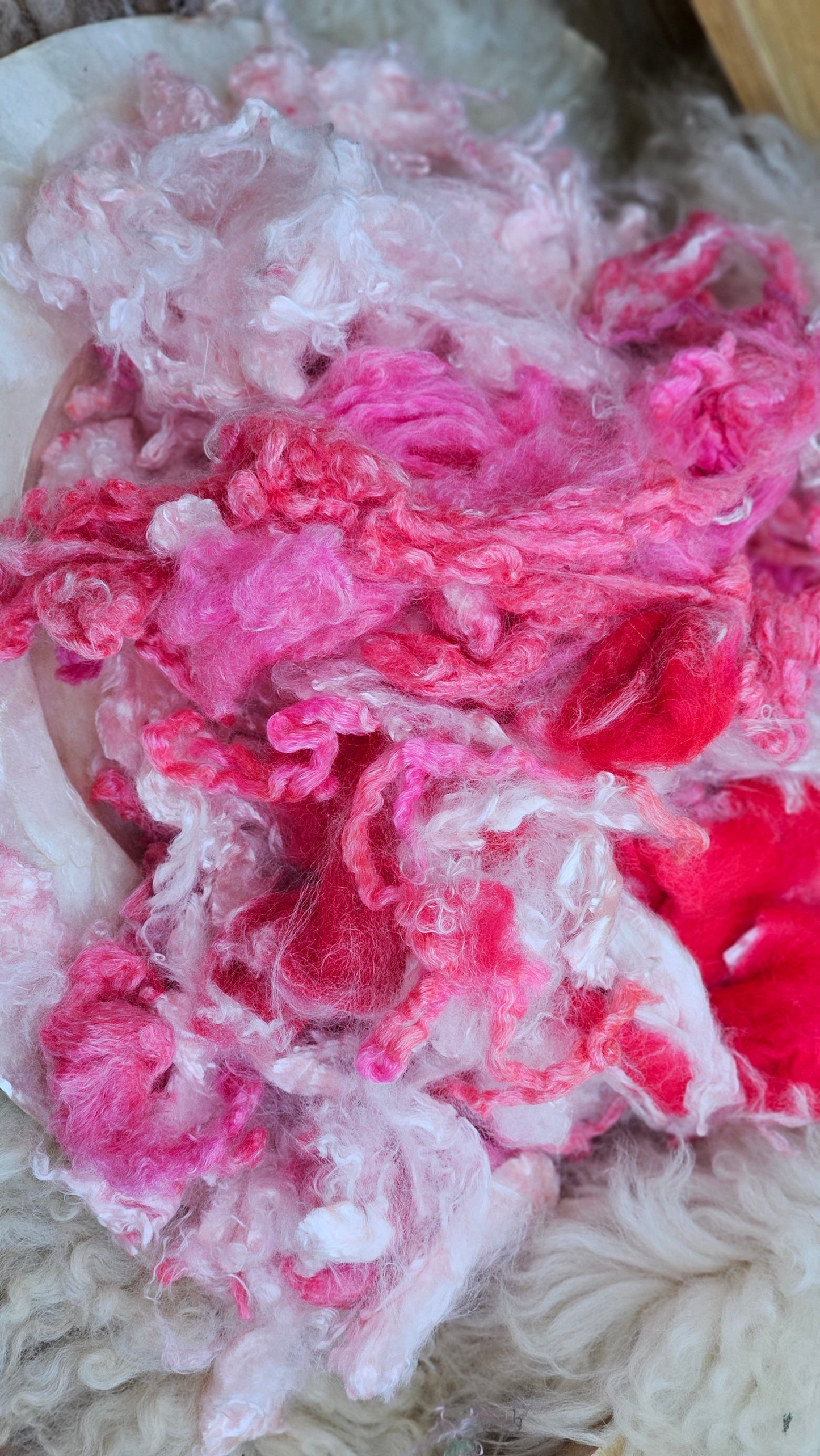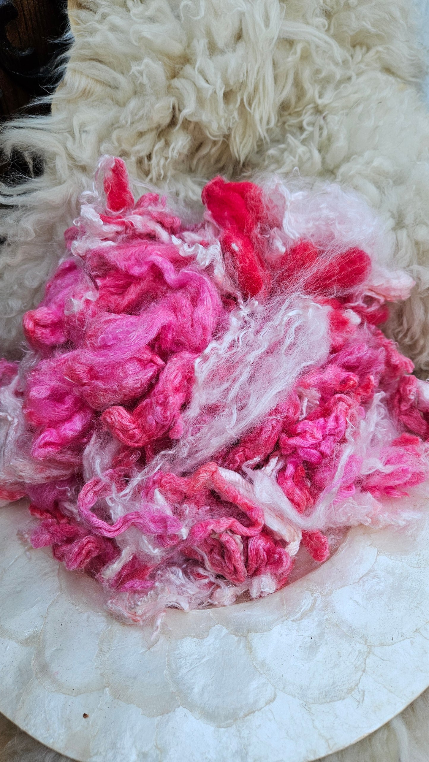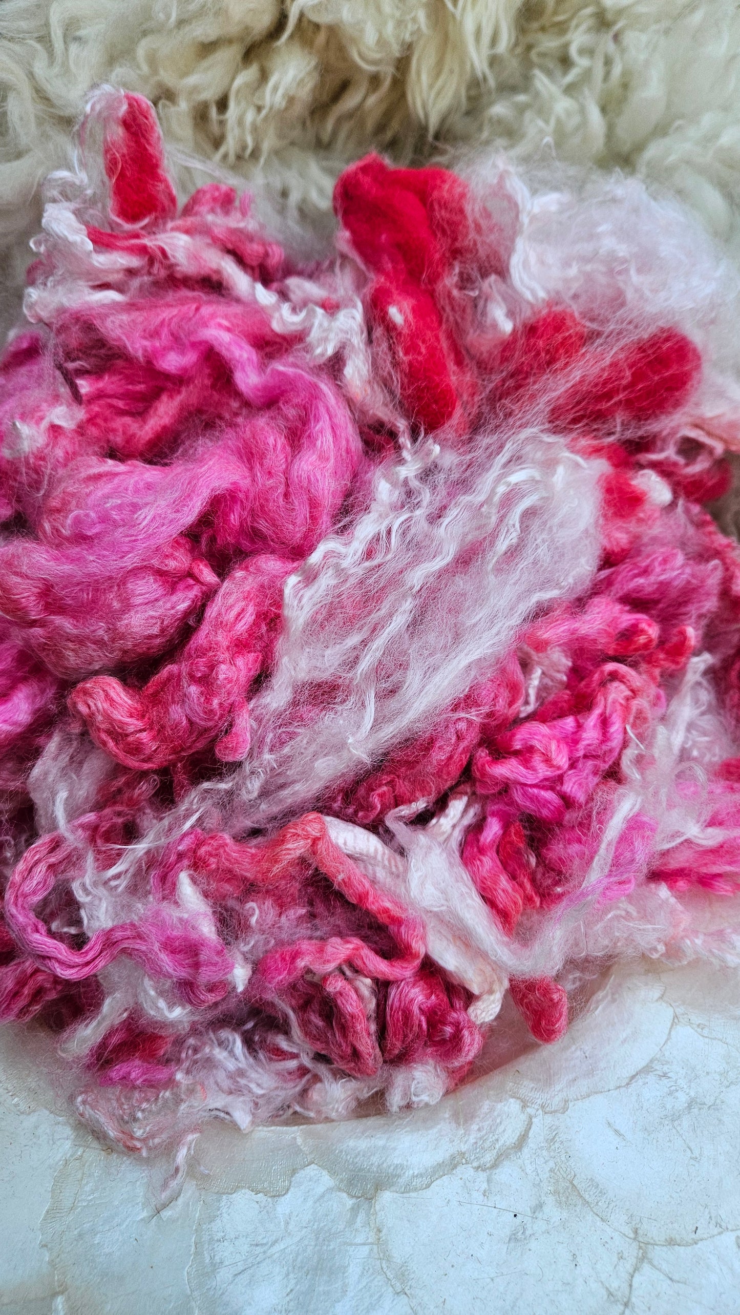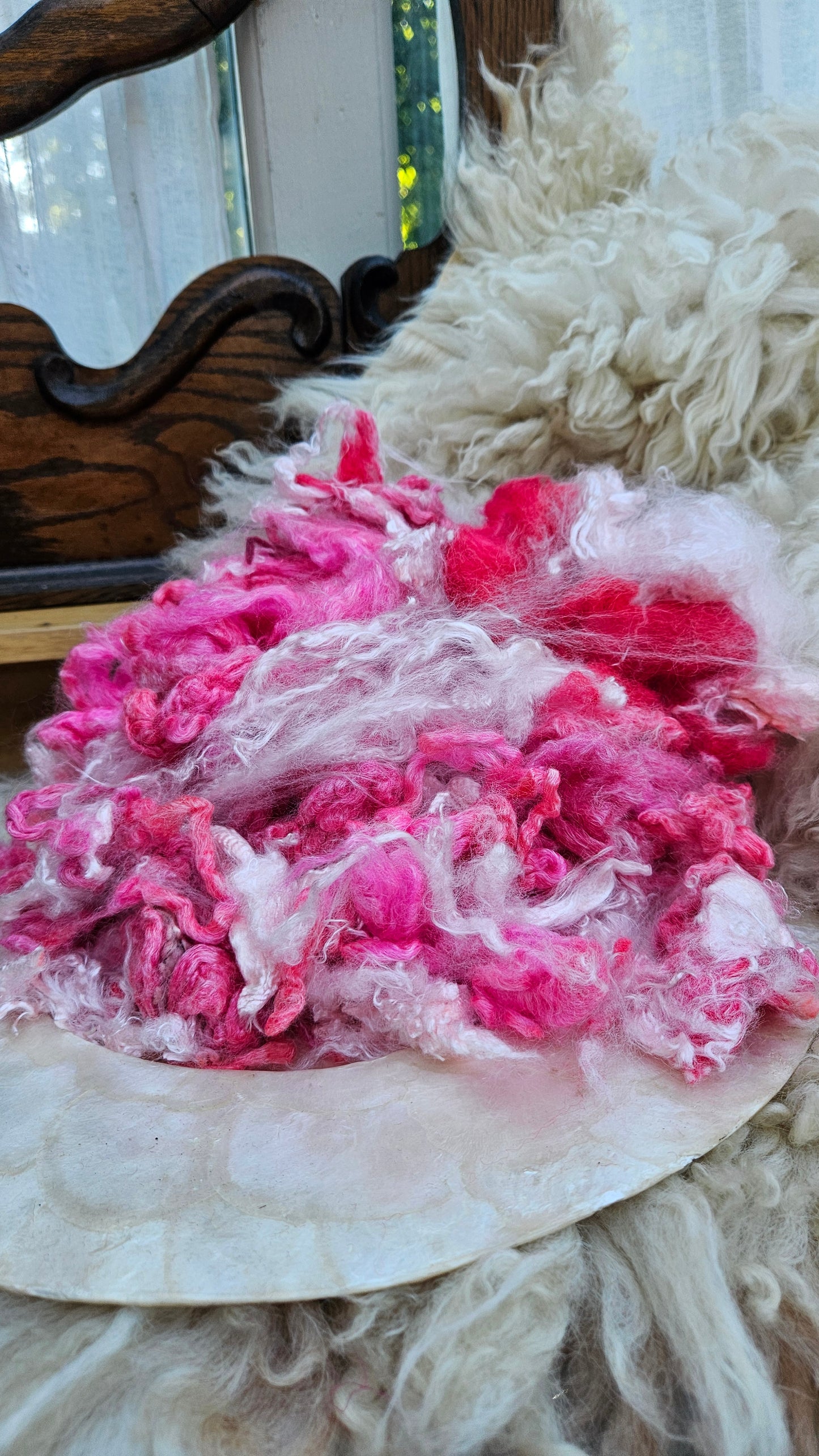 These dense mallowy chunks can be hand-picked very easily to create a fluffy cloud. Running it thru a wool picker would create divine fluffy cloud. This zero-waste fiber is a perfect foundation for art batts, felting, and fiber art.