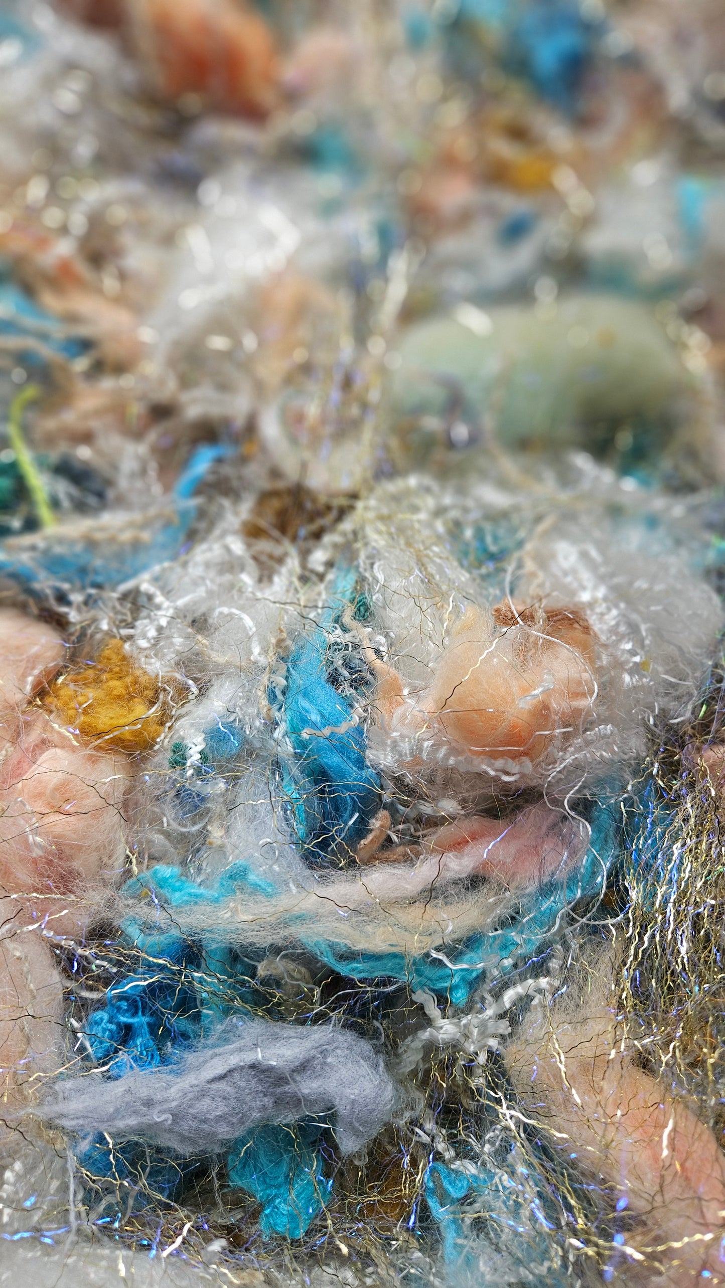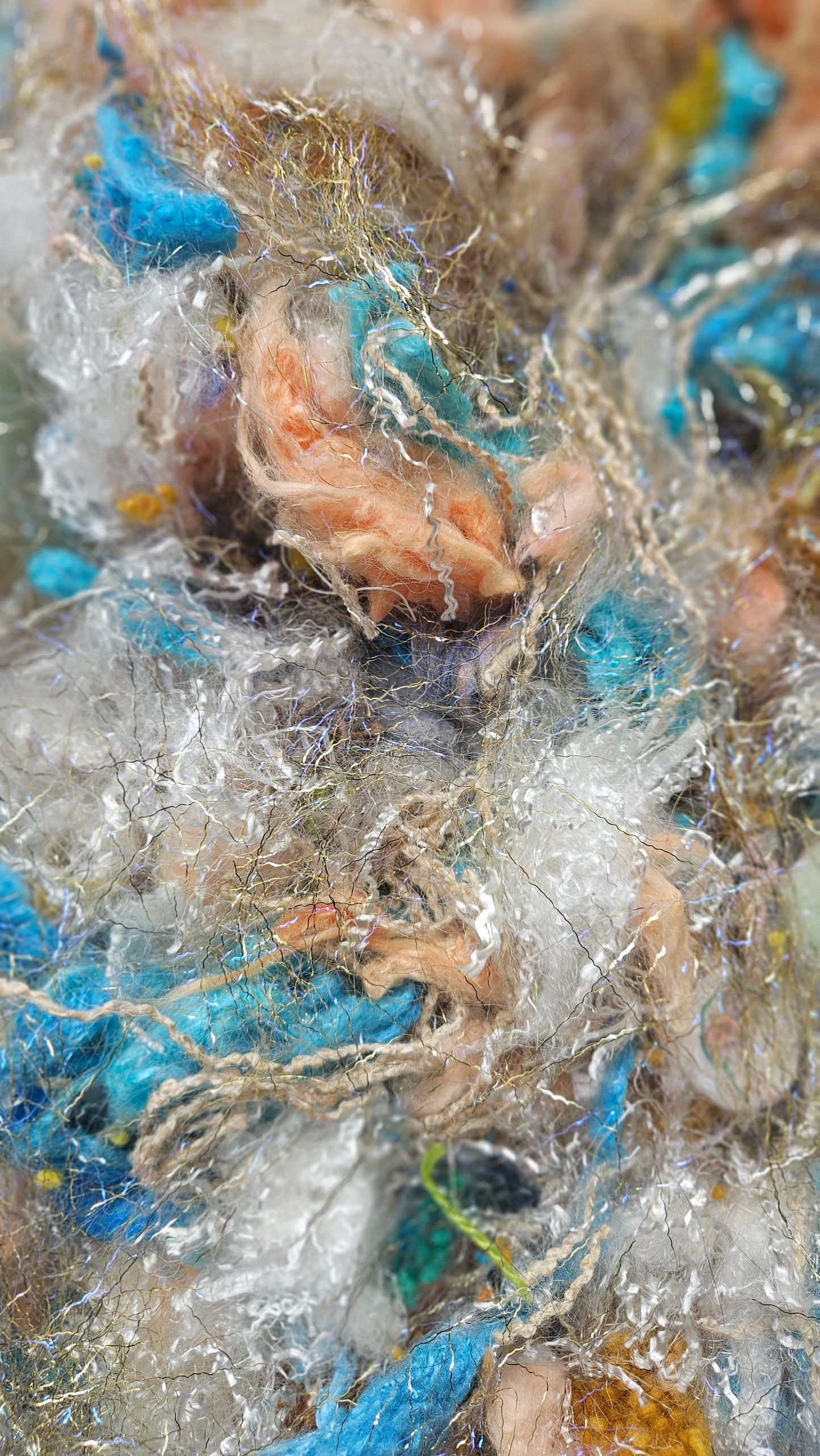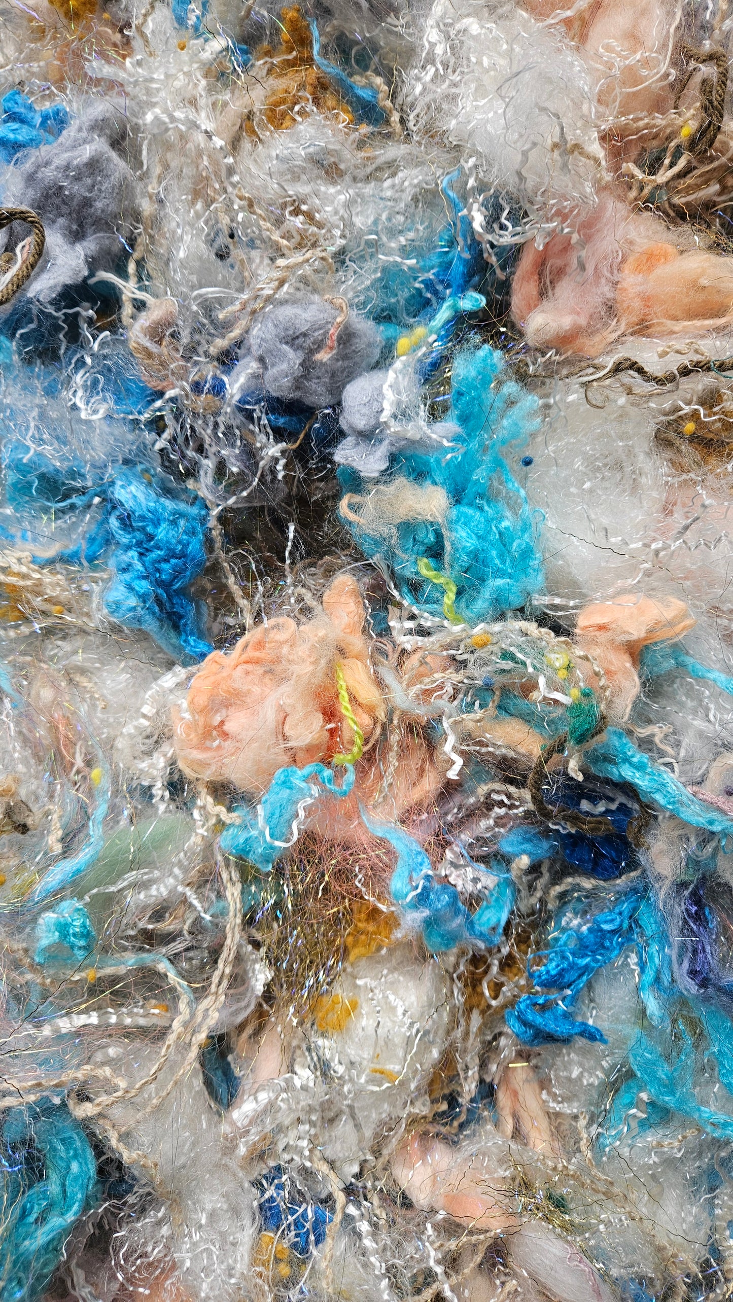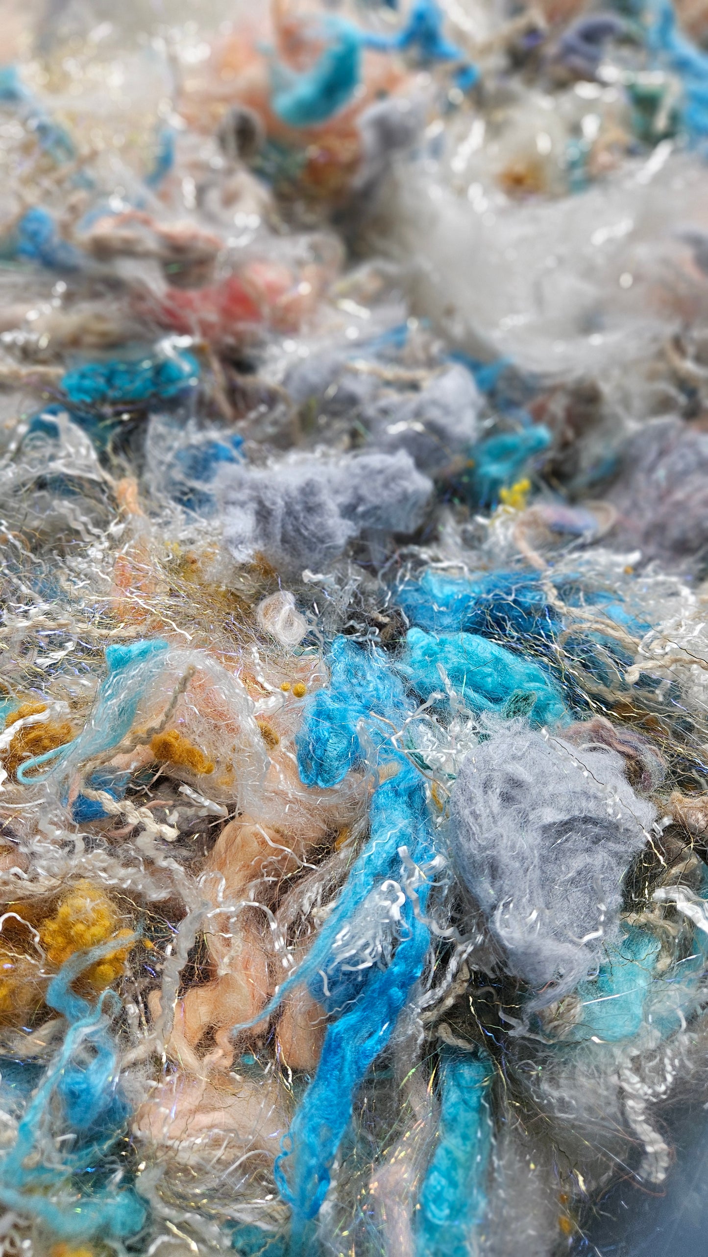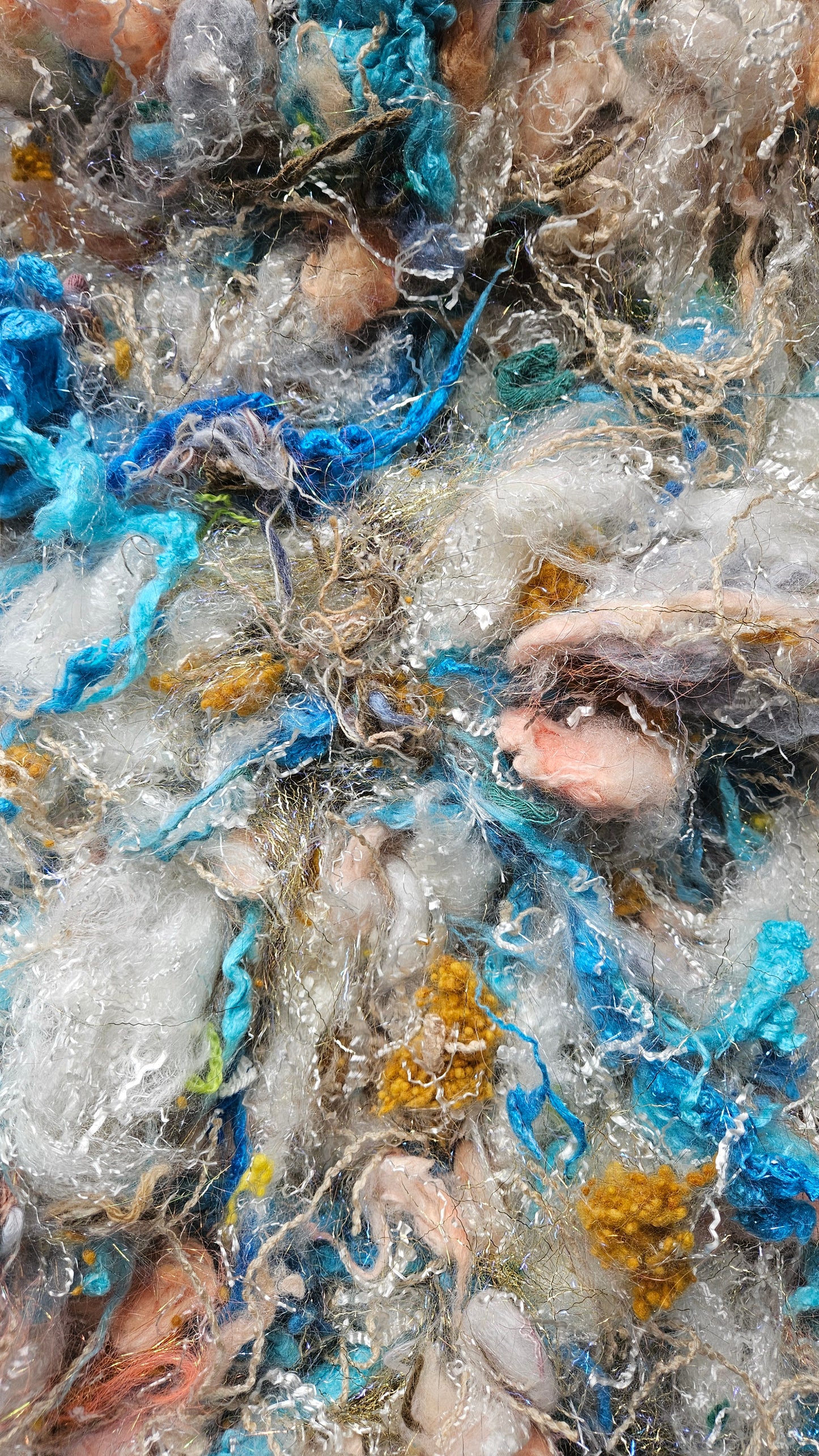 A kit of fine art inspired eucalyptus crimp texture and wool nepps for creating art batts, rolags, and blends to spin into yarn for knitting, weaving, crochet, felting, and fiber art. A little can go a long way! Each bag is subtly different due to the size of the texture and nuance in the dyed bits.