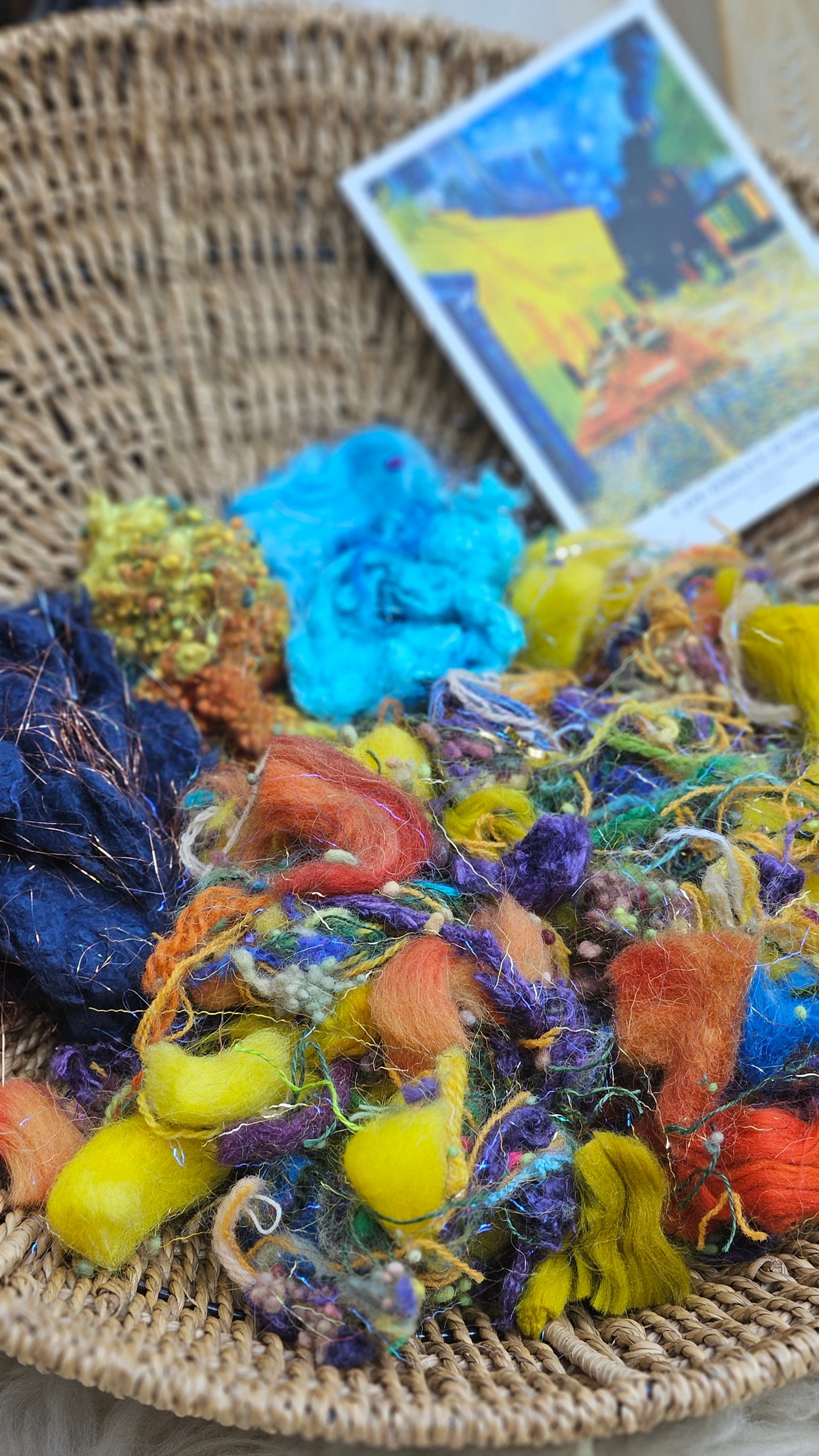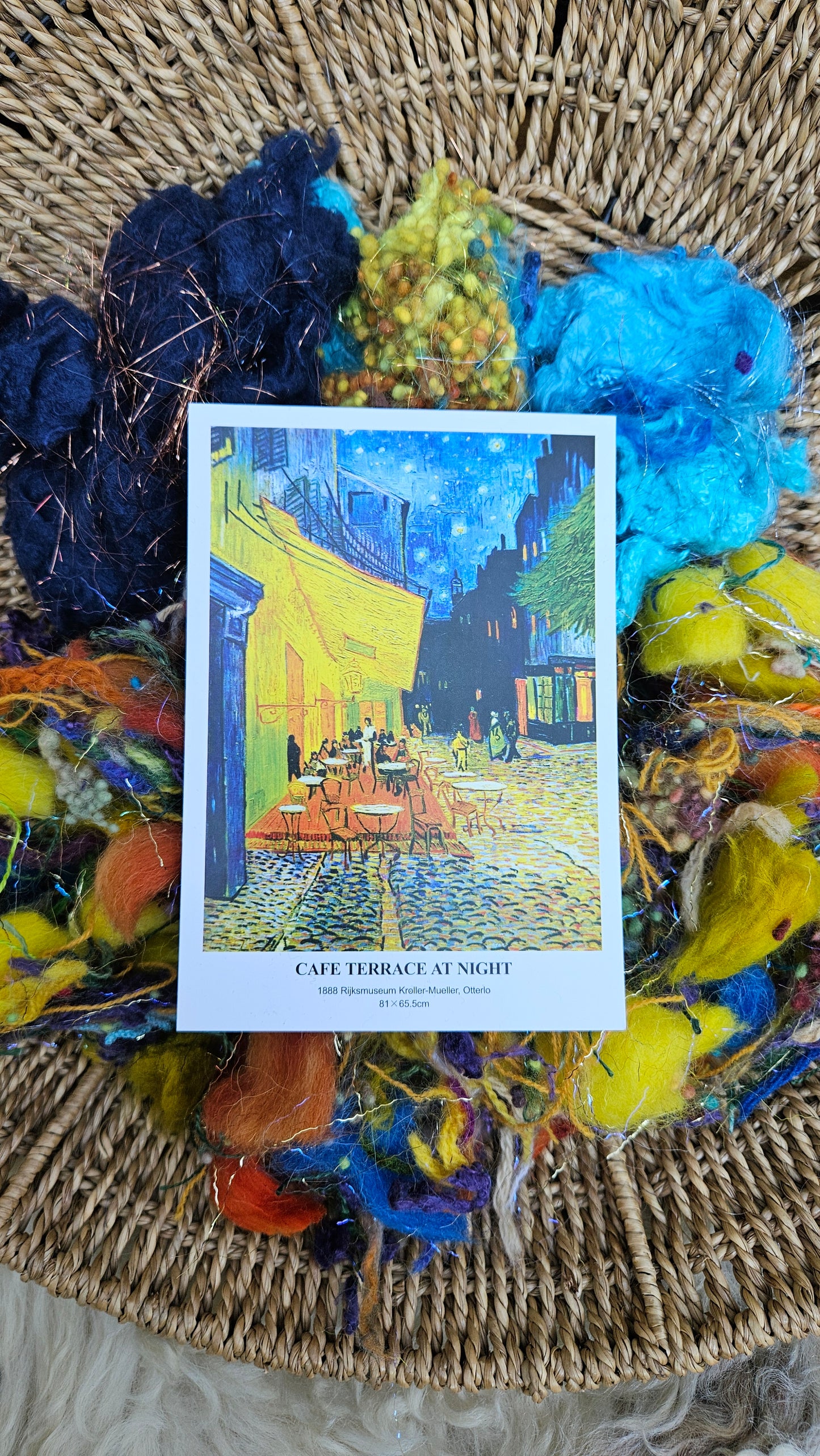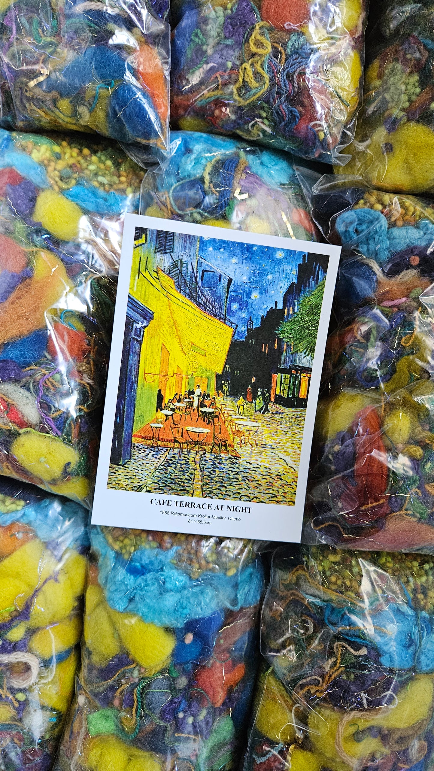 CAFE TERRACE AT NIGHT - hand-dyed limited edition Van Gogh inspired fiber art texture for blending, felting, and papermaking - 2.5 oz | 71 g