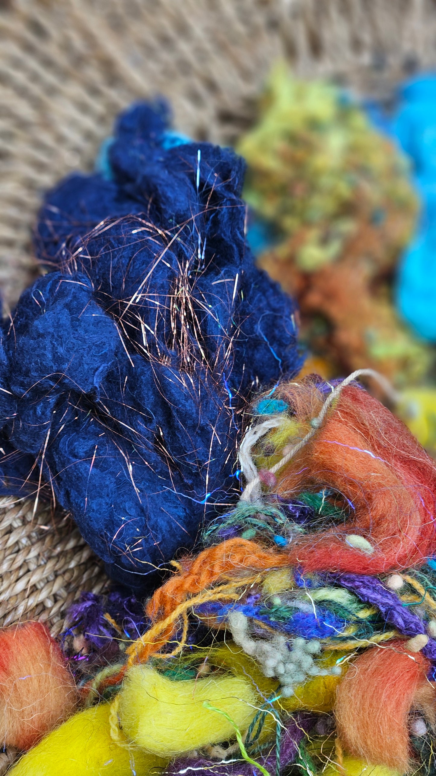 Designed for versatility, this handcrafted blend can be carded into art batts or rolags, spun into unique yarns for knitting, weaving, or crochet, or incorporated directly into wet or needle felting projects for extra depth and texture. One pinch goes a long way, making it a joy to experiment with in both small and large creations.