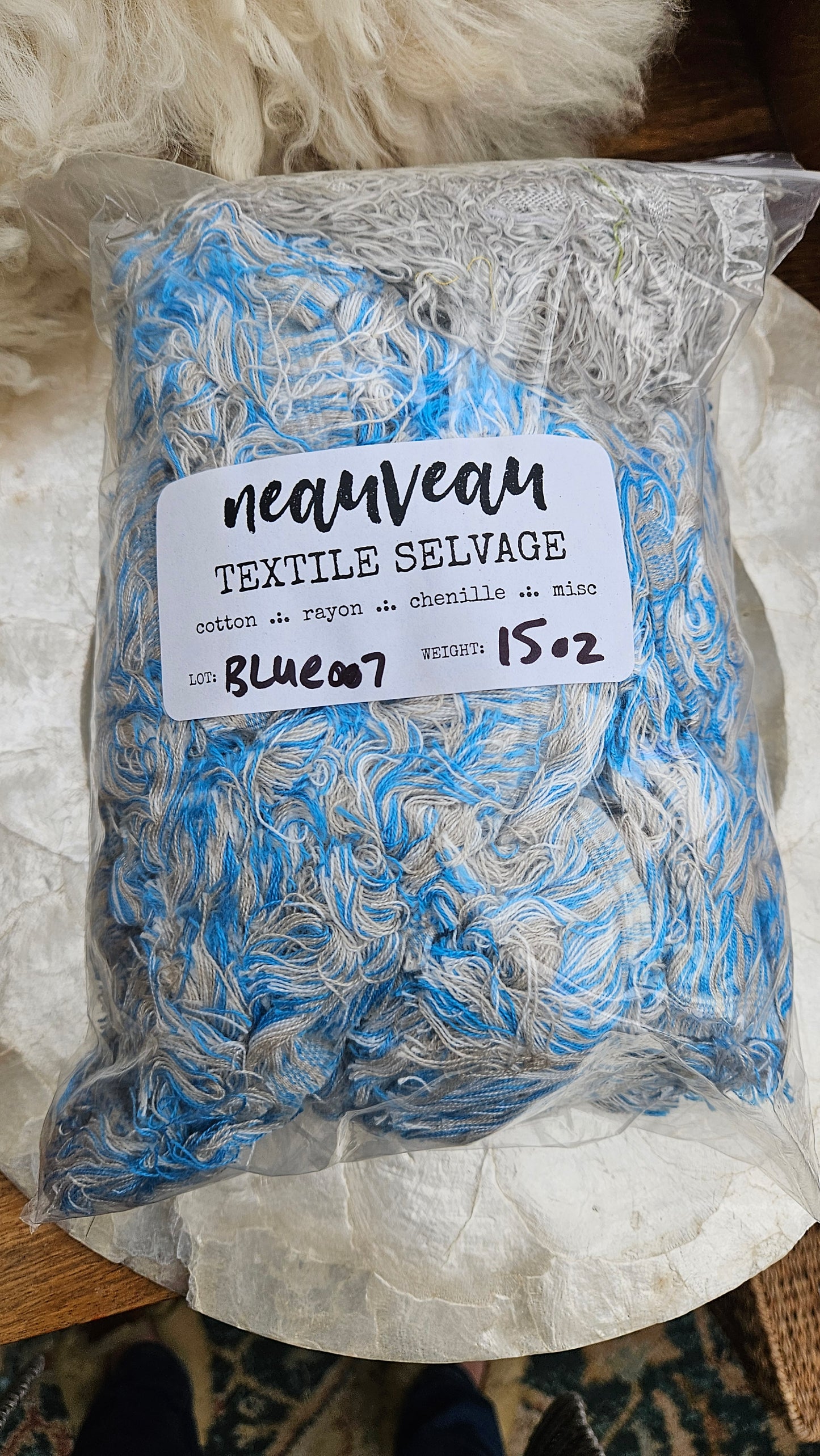 BLUE SELVAGE - rare American-made soft and thick textile selvedge for rug and art weaving and art yarn 15 oz | 007