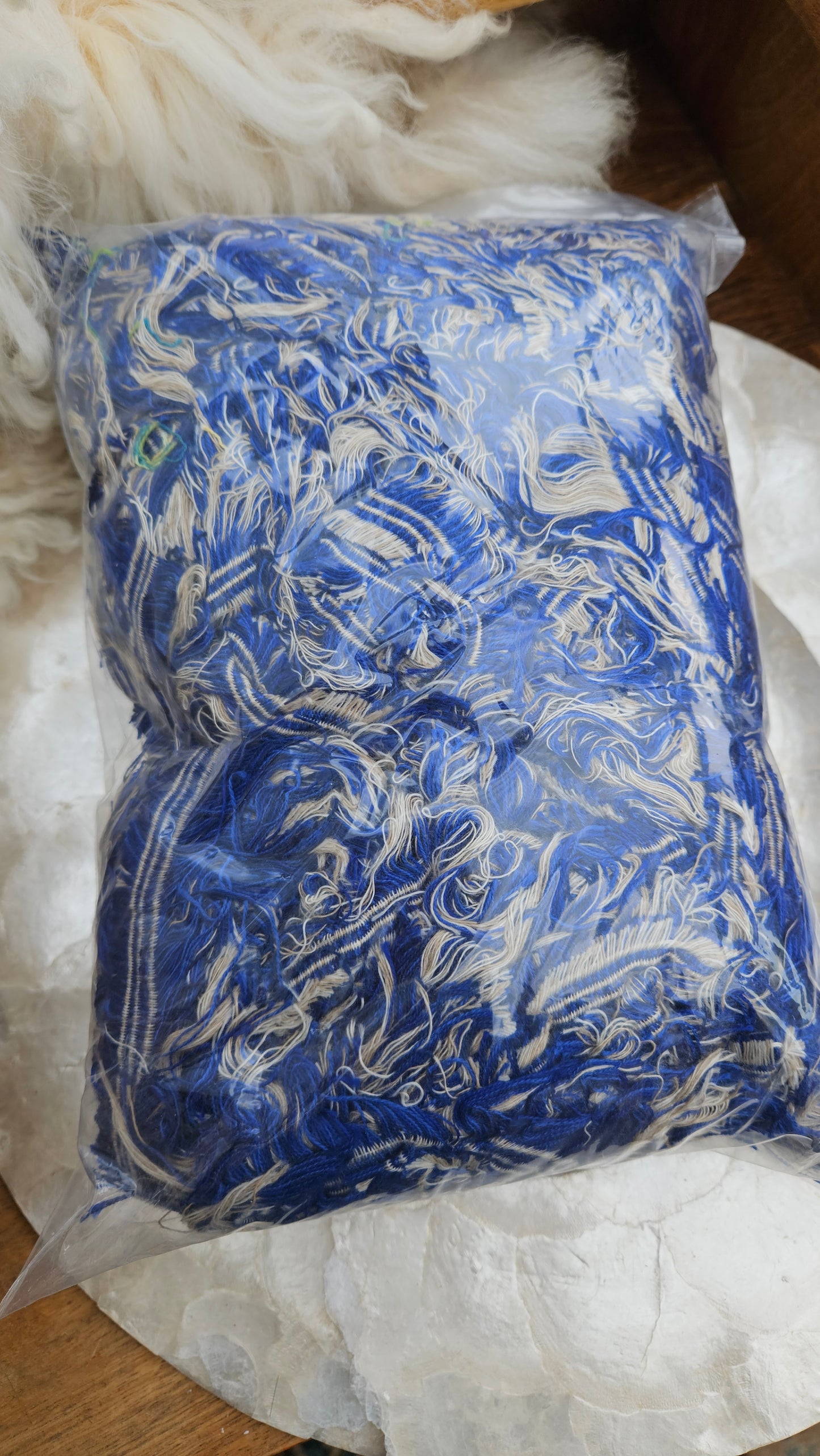 Rare (not wool) American Upholstery Selvage for shaggy fringe plying and weaving. Feels like rayon/cotton/blend and could likely be overdyed with RIT with unique results.