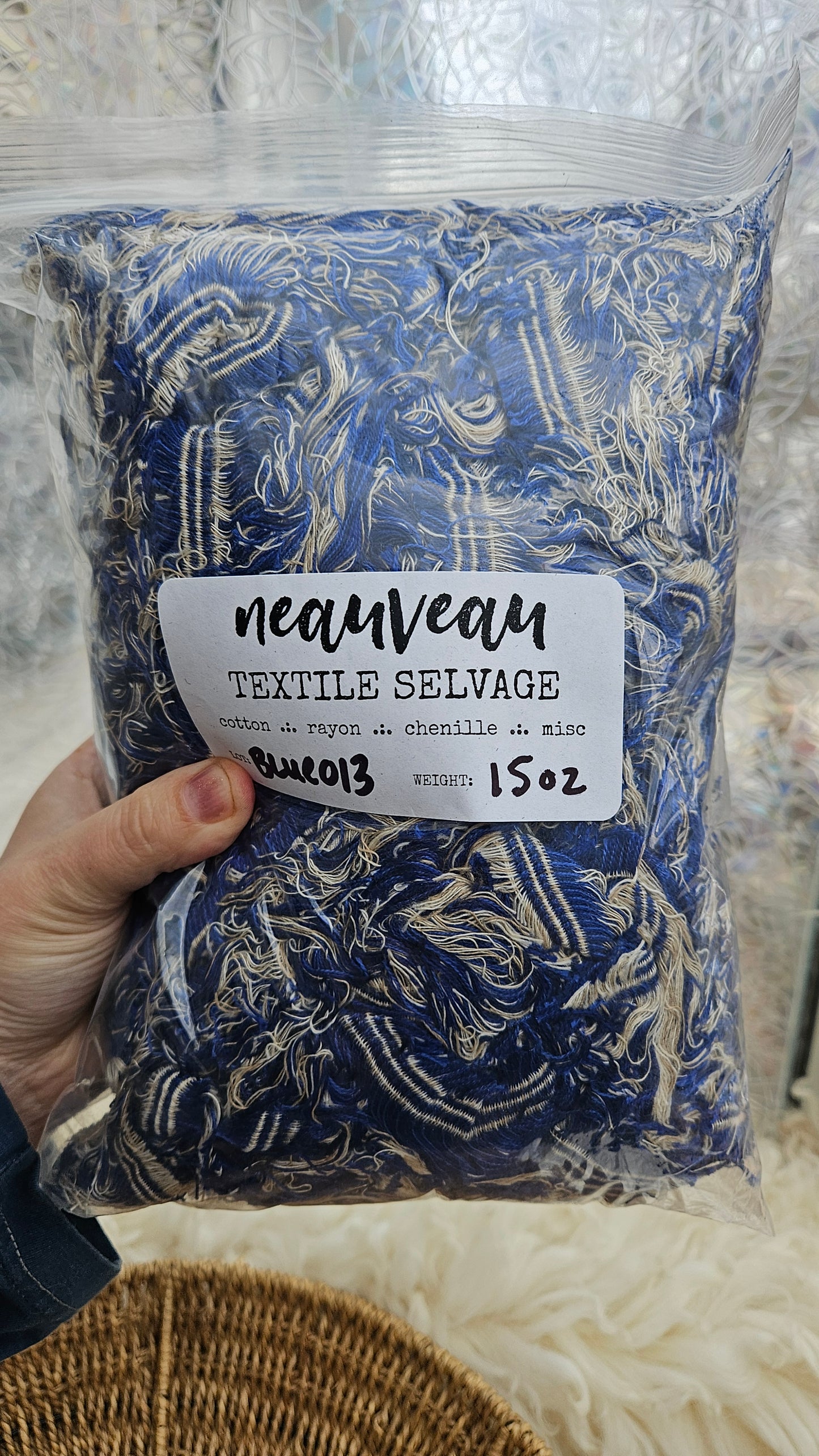 BLUE SELVAGE - rare American-made soft and thick textile selvedge for rug and art weaving and art yarn 15 oz | 013