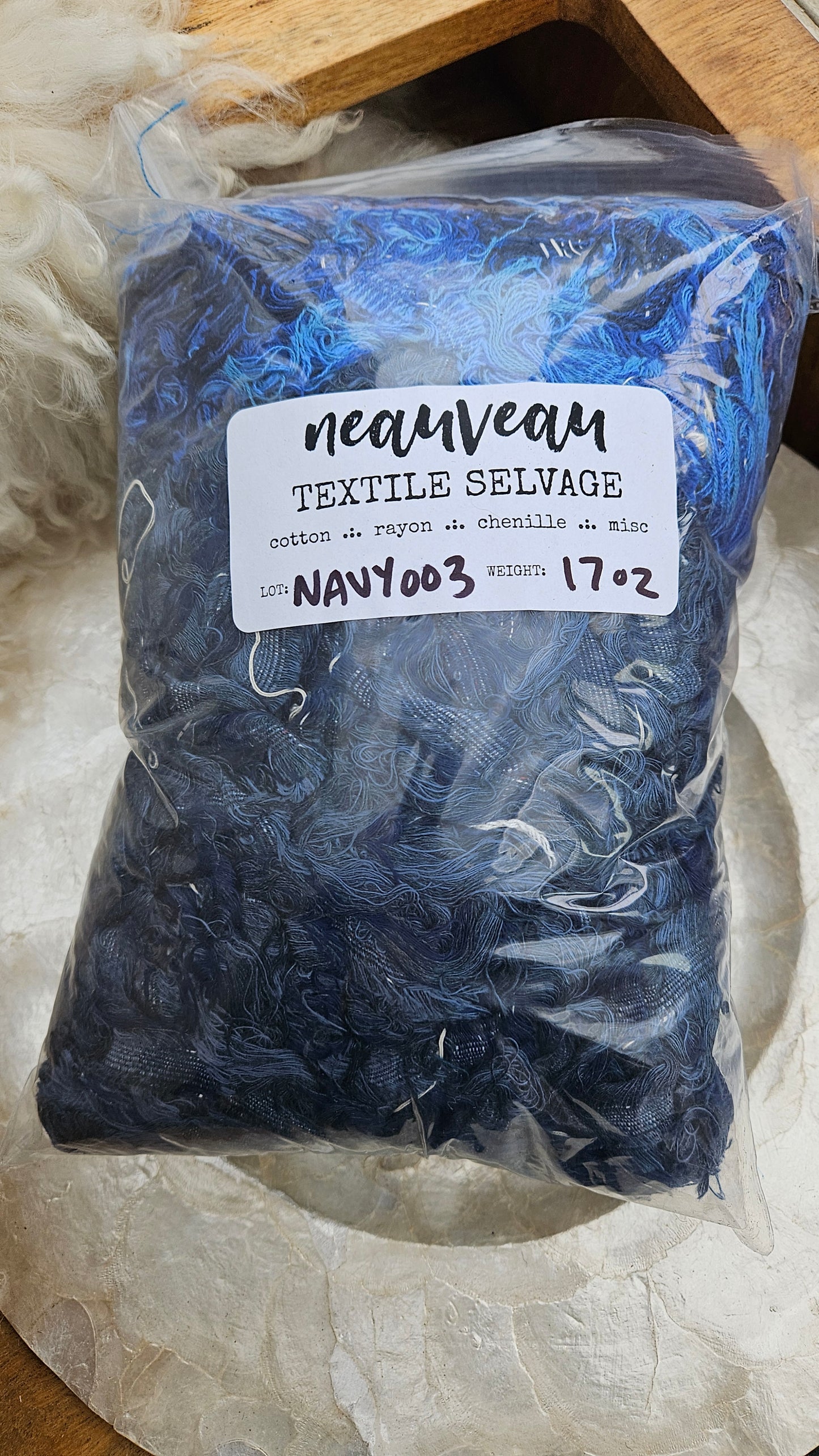NAVY SELVAGE - rare American-made soft and thick textile selvedge for rug and art weaving and art yarn 17 oz | 003